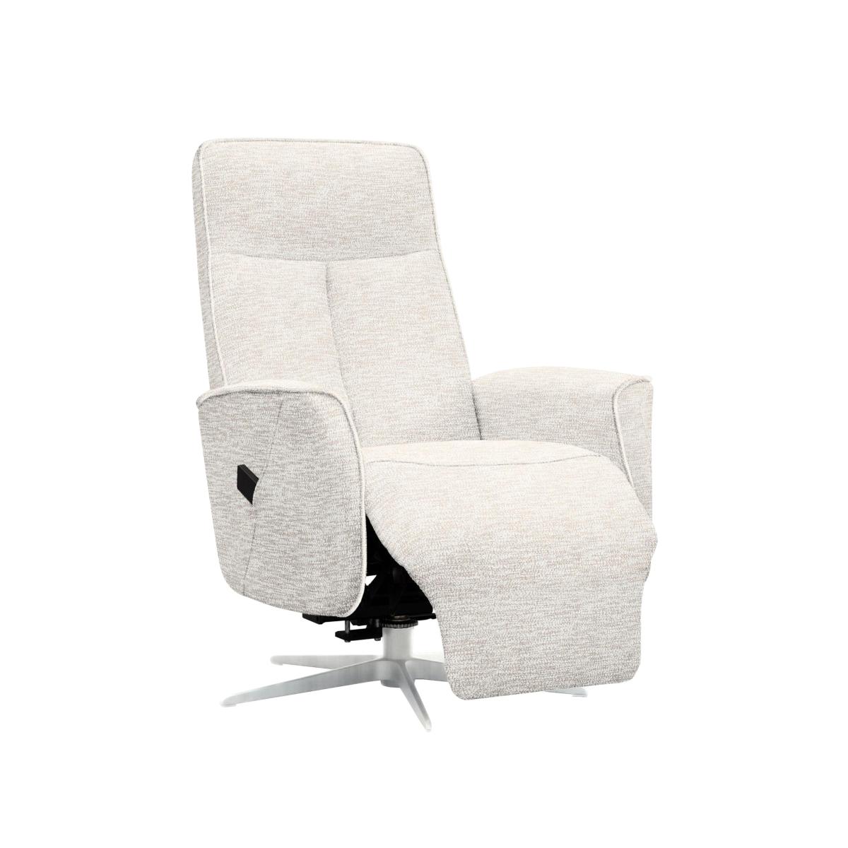 Here’s the lift and rise chair that looks nothing like a lift and rise chair. Showcasing G Plan’s iconic mid-century style and all-modern comfort, this power recliner chair with chrome-finished base suits any living space. Why you'll love it Lift and rise chair functionality meets iconic G Plan style and comfort. This power chair reclines, lifts and rises, promoting independence and mobility. Seriously comfortable power recline plus independent power headrest. Handset controlled. There’s a discrete pocket on the outside arm for the handset. Extended cushioning on the seat gives extra comfort and support when you’re reclining. Chrome-finished metal base. Choose from the entire G Plan fabric swatch book for the upholstery. Also available with 100% leather upholstery. No handy plug socket in your living room? Go for the battery-powered model instead. Find the G Plan Maribo fabric lift and rise power recline chair at Furniture Village. What you need to know Medium comfort level. Seat suspension: springs. Seat cushioning: moulded foam. Seat cushion is fixed. Back suspension: cold-cured foam. Back cushioning: moulded foam. Back cushion is fixed. Arm cushioning: fibre. Please allow time for new recliners to ease. Some fabrics can show wear on areas of more use or in direct sunlight. Clean regularly using a soft brush or vacuum with the curtain attachment. Deal with any spills promptly. Professional cleaning advised for oil- and grease-based stains. Please read our upholstery care guide for more advice. Item code: MARBLRBCC-008