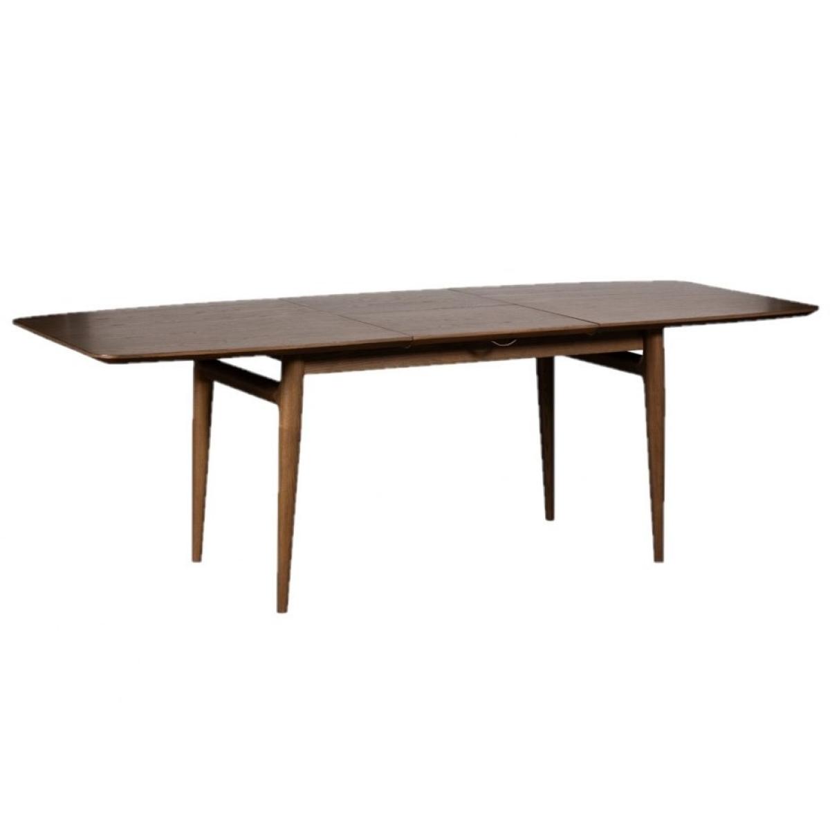 The G Plan Marlow dining table is sleek, simple, and stylish, extending from 160cm to 215cm to provide extra space for dinner guests. Its neat legs and straightforward horizontal support bar highlight the classic G Plan mid-century design. Inspired by vintage furniture designs of days gone by, the Marlow Dining range is classic and stylish; enjoy dinner at the nostalgic Dining Table, display ornaments on the wistful Display Cabinet or place soothing warm drinks on the elegant Coffee Table. However you choose to style this exquisite furniture range, it?s bound to fill your home with chic joy. Take a step back in time with this retro-inspired furniture collection. Features Made with solid walnut Stylish retro design Extending to fit up to 6 people comfortably Soft curves with a rectangular shape Easy to use butterfly extension mechanism Dimensions Height 77cm Width 160 - 215cm Depth 95cm All screens vary in colour reproduction and whilst every effort has been made to display the colour as accurately as possible it is for guidance only