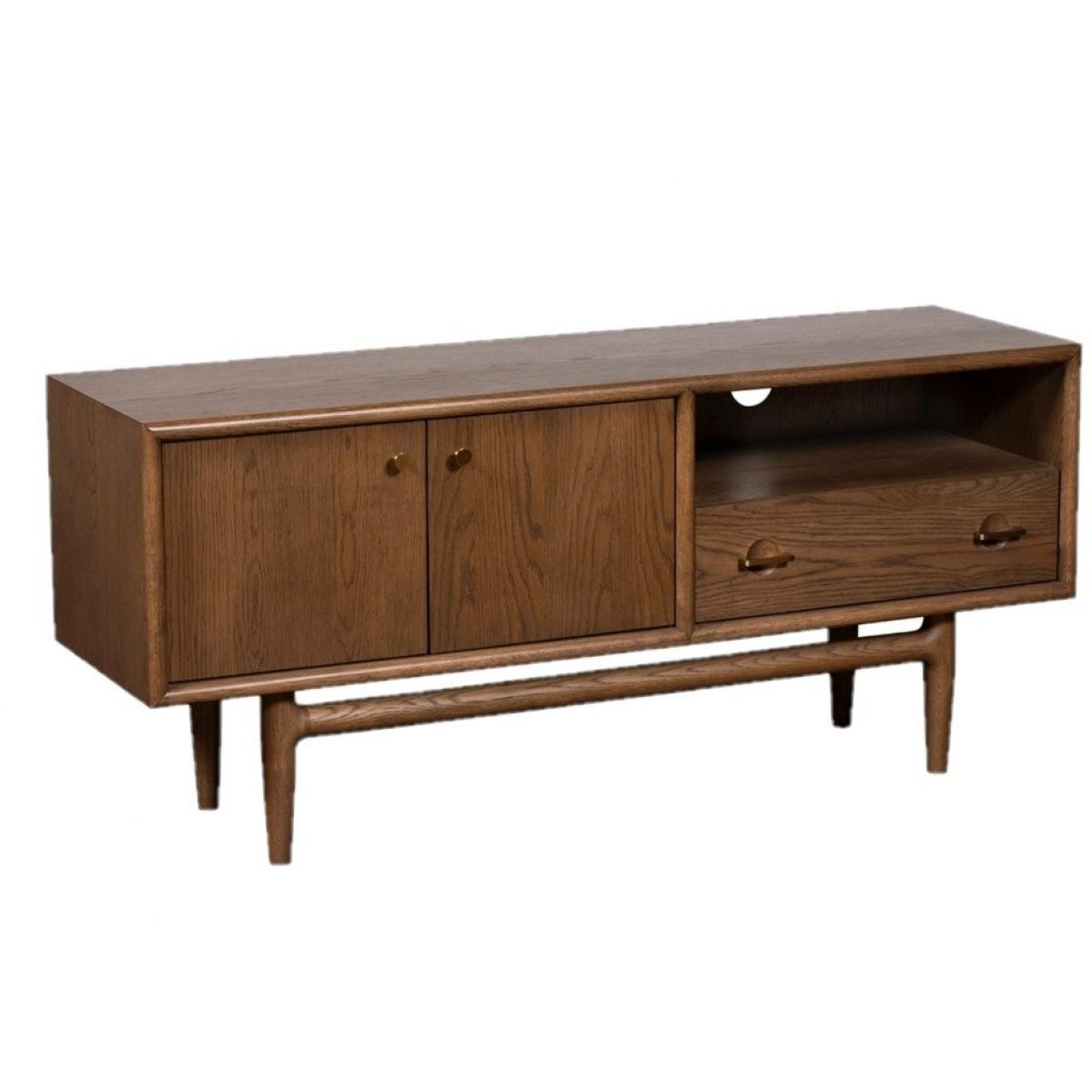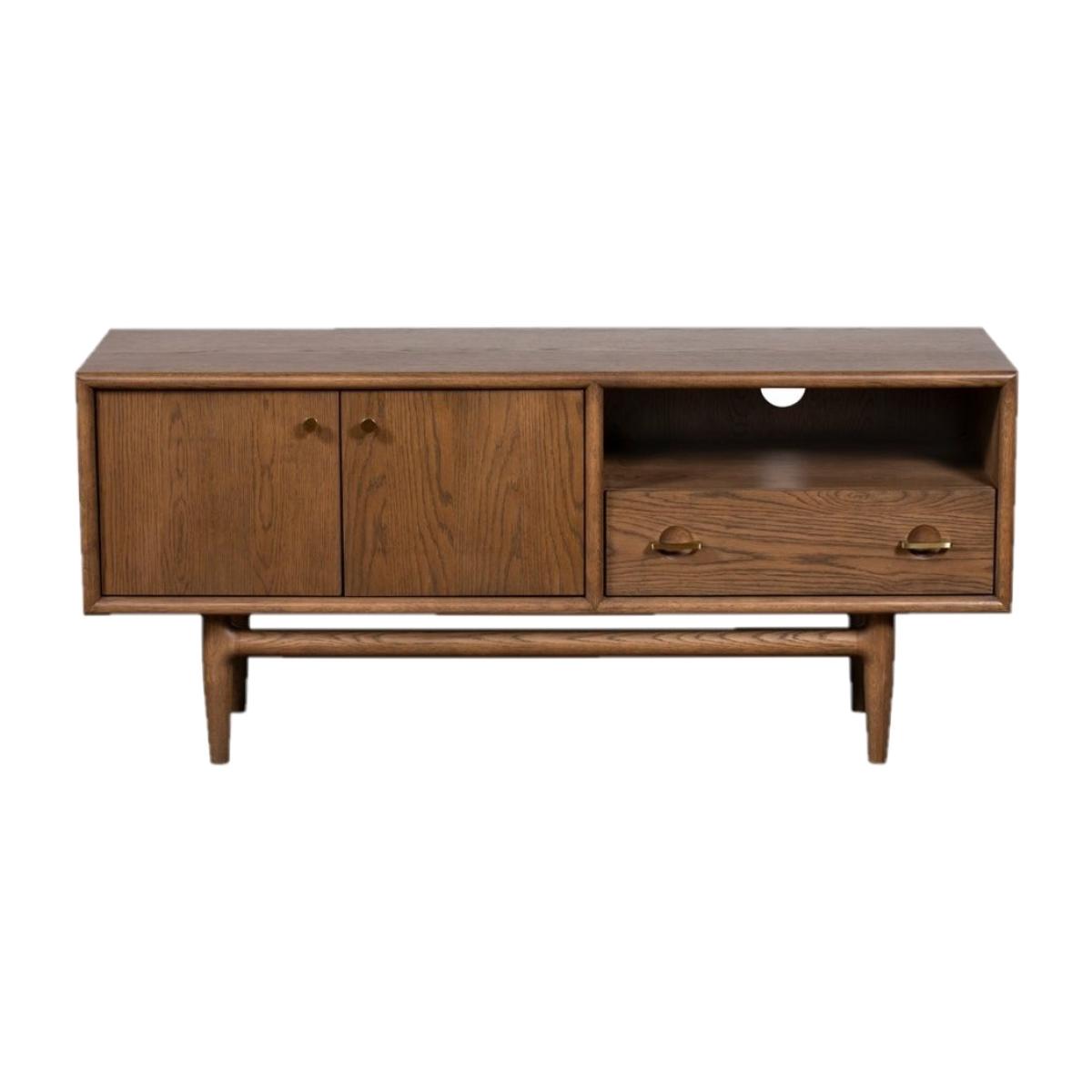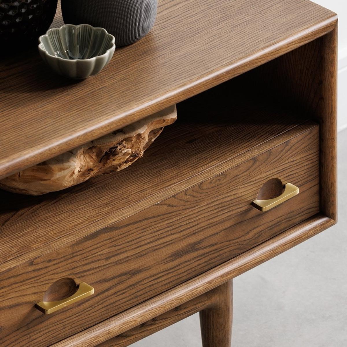 Featuring a drawer for storing odds and ends, a double-door cupboard with two shelves, and a convenient cable hole to hide plugs, the G Plan Marlow TV unit is the perfect solution for organizing your TV and set-top boxes. Inspired by vintage furniture designs of days gone by, the Marlow Dining range is classic and stylish; enjoy dinner at the nostalgic Dining Table, display ornaments on the wistful Display Cabinet or place soothing warm drinks on the elegant Coffee Table. However you choose to style this exquisite furniture range, it's bound to fill your home with chic joy. Take a step back in time with this retro-inspired furniture collection. Features Made with solid walnut Features a drawer and two cupboards for storage Internal shelfing Vintage style piece of furniture Brass hardware and handles Dimensions Height 60cm Width 135cm Depth 40cm All screens vary in colour reproduction and whilst every effort has been made to display the colour as accurately as possible it is for guidance only