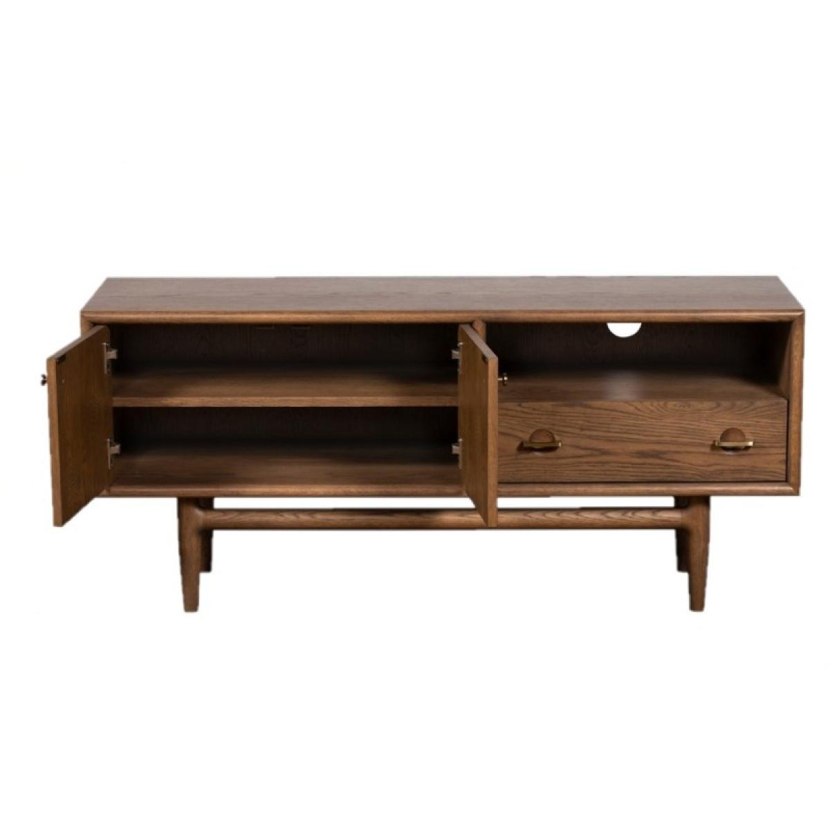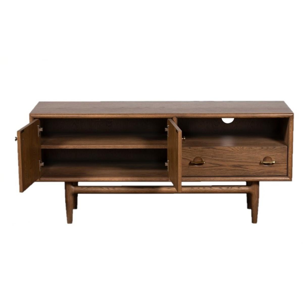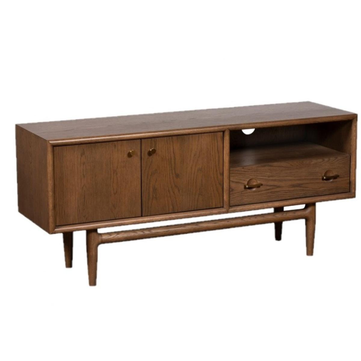 Featuring a drawer for storing odds and ends, a double-door cupboard with two shelves, and a convenient cable hole to hide plugs, the G Plan Marlow TV unit is the perfect solution for organizing your TV and set-top boxes. Inspired by vintage furniture designs of days gone by, the Marlow Dining range is classic and stylish; enjoy dinner at the nostalgic Dining Table, display ornaments on the wistful Display Cabinet or place soothing warm drinks on the elegant Coffee Table. However you choose to style this exquisite furniture range, it's bound to fill your home with chic joy. Take a step back in time with this retro-inspired furniture collection. Features Made with solid walnut Features a drawer and two cupboards for storage Internal shelfing Vintage style piece of furniture Brass hardware and handles Dimensions Height 60cm Width 135cm Depth 40cm All screens vary in colour reproduction and whilst every effort has been made to display the colour as accurately as possible it is for guidance only