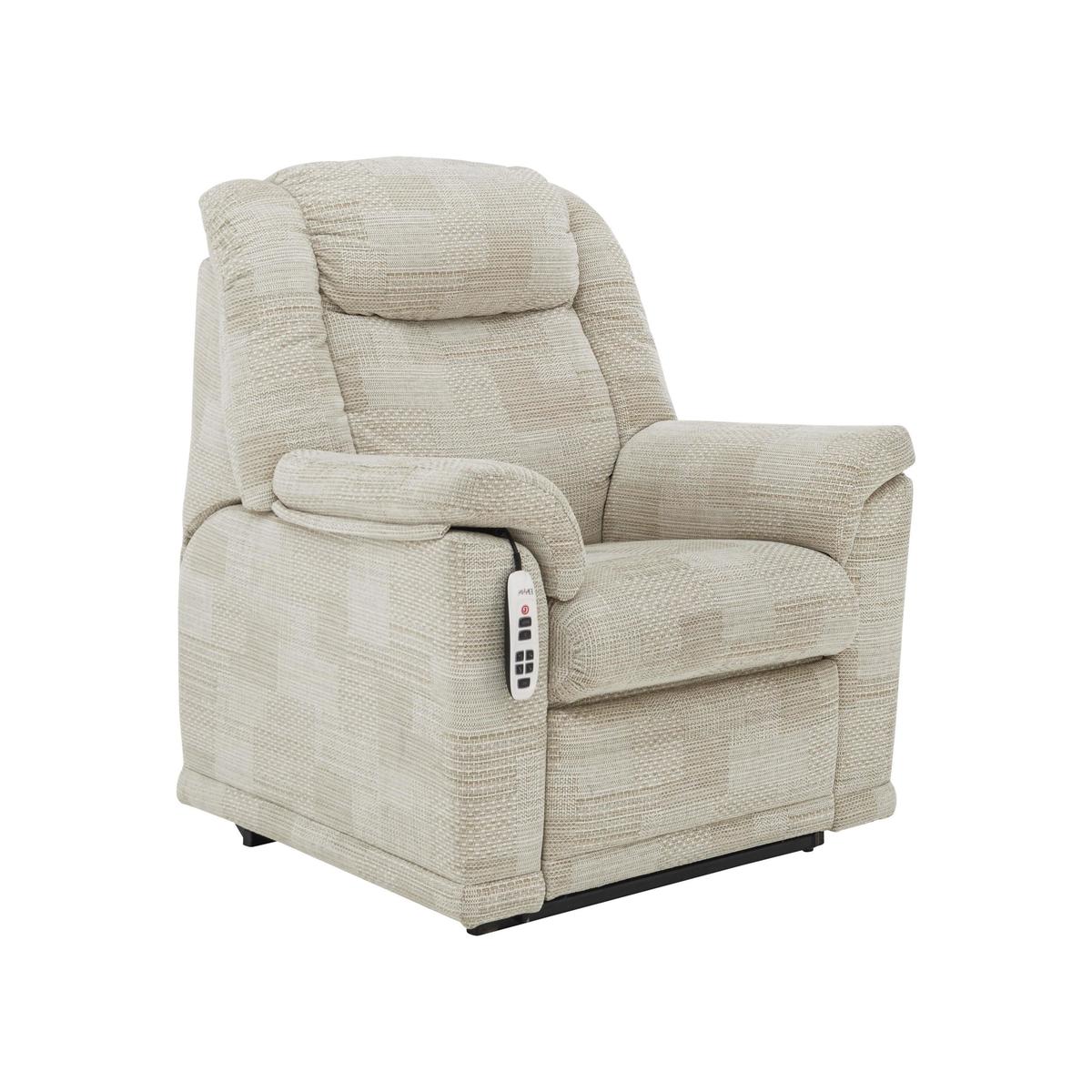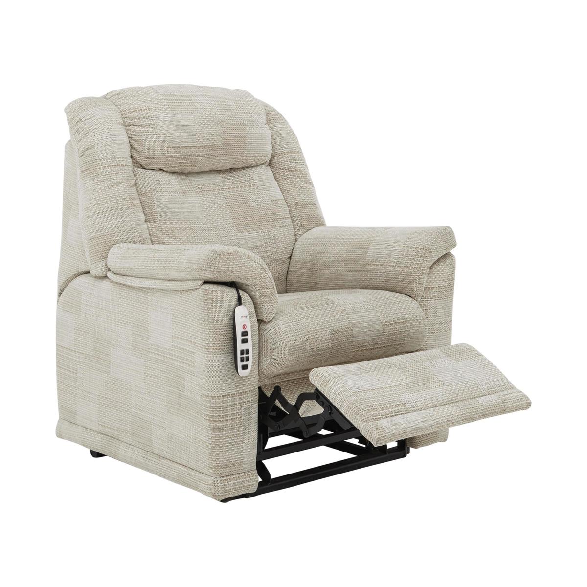 The sofas and chairs in the G Plan Milton Leather and Fabric collection offer the ultimate in comfort with high backs and supportive headrests. Their luxurious, generous cushioning extends into the arm and corner rests, welcoming you with a soft embrace. G Plan Milton’s softly curved, beautifully upholstered style suits classic and modern homes equally well. For the ultimate in comfort, choose manual or power recliners. Remote control lift and rise chair helps you to your feet with ease. Serpentine sprung seat with foam seat cushion. Luxury fibre back cushion, in built headrest. Now you can relax in G Plan luxury, then be taken to your feet at the touch of a button with the G Plan Milton fabric lift and rise armchair. This cleverly designed chair is operated by a remote control handily stored in a convenient side pocket. It has G Plan’s famous curves, a supportive foam seat cushion on serpentine springs, high back with inbuilt headrest and sumptuous arm cushions. The upholstery is soft to the touch fabric in a G Plan’s choice of colours. The G Plan Milton fabric lift and rise armchair is made in the UK with a 10 year spring and frame guarantee. Part of the G Plan Milton collection. Top tip. Some fabrics can show wear on areas of more use or in direct sunlight. To keep your fabric upholstery looking fresh, plump, turn and rotate seat and back cushions regularly if possible. Please read our upholstery care guide for more advice on caring for your fabric sofa or chair.