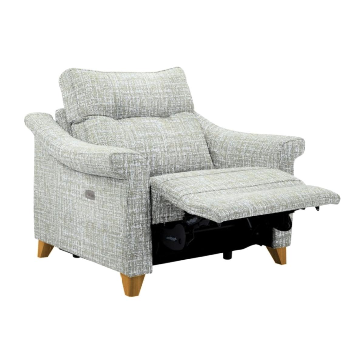 The Riley embodies sophistication with full, sumptuous seats, which provides unquestionable comfort. Stylish flared arm and back detailing provide contemporary design. Choose from a range of beautiful fabrics and leathers to suit your style. Show wood legs available in a choice of four finishes, Walnut, Mahogany, Oak, and Ebony. Manual or power recliner options are available for the ultimate relaxation and all power recliner options come with touch buttons and a USB charging port as standard. Measurements: Height: 104cm Width: 118cm Depth: 97cm All measurements are approximate and relate to the overall size of the item including soft arm cushions where fitted and back cushions. All furniture supplied on show wood legs as standard. Recliners are available in manual or power versions. The power versions have touch buttons and a USB charging port. Contrast stitch available on selected leathers. Large and small double recliner sofas are delivered in two sections that link together. Seat cushions and back cushions are non-reversible. Our recliner furniture requires room to recline. Scatter cushions are available at extra cost. All screens vary in colour reproduction and whilst every effort has been made to display the colour as accurately as possible it is for guidance only