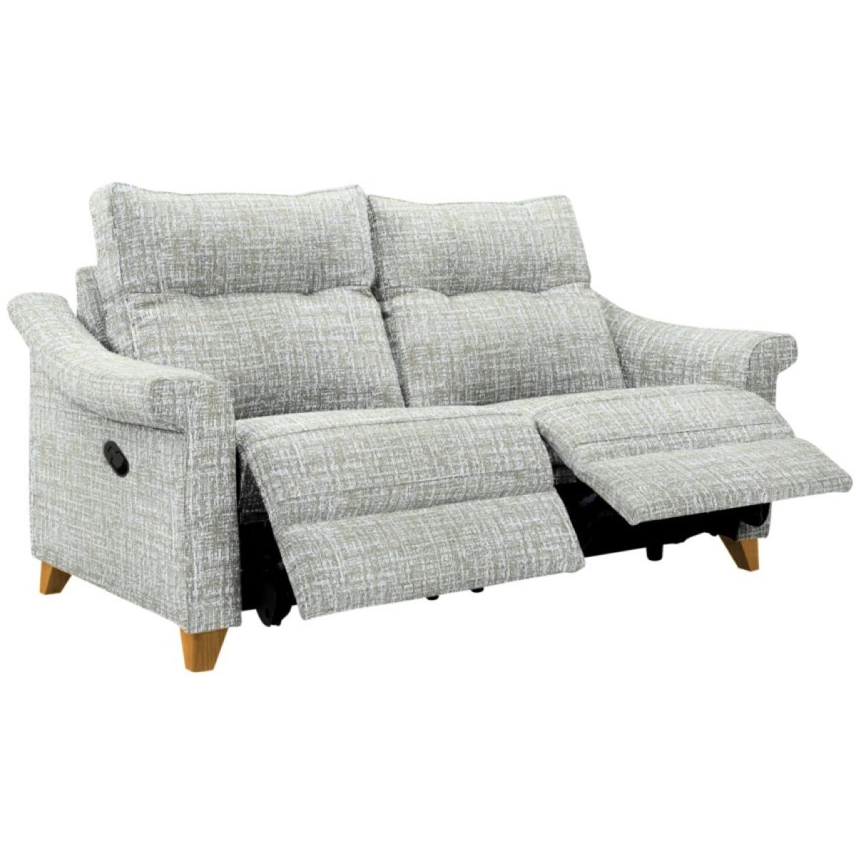 The Riley embodies sophistication with full, sumptuous seats, which provides unquestionable comfort. Stylish flared arm and back detailing provide contemporary design. Choose from a range of beautiful fabrics and leathers to suit your style. Show wood legs available in a choice of four finishes, Walnut, Mahogany, Oak, and Ebony. Manual or power recliner options are available for the ultimate relaxation and all power recliner options come with touch buttons and a USB charging port as standard.  Small Sofa Dimensions Height:104cm Width:159cm Depth:97cm Seat Height: 53cm Seat Depth: 55cm Seat Width: 115cm Clearance needed for full recline: 70cm Recliner sofas are supplied in sections for ease of delivery. Handcrafted in the UK with a 25-year timber frame and frame construction guarantee. All measurements are approximate and relate to the overall size of the item including soft arm cushions where fitted and back cushions. All furniture supplied on show wood legs as standard. Recliners are available in manual or power versions. The power versions have touch buttons and a USB charging port. Contrast stitch available on selected leathers. Large and small double recliner sofas are delivered in two sections that link together. Seat cushions and back cushions are non-reversible. Our recliner furniture requires room to recline. Scatter cushions are available at extra cost. All screens vary in colour reproduction and whilst every effort has been made to display the colour as accurately as possible it is for guidance only