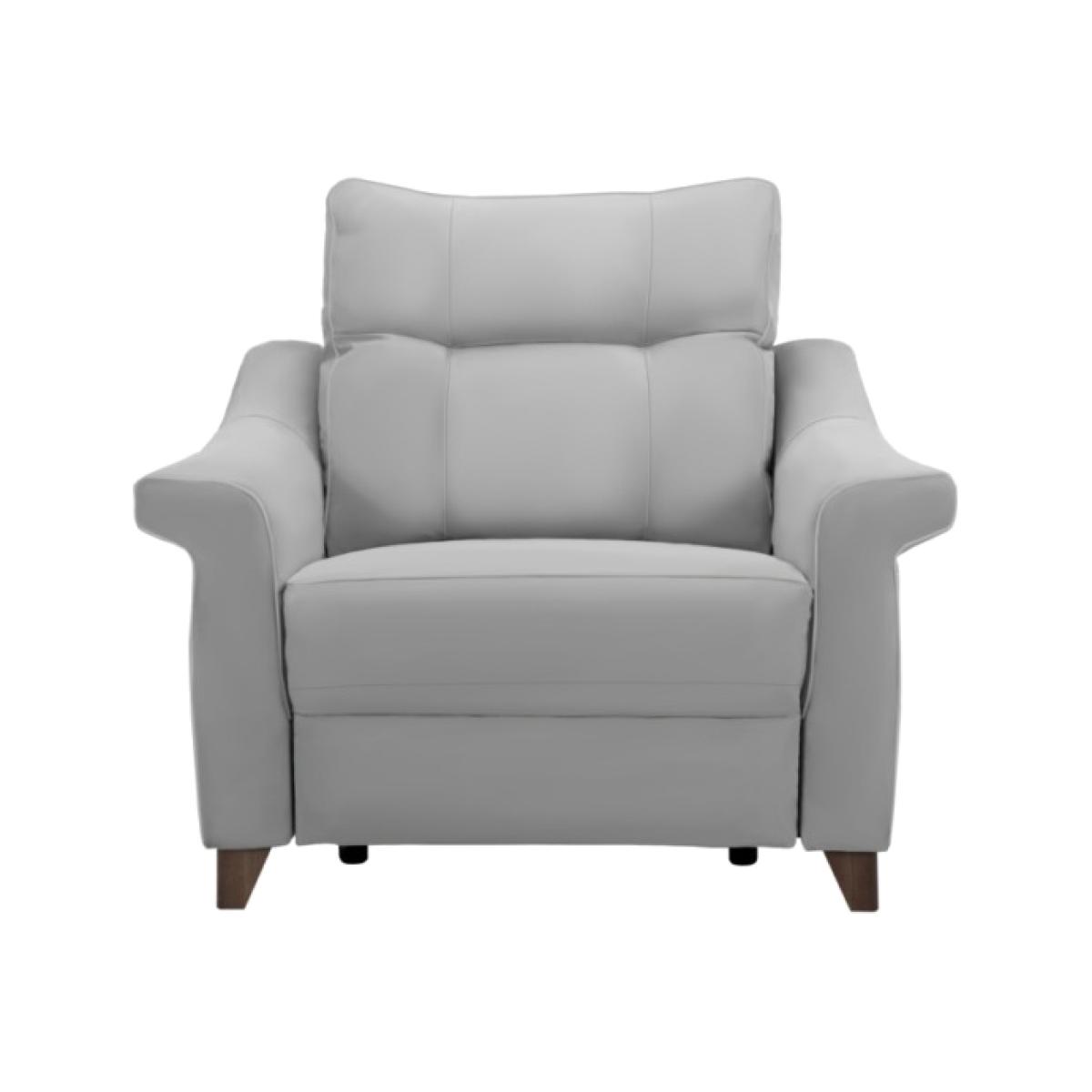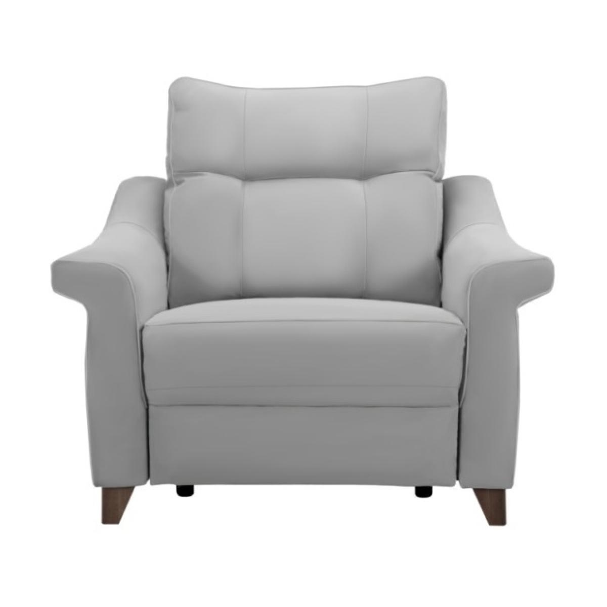 The Riley embodies sophistication with full, sumptuous seats, which provides unquestionable comfort. Stylish flared arm and back detailing provide contemporary design. Choose from a range of beautiful fabrics and leathers to suit your style. Show wood legs available in a choice of four finishes, Walnut, Mahogany, Oak, and Ebony. Manual or power recliner options are available for the ultimate relaxation and all power recliner options come with touch buttons and a USB charging port as standard. Measurements: Height: 104cm Width: 118cm Depth: 97cm All measurements are approximate and relate to the overall size of the item including soft arm cushions where fitted and back cushions. All furniture supplied on show wood legs as standard. Recliners are available in manual or power versions. The power versions have touch buttons and a USB charging port. Contrast stitch available on selected leathers. Large and small double recliner sofas are delivered in two sections that link together. Seat cushions and back cushions are non-reversible. Our recliner furniture requires room to recline. Scatter cushions are available at extra cost. All screens vary in colour reproduction and whilst every effort has been made to display the colour as accurately as possible it is for guidance only