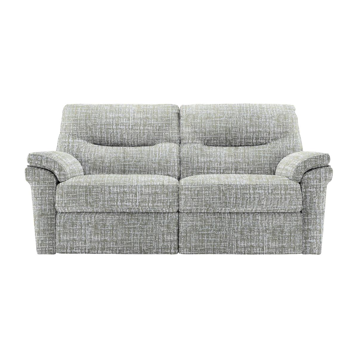 The Seattle range brings you the very best of G Plan – thoughtful design, understated contemporary style and world-famous craftsmanship – alongside some superb comfort features including effortlessly smooth power recliners, innovative power lumbar support and even integrated USB ports. Every sofa and armchair in the range makes relaxing easier thanks to the deep, supportive sprung seats, and the sumptuous cushioning achieves the perfect balance of softness and support. This carefully curated range is available in your choice of premium 100% leather and high-quality fabric, both of which are offered in an exceptional range of classic and contemporary colours. Beautifully handcrafted in the UK.There’s nothing quite like the feeling of power recliners plus power lumbar support that you’ll enjoy with this G Plan Seattle 2-seater sofa. Made by hand. Why you'll love it Relax, recline and more with this 2.5-seater fabric power recliner sofa. Relaxed contemporary style with unique comfort features. Innovative power lumbar delivers exceptional support, when and where you need it. Find your perfect relaxed position with smooth power recliners. Enjoy a deep and supportive sit thanks to the sprung base, soft curves and superb cushioning. Integrated USB ports for easy device charging. So many beautiful upholstery fabric styles and colours to choose from. 25-year frame guarantee. Beautifully handcrafted in the UK. This 2.5-seater fabric power recliner sofa with power lumbar is part of the G Plan Seattle range. What you need to know Medium comfort level. Seat suspension: springs. Seat cushions are fixed. Back cushioning: premium-quality fibre. Back cushions are fixed. This sofa is supplied on glides. Please allow time for new recliners to ease. Minor gaps are necessary to ensure ease of recliner motion and may be exaggerated depending on floor type. Some fabrics can show wear on areas of more use or in direct sunlight. Clean regularly using a soft brush or vacuum with the curtain attachment. Deal with any spills promptly. Professional cleaning advised for oil- and grease-based stains. Please read our upholstery care guide for more advice.