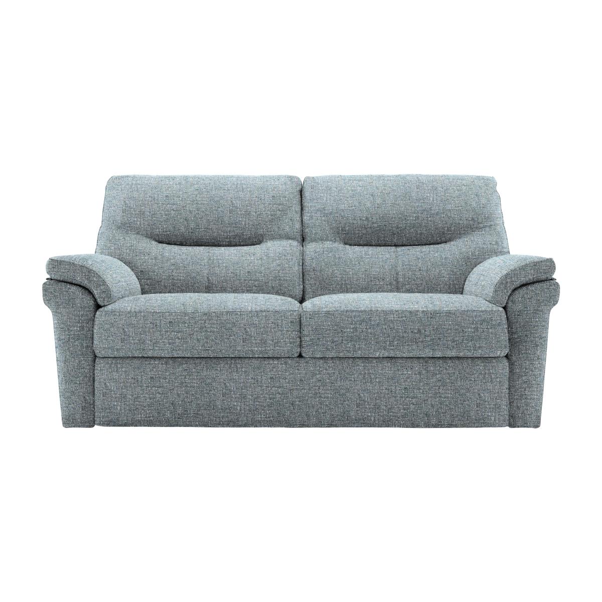 The Seattle range brings you the very best of G Plan – thoughtful design, understated contemporary style and world-famous craftsmanship – alongside some superb comfort features including effortlessly smooth power recliners, innovative power lumbar support and even integrated USB ports. Every sofa and armchair in the range makes relaxing easier thanks to the deep, supportive sprung seats, and the sumptuous cushioning achieves the perfect balance of softness and support. This carefully curated range is available in your choice of premium 100% leather and high-quality fabric, both of which are offered in an exceptional range of classic and contemporary colours. Beautifully handcrafted in the UK.The perfect size for most living rooms, this fabric power recliner sofa by G Plan promises perfect comfort. Handcrafted and available in a wide choice of fabrics. Why you'll love it You’ll enjoy a special kind of comfort with this 2.5-seater fabric power recliner sofa. Relaxed contemporary style. Find your perfect relaxed position with smooth power recliners. Enjoy a deep and supportive sit thanks to the sprung base, soft curves and superb cushioning. Integrated USB ports for easy device charging. So many beautiful upholstery fabric styles and colours to choose from. 25-year frame guarantee. Beautifully handcrafted in the UK. Also available with manual recliners and without recliners. This 2.5-seater fabric power recliner sofa is part of the G Plan Seattle range. What you need to know Medium comfort level. Seat suspension: springs. Seat cushions are fixed. Back cushioning: premium-quality fibre. Back cushions are fixed. This sofa is supplied on glides. USB charging is only available with the power recliner version of this sofa. Please allow time for new recliners to ease. Minor gaps are necessary to ensure ease of recliner motion and may be exaggerated depending on floor type. Some fabrics can show wear on areas of more use or in direct sunlight. Clean regularly using a soft brush or vacuum with the curtain attachment. Deal with any spills promptly. Professional cleaning advised for oil- and grease-based stains. Please read our upholstery care guide for more advice.