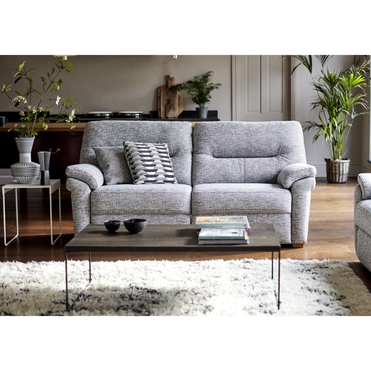 The Seattle range brings you the very best of G Plan – thoughtful design, understated contemporary style and world-famous craftsmanship – alongside some superb comfort features including effortlessly smooth power recliners, innovative power lumbar support and even integrated USB ports. Every sofa and armchair in the range makes relaxing easier thanks to the deep, supportive sprung seats, and the sumptuous cushioning achieves the perfect balance of softness and support. This carefully curated range is available in your choice of premium 100% leather and high-quality fabric, both of which are offered in an exceptional range of classic and contemporary colours. Beautifully handcrafted in the UK.Perfect comfort and inviting contemporary style, this G Plan Seattle fabric sofa with wooden feet is neither too large nor too small. Handcrafted. Why you'll love it Perfectly proportioned 2.5 seater G Plan fabric sofa will always be the perfect fit. Relaxed contemporary style. Enjoy a deep and supportive sit thanks to the sprung base, soft curves and superb cushioning. Elegant wooden feet in a choice of finish. So many beautiful upholstery fabric styles and colours to choose from. 25-year frame guarantee. Beautifully handcrafted in the UK. This 2.5-seater fabric sofa with wooden feet is part of the G Plan Seattle range. What you need to know Medium comfort level. Seat suspension: springs. Seat cushions are fixed. Back cushioning: premium-quality fibre. Back cushions are fixed. Some fabrics can show wear on areas of more use or in direct sunlight. Clean regularly using a soft brush or vacuum with the curtain attachment. Deal with any spills promptly. Professional cleaning advised for oil- and grease-based stains. Please read our upholstery care guide for more advice.