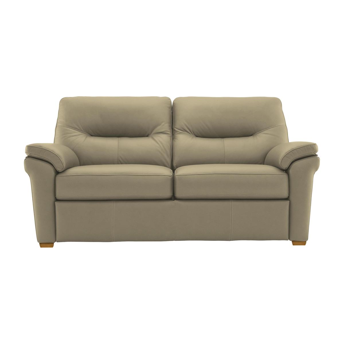 The Seattle range brings you the very best of G Plan – thoughtful design, understated contemporary style and world-famous craftsmanship – alongside some superb comfort features including effortlessly smooth power recliners, innovative power lumbar support and even integrated USB ports. Every sofa and armchair in the range makes relaxing easier thanks to the deep, supportive sprung seats, and the sumptuous cushioning achieves the perfect balance of softness and support. This carefully curated range is available in your choice of premium 100% leather and high-quality fabric, both of which are offered in an exceptional range of classic and contemporary colours. Beautifully handcrafted in the UK.Designed for comfort as well as style, this lovely leather G Plan Seattle sofa is finished with wooden feet. Handcrafted in a choice of leather colours. Why you'll love it With stylish wooden feet, this 2.5 seater G Plan leather sofa is perfect all over. Relaxed contemporary style. Enjoy a deep and supportive sit thanks to the sprung base, soft curves and superb cushioning. Elegant wooden feet in a choice of finish. The 100% top-grain leather upholstery comes in a huge choice of colours. 25-year frame guarantee. Beautifully handcrafted in the UK. This 2.5-seater leather sofa with wooden feet is part of the G Plan Seattle range. What you need to know Medium comfort level. Seat suspension: springs. Seat cushions are fixed. Back cushioning: premium-quality fibre. Back cushions are fixed. Some fabrics can show wear on areas of more use or in direct sunlight. Clean regularly using a soft brush or vacuum with the curtain attachment. Deal with any spills promptly. Professional cleaning advised for oil- and grease-based stains. Please read our upholstery care guide for more advice.