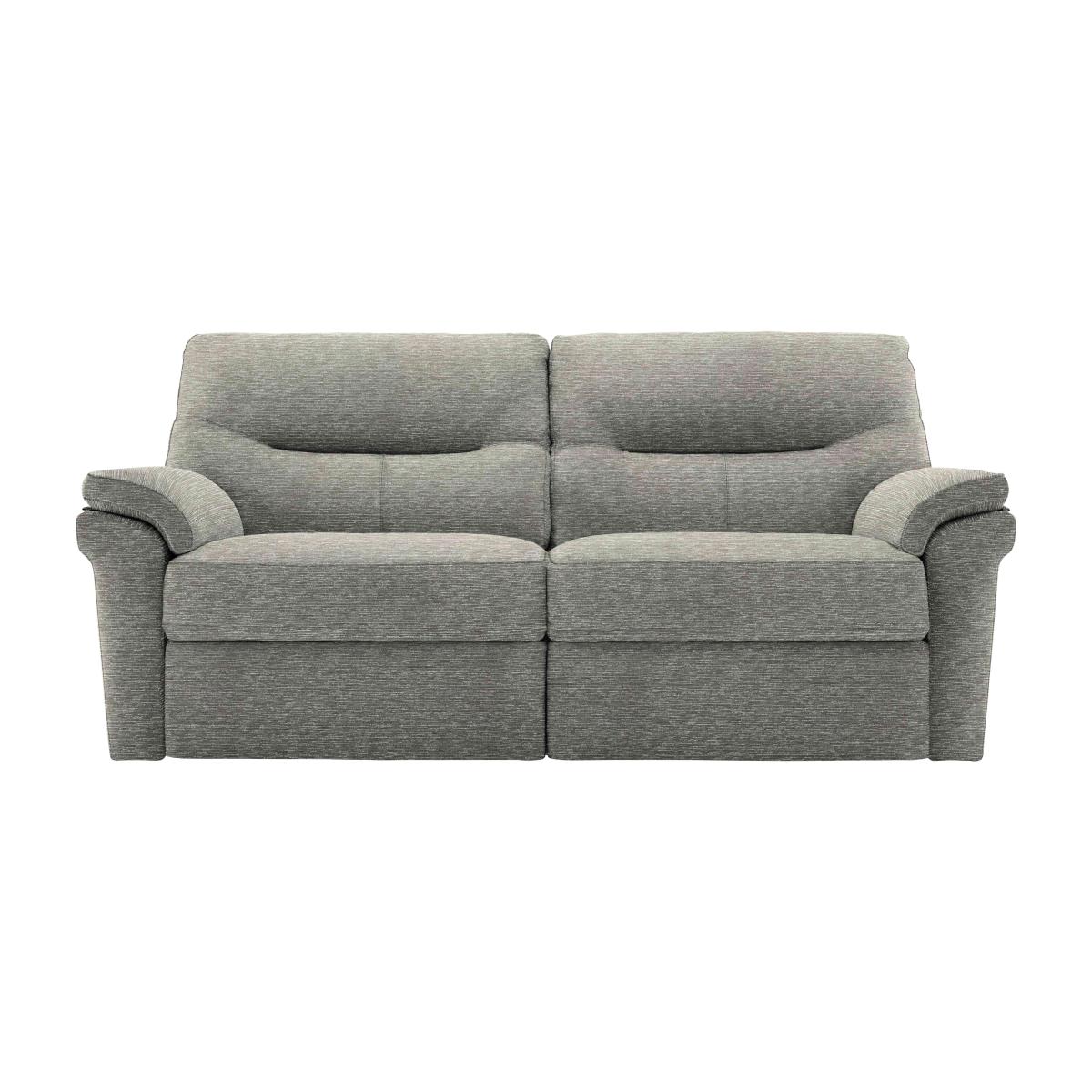 The Seattle range brings you the very best of G Plan – thoughtful design, understated contemporary style and world-famous craftsmanship – alongside some superb comfort features including effortlessly smooth power recliners, innovative power lumbar support and even integrated USB ports. Every sofa and armchair in the range makes relaxing easier thanks to the deep, supportive sprung seats, and the sumptuous cushioning achieves the perfect balance of softness and support. This carefully curated range is available in your choice of premium 100% leather and high-quality fabric, both of which are offered in an exceptional range of classic and contemporary colours. Beautifully handcrafted in the UK.Sit back and really, really relax. Along with power recliners, this G Plan Seattle 3-seater fabric sofa has power lumbar support that definitely hits the spot. Why you'll love it This 3-seater fabric power recliner sofa takes you to a new level of comfort and support. Relaxed contemporary style with unique comfort features. Innovative power lumbar delivers exceptional support, when and where you need it. Find your perfect relaxed position with smooth power recliners. Enjoy a deep and supportive sit thanks to the sprung base, soft curves and superb cushioning. Integrated USB ports for easy device charging. So many beautiful upholstery fabric styles and colours to choose from. 25-year frame guarantee. Beautifully handcrafted in the UK. This 3-seater fabric power recliner sofa with power lumbar is part of the G Plan Seattle range. What you need to know Medium comfort level. Seat suspension: springs. Seat cushions are fixed. Back cushioning: premium-quality fibre. Back cushions are fixed. This sofa is supplied on glides. Please allow time for new recliners to ease. Minor gaps are necessary to ensure ease of recliner motion and may be exaggerated depending on floor type. Some fabrics can show wear on areas of more use or in direct sunlight. Clean regularly using a soft brush or vacuum with the curtain attachment. Deal with any spills promptly. Professional cleaning advised for oil- and grease-based stains. Please read our upholstery care guide for more advice.