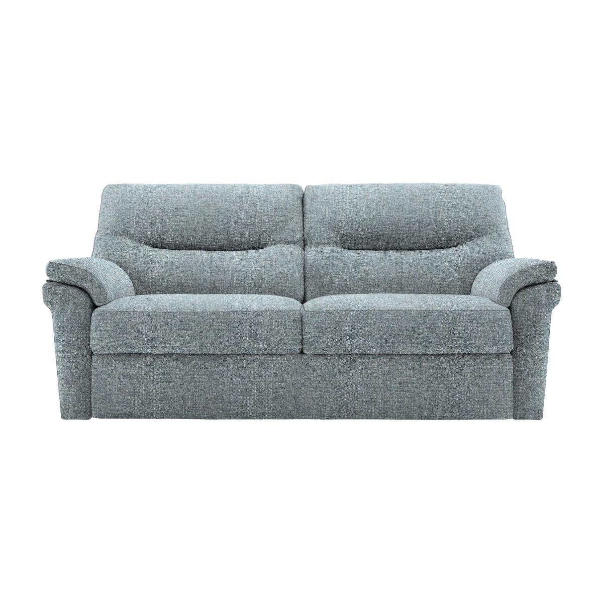 The Seattle range brings you the very best of G Plan – thoughtful design, understated contemporary style and world-famous craftsmanship – alongside some superb comfort features including effortlessly smooth power recliners, innovative power lumbar support and even integrated USB ports. Every sofa and armchair in the range makes relaxing easier thanks to the deep, supportive sprung seats, and the sumptuous cushioning achieves the perfect balance of softness and support. This carefully curated range is available in your choice of premium 100% leather and high-quality fabric, both of which are offered in an exceptional range of classic and contemporary colours. Beautifully handcrafted in the UK.It’s by G Plan so you know that this handcrafted three-seater power recliner sofa is going to feel amazing. In a wide choice of fabrics. Why you'll love it Enjoy G Plan’s special brand of comfort with this 3-seater fabric power recliner sofa. Relaxed contemporary style. Find your perfect relaxed position with smooth power recliners. Enjoy a deep and supportive sit thanks to the sprung base, soft curves and superb cushioning. Integrated USB ports for easy device charging. So many beautiful upholstery fabric styles and colours to choose from. 25-year frame guarantee. Beautifully handcrafted in the UK. Also available with manual recliners and without recliners. This 3-seater fabric power recliner sofa is part of the G Plan Seattle range. What you need to know Medium comfort level. Seat suspension: springs. Seat cushions are fixed. Back cushioning: premium-quality fibre. Back cushions are fixed. This sofa is supplied on glides. USB charging is only available with the power recliner version of this sofa. Please allow time for new recliners to ease. Minor gaps are necessary to ensure ease of recliner motion and may be exaggerated depending on floor type. Some fabrics can show wear on areas of more use or in direct sunlight. Clean regularly using a soft brush or vacuum with the curtain attachment. Deal with any spills promptly. Professional cleaning advised for oil- and grease-based stains. Please read our upholstery care guide for more advice.