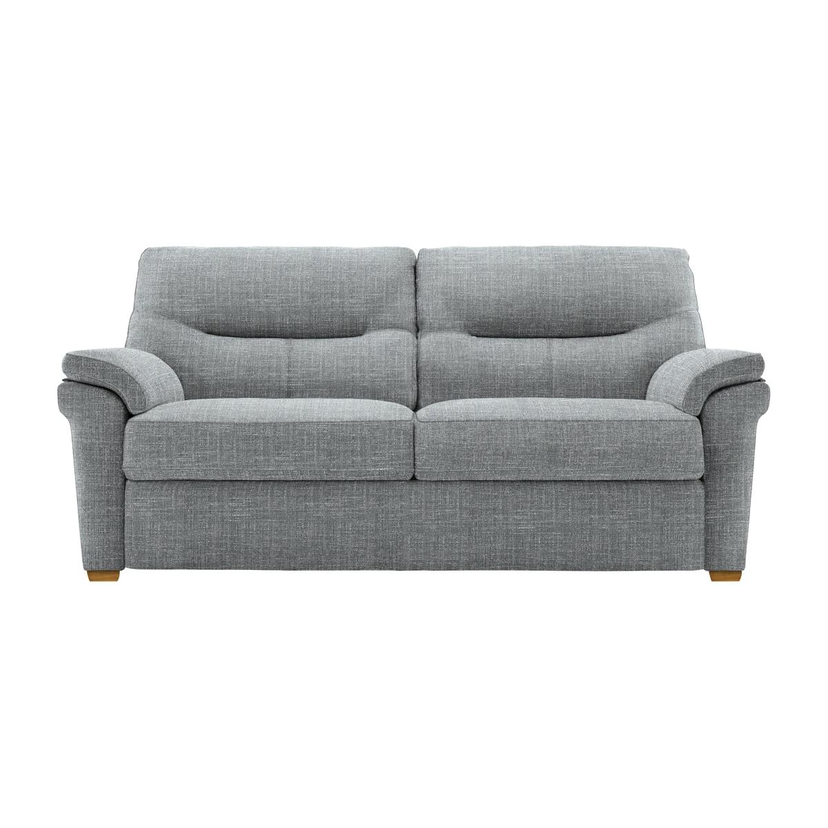 The Seattle range brings you the very best of G Plan – thoughtful design, understated contemporary style and world-famous craftsmanship – alongside some superb comfort features including effortlessly smooth power recliners, innovative power lumbar support and even integrated USB ports. Every sofa and armchair in the range makes relaxing easier thanks to the deep, supportive sprung seats, and the sumptuous cushioning achieves the perfect balance of softness and support. This carefully curated range is available in your choice of premium 100% leather and high-quality fabric, both of which are offered in an exceptional range of classic and contemporary colours. Beautifully handcrafted in the UK.Enjoy G Plan’s distinctive style and commitment to comfort in this lovely three-seater sofa. In a wide choice of fabrics and with neat wooden feet. Why you'll love it This wonderfully comfortable 3-seater fabric sofa is unmistakably G Plan. Relaxed contemporary style. Enjoy a deep and supportive sit thanks to the sprung base, soft curves and superb cushioning. Elegant wooden feet in a choice of finish. So many beautiful upholstery fabric styles and colours to choose from. 25-year frame guarantee. Beautifully handcrafted in the UK. This 3-seater fabric sofa with wooden feet is part of the G Plan Seattle range. What you need to know Medium comfort level. Seat suspension: springs. Seat cushions are fixed. Back cushioning: premium-quality fibre. Back cushions are fixed. Some fabrics can show wear on areas of more use or in direct sunlight. Clean regularly using a soft brush or vacuum with the curtain attachment. Deal with any spills promptly. Professional cleaning advised for oil- and grease-based stains. Please read our upholstery care guide for more advice.