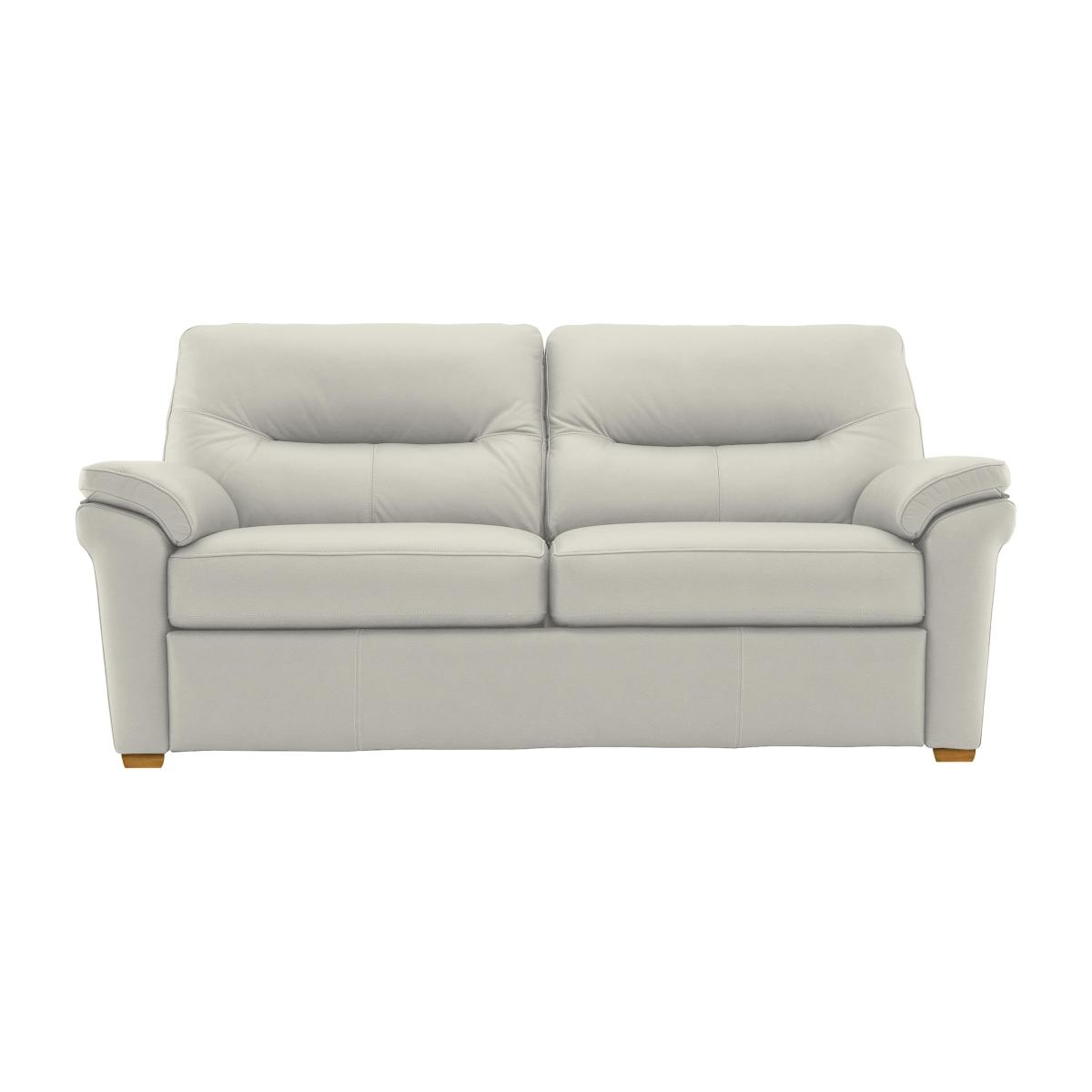 The Seattle range brings you the very best of G Plan – thoughtful design, understated contemporary style and world-famous craftsmanship – alongside some superb comfort features including effortlessly smooth power recliners, innovative power lumbar support and even integrated USB ports. Every sofa and armchair in the range makes relaxing easier thanks to the deep, supportive sprung seats, and the sumptuous cushioning achieves the perfect balance of softness and support. This carefully curated range is available in your choice of premium 100% leather and high-quality fabric, both of which are offered in an exceptional range of classic and contemporary colours. Beautifully handcrafted in the UK.This handmade leather three-seater sofa is classic G Plan all the way. Stylish curves, exceptional comfort, 100% leather upholstery and neat wooden feet. Why you'll love it We love everything about this G Plan 3-seater leather sofa with wooden feet. Relaxed contemporary style. Enjoy a deep and supportive sit thanks to the sprung base, soft curves and superb cushioning. Elegant wooden feet in a choice of finish. The 100% top-grain leather upholstery comes in a huge choice of colours. 25-year frame guarantee. Beautifully handcrafted in the UK. This 3-seater leather sofa with wooden feet is part of the G Plan Seattle range. What you need to know Medium comfort level. Seat suspension: springs. Seat cushions are fixed. Back cushioning: premium-quality fibre. Back cushions are fixed. Leather has unique marks and characteristics with variation in colour and texture. Leather softens with use. Smoothing the tops of leather cushions prevents signs of visual comfort. Please read our upholstery care guide for more advice.