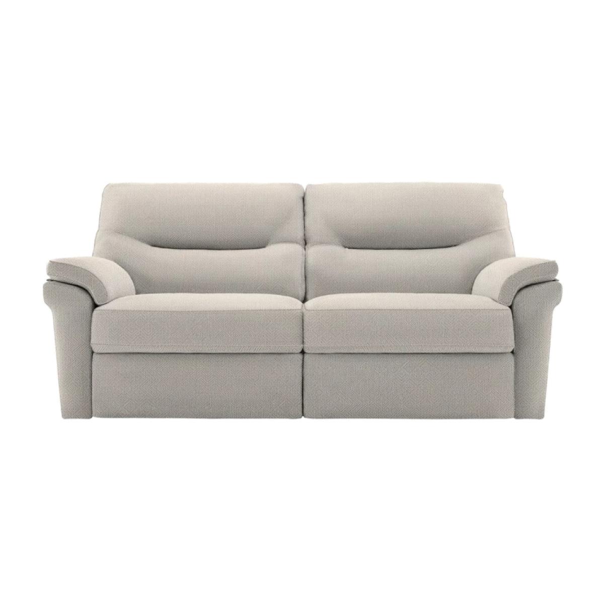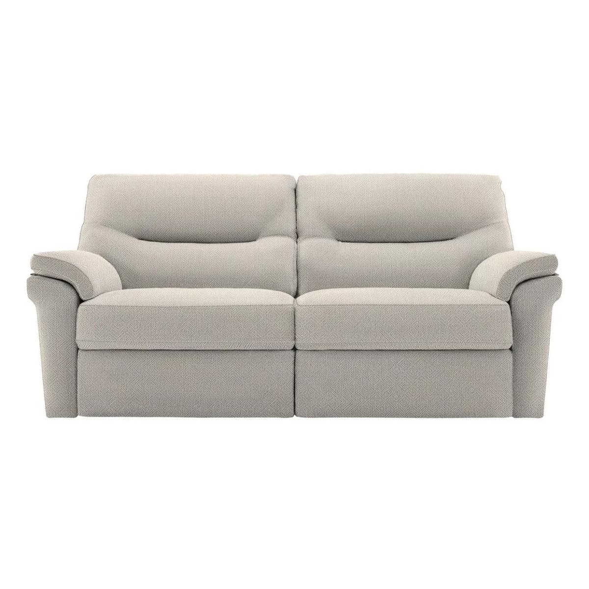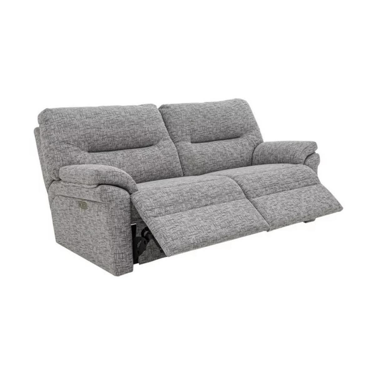 The G Plan Seattle 3 Seater Recliner Sofa combines contemporary elegance with luxurious comfort, offering the perfect place to unwind. Designed with clean, straight lines and sleek arm details, this chair brings a modern sophistication to any living space while providing the ultimate reclining experience. With full and sumptuous cushions, the Seattle Recliner delivers a deep, supportive sit, ensuring you can truly relax. The smooth reclining mechanism allows you to effortlessly adjust your position, whether you're reading, watching TV, or simply resting. Upholstered in premium-quality fabric or leather, this recliner is built for durability while maintaining a stylish and refined appearance. The manual or power reclining options let you tailor your comfort experience to suit your needs. Key Features: Smooth reclining mechanism for effortless relaxation Available in manual or power recline options Turn up the Heat! – Heated Seats are now available across the Seattle Range.(See Seperate Tab for Details) Upholstered in high-quality fabric or leather to suit your style Recliner sofas are supplied in sections for ease of delivery. Handcrafted in the UK 25 year timber frame & frame construction guarantee. Dimensions: Height: 101cm Width: 202cm Depth: 101cm (allow 50mm to fully recline) Seat Height: 51cm Seat Width: 148cm Seat Depth: 54cm Please note, all measurements are approximate and relate to the overall size of the item including soft arm cushions where fitted and back cushions. All screens vary in colour reproduction and whilst every effort has been made to display the colour as accurately as possible it is for guidance only.