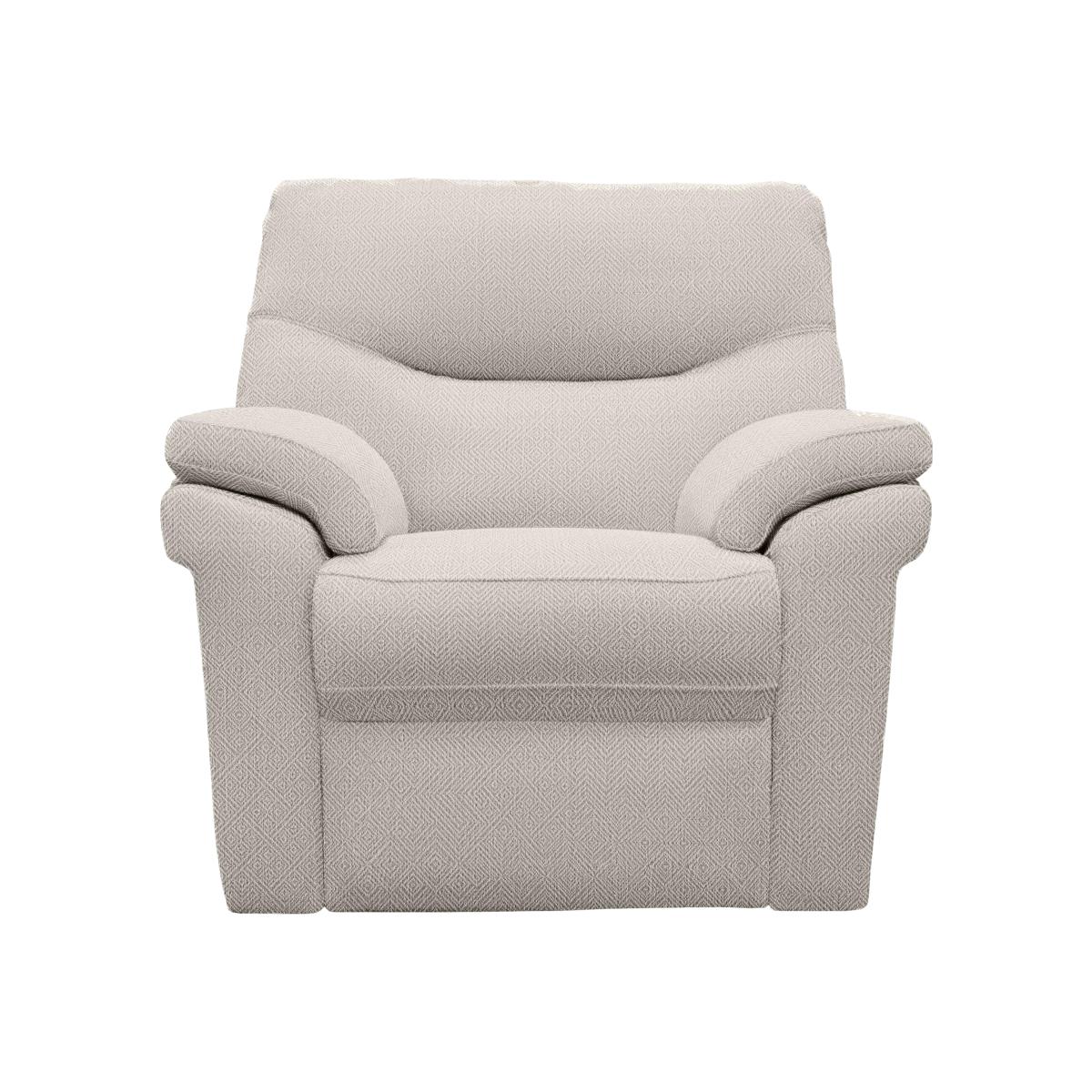 Introducing G Plan’s most contemporary model yet, the Seattle. Boasting all of G Plan’s world-renowned craftsmanship and comfort in a new, updated design for the modern home. Indulge in deeply supportive comfort with indulgently cushioned seats and premium fibre back cushions that hug you in sumptuous cushioning. A sprung base supports you while cushioned arms pads and a choice of premium, soft-to-the-touch leather or luxury woven fabric enhances your relaxation. Choose a static style or recline and unwind at the touch of a button with a manual or power recliner design. USB ports are a handy addition to this elegantly contemporary sofa range. Choose from glides or wooden feet to accent its soft curves and clean lines. Beautifully handcrafted and tailored in the UK by skilled craftsmen. Elegantly contemporary design with a deep, supportive sit. Upholstered in a luxury woven fabric. 25-year frame guarantee. Handcrafted in Britain. Sink into a world of comfort and deep relaxation with the G Plan Seattle Fabric Armchair. It offers an indulgent, deeply supportive sit that will leave you feeling totally relaxed. Deep-seated comfort combines with the generous support of a sprung base and the softness of a premium fibre-filled back cushion for a wonderfully cushioned sit. Its gently curved and contemporary design suits many living spaces and with the option of a manual or power recliner, you can adjust to your perfect position in a moment. On the power recliner, two useful USB ports let you charge your devices right next to you and glides attached to the bottom of the sofa let you easily move it around. This contemporary and deeply supportive fabric recliner armchair is part of G Plan’s handcrafted and luxuriously comfortable Seattle range. Waterproofing. Top tip: Some fabrics can show wear on areas of more use or in direct sunlight. To keep your fabric upholstery looking fresh, plump, turn and rotate seat and back cushions regularly if possible.