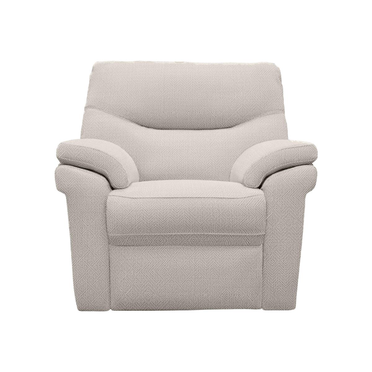 The Seattle range brings you the very best of G Plan – thoughtful design, understated contemporary style and world-famous craftsmanship – alongside some superb comfort features including effortlessly smooth power recliners, innovative power lumbar support and even integrated USB ports. Every sofa and armchair in the range makes relaxing easier thanks to the deep, supportive sprung seats, and the sumptuous cushioning achieves the perfect balance of softness and support. This carefully curated range is available in your choice of premium 100% leather and high-quality fabric, both of which are offered in an exceptional range of classic and contemporary colours. Beautifully handcrafted in the UK.The perfect armchair? With power recliner and power lumbar support, this G Plan Seattle fabric armchair delivers craftsmanship, style and incredible comfort. Made by hand. Why you'll love it With power recliner and power lumbar support, this armchair takes comfort further. Relaxed contemporary style with unique comfort features. Innovative power lumbar delivers exceptional support, when and where you need it. Find your perfect relaxed position with the smooth power recliner. Enjoy a deep and supportive sit thanks to the sprung base, soft curves and superb cushioning. Integrated USB port for easy device charging. So many beautiful upholstery fabric styles and colours to choose from. 25-year frame guarantee. Beautifully handcrafted in the UK. This fabric power recliner armchair with power lumbar is part of the G Plan Seattle range. What you need to know Medium comfort level. Seat suspension: springs. Seat cushions are fixed. Back cushioning: premium-quality fibre. Back cushions are fixed. This armchair is supplied on glides. Please allow time for new recliners to ease. Minor gaps are necessary to ensure ease of recliner motion and may be exaggerated depending on floor type. Some fabrics can show wear on areas of more use or in direct sunlight. Clean regularly using a soft brush or vacuum with the curtain attachment. Deal with any spills promptly. Professional cleaning advised for oil- and grease-based stains. Please read our upholstery care guide for more advice.