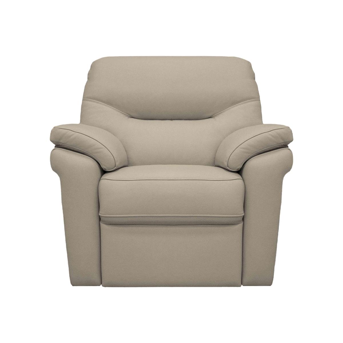 The Seattle range brings you the very best of G Plan – thoughtful design, understated contemporary style and world-famous craftsmanship – alongside some superb comfort features including effortlessly smooth power recliners, innovative power lumbar support and even integrated USB ports. Every sofa and armchair in the range makes relaxing easier thanks to the deep, supportive sprung seats, and the sumptuous cushioning achieves the perfect balance of softness and support. This carefully curated range is available in your choice of premium 100% leather and high-quality fabric, both of which are offered in an exceptional range of classic and contemporary colours. Beautifully handcrafted in the UK.Treat yourself to the G Plan Seattle leather power recliner armchair for an incomparable blend of craftsmanship and comfort. Why you'll love it Style, luxury and incredible comfort – this leather power recliner armchair has it all. Relaxed contemporary style with unique comfort features. Innovative power lumbar delivers exceptional support, when and where you need it. Find your perfect relaxed position with the smooth power recliner. Enjoy a deep and supportive sit thanks to the sprung base, soft curves and superb cushioning. Integrated USB port for easy device charging. The 100% top-grain leather upholstery comes in a huge choice of colours. 25-year frame guarantee. Beautifully handcrafted in the UK. This leather power recliner armchair with power lumbar is part of the G Plan Seattle range. What you need to know Medium comfort level. Seat suspension: springs. Seat cushions are fixed. Back cushioning: premium-quality fibre. Back cushions are fixed. This armchair is supplied on glides. Please allow time for new recliners to ease. Minor gaps are necessary to ensure ease of recliner motion and may be exaggerated depending on floor type. Leather has unique marks and characteristics with variation in colour and texture. Leather softens with use. Smoothing the tops of leather cushions prevents signs of visual comfort. Please read our upholstery care guide for more advice.