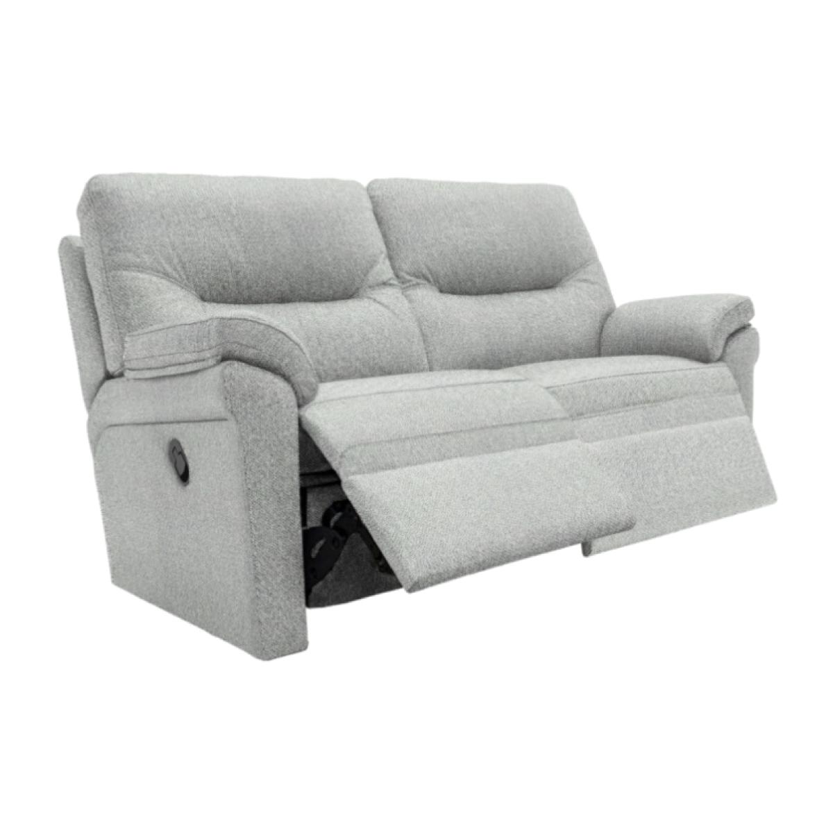 The G Plan Seattle offers contemporary elegance to any space featuring crisp tailoring and sleek arm details. Full and sumptuous cushions deliver a deep and comfortable sit. Various fabrics and leathers are on offer with a choice of contrast stitching available on Cambridge leathers. Static Sofas are available with a selection of wooden feet. The Seattle Power Recliner features integrated USB charging with metal touch buttons. For ease of delivery the reclining sofas are supplied in sections. G Plan are Handcrafted in the UK with a 25 year timber frame & frame construction guarantee. 2 Seater Dimensions: Height: 101 Width: 150 Depth: 104 (allow 50mm to fully recline) Seat Height: 51cm Seat Width: 96cm Seat Depth: 54cm Please note, all measurements are approximate and relate to the overall size of the item including soft arm cushions where fitted and back cushions. All screens vary in colour reproduction and whilst every effort has been made to display the colour as accurately as possible it is for guidance only.