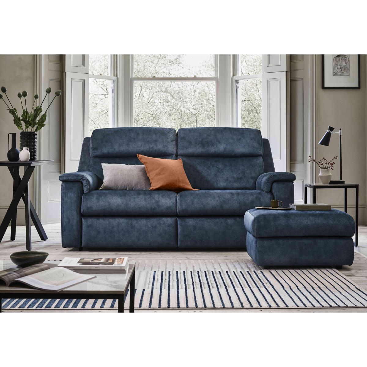 The G Plan Thornbury collection of sofas, chairs and footstools showcases the iconic comfort and classic style for which G plan is so well known. With innovative power features designed to maximise relaxation – power recliners, power headrests, USB charging points and even power lumbar support – alongside sprung seats and premium cushioning, this range makes a welcome addition to both traditional and contemporary interiors. Available in 100% leather and fabric upholstery in G Plan’s entire swatch book, this lovely collection range makes relaxing at home even more enjoyable. Handcrafted and only at Furniture Village. Luxury just got more comfortable thanks to this two-seater fabric sofa by G Plan with power recliners and classic G Plan high-back support. Why you'll love it Find comfort together with this 2-seater fabric power recliner sofa. Iconic G Plan comfort, only at Furniture Village. Relaxing is easy with power recliners, superb cushioning and wide arms. Traditional high back for support with comfort. Offered in every fabric in the G Plan swatch book. With your choice of castors or glides. Built in USB port for phone and tablet charging. Also available with manual recliners and with no recliners. This sofa is also offered in 100% leather. Handcrafted in the UK. Made by G Plan exclusively for Furniture Village. This 2-seater fabric power recliner sofa is part of our G Plan Thornbury range. What you need to know Medium comfort level. Seat suspension: springs. Seat cushioning: foam. Seat cushions are fixed. Back suspension: webbing. Back cushioning: premium fibre. Back cushions are fixed. Feet are fixed. USB charging is only available with the power version of this sofa. Please allow time for new recliners to ease. Minor gaps are necessary to ensure ease of recliner motion and may be exaggerated depending on floor type. Some fabrics can show wear on areas of more use or in direct sunlight. Clean regularly using a soft brush or vacuum with the curtain attachment. Deal with any spills promptly. Professional cleaning advised for oil- and grease-based stains. Please read our upholstery care guide for more advice.