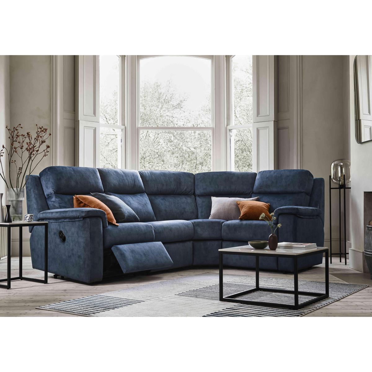 The G Plan Thornbury collection of sofas, chairs and footstools showcases the iconic comfort and classic style for which G plan is so well known. With innovative power features designed to maximise relaxation – power recliners, power headrests, USB charging points and even power lumbar support – alongside sprung seats and premium cushioning, this range makes a welcome addition to both traditional and contemporary interiors. Available in 100% leather and fabric upholstery in G Plan’s entire swatch book, this lovely collection range makes relaxing at home even more enjoyable. Handcrafted and only at Furniture Village. The perfect size for truly comfortable lounging, this corner sofa reclines for an even more relaxing experience. By G Plan and only at Furniture Village. Why you'll love it Classic comfort meets classic style in this fabric manual recliner corner sofa. Iconic G Plan comfort, only at Furniture Village. Relaxing is easy with the smooth recliner, superb cushioning and wide arms. Traditional high back for support with comfort. Offered in every fabric in the G Plan swatch book. With your choice of castors or glides. It’s modular – add an armless unit and make it even bigger. Upgrade to a power recliner, power headrests and power lumbar. Also available with no recliner. This corner sofa is also offered in 100% leather. Handcrafted in the UK. Made by G Plan exclusively for Furniture Village. This fabric manual recliner corner sofa is part of our G Plan Thornbury range. What you need to know Medium comfort level. Seat suspension: springs. Seat cushioning: foam. Seat cushions are fixed. Back suspension: webbing. Back cushioning: premium fibre. Back cushions are fixed. Feet are fixed. Please allow time for new recliners to ease. Minor gaps are necessary to ensure ease of recliner motion and may be exaggerated depending on floor type. Some fabrics can show wear on areas of more use or in direct sunlight. Clean regularly using a soft brush or vacuum with the curtain attachment. Deal with any spills promptly. Professional cleaning advised for oil- and grease-based stains. Please read our upholstery care guide for more advice.