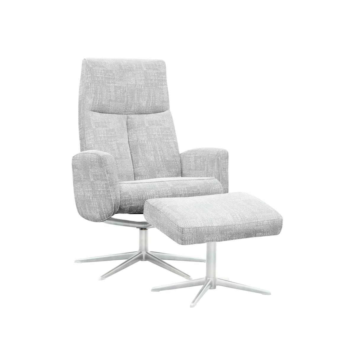 Showcasing G Plan’s iconic approach to design and comfort, our Scandi-inspired Vaasa swivel recliner chair and footstool set with chrome-finished metal bases lets you put your feet up in style. Why you'll love it Comfort and style go hand in hand in this swivel chair and footstool set from G Plan. Cool Scandi-inspired look. Chair swivels 360 degrees. Footstool is fixed. Superbly cushioned throughout. Seat back recline is manually adjustable. Choose from the entire G Plan fabric swatch book for the upholstery. Also available with 100% leather upholstery. Chair and footstool have chrome-finished metal bases. Find the G Plan Vaasa fabric swivel chair and footstool set only at Furniture Village. What you need to know Medium comfort level. Seat suspension: springs. Seat cushioning: moulded foam. Seat cushion is fixed. Back suspension: cold-cured moulded foam. Back cushioning: cold-cured moulded foam. Back cushion is fixed. Please allow time for new recliners to ease. Minor gaps are necessary to ensure ease of recliner motion and may be exaggerated depending on floor type. Some fabrics can show wear on areas of more use or in direct sunlight. Clean regularly using a soft brush or vacuum with the curtain attachment. Deal with any spills promptly. Professional cleaning advised for oil- and grease-based stains. Please read our upholstery care guide for more advice. Item code: VAASCHSCB-014