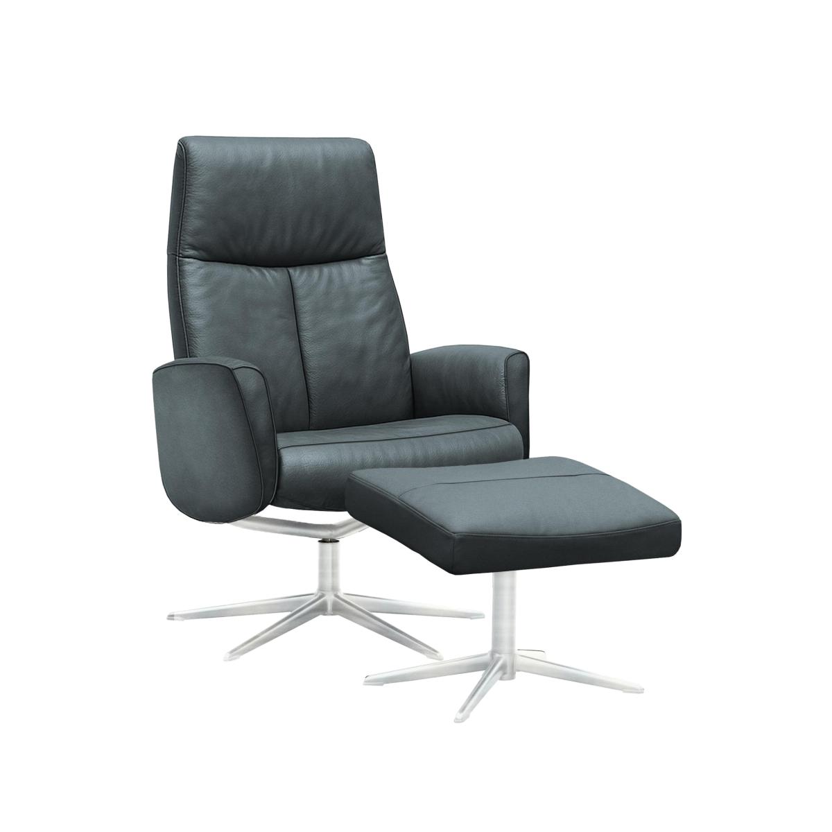 Showcasing G Plan’s iconic approach to design and comfort, our Scandi-inspired Vaasa leather swivel recliner chair and footstool set with chrome-finished metal bases lets you put your feet up in style. Why you'll love it Comfort and style go hand in hand in this leather swivel chair and footstool set from G Plan. Cool Scandi-inspired look. Chair swivels 360 degrees. Footstool is fixed. Superbly cushioned throughout. Seat back recline is manually adjustable. In a choice of colours for the 100% leather upholstery. Chair and footstool have chrome-finished metal bases. Find the G Plan Vaasa leather swivel chair and footstool set only at Furniture Village. What you need to know Medium comfort level. Seat suspension: springs. Seat cushioning: moulded foam. Seat cushion is fixed. Back suspension: cold-cured moulded foam. Back cushioning: cold-cured moulded foam. Back cushion is fixed. Please allow time for new recliners to ease. Minor gaps are necessary to ensure ease of recliner motion and may be exaggerated depending on floor type. Some fabrics can show wear on areas of more use or in direct sunlight. Clean regularly using a soft brush or vacuum with the curtain attachment. Deal with any spills promptly. Professional cleaning advised for oil- and grease-based stains. Please read our upholstery care guide for more advice. Item code: VAASCHSCH-010