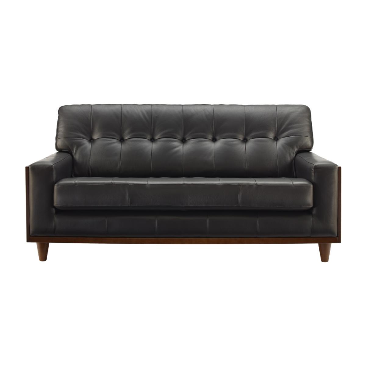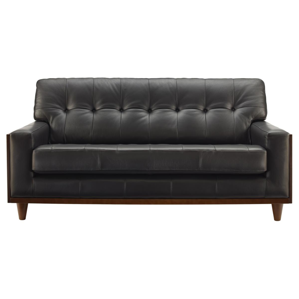 Introducing the G Plan Vintage Agatha 2.5 Seater Leather Sofa. This is the perfect sofa for those who seek sleek retro-inspired furniture. Pick from a curated selection of beautiful fabrics and leather to perfectly match your decor. The wooden feet and stunning polished beech show wood plinth comes in a choice of Walnut or Ebony. The G Plan Vintage Agatha is handcrafted in the UK and comes with a 25-year timber frame and frame construction guarantee. Shown here in Capri Black leather with Walnut legs. This image is only an indication of what the cover would look like and is not a true representation. You should always request a swatch sample. Features: Elegant wooden framing Delicate feet. Regal button detailing Perfect for those who seek sleek retro-inspired furniture. Available in a curated selection of beautiful fabrics and leathers Handcrafted in the UK with a 25-year timber frame and frame construction guarantee. 2.5 Seater Sofa Dimensions: Height: 90cm Width: 180cm Depth: 93cm Seat Height: 48cm Seat Width: 145.5cm Seat Depth: 56cm Please note, all measurements are approximate and relate to the overall size of the item including soft arm cushions where fitted and back cushions. Seat cushions are a fixed type. Scatter cushions are available at an additional price. All screens vary in colour reproduction and whilst every effort has been made to display the colour as accurately as possible it is for guidance only.