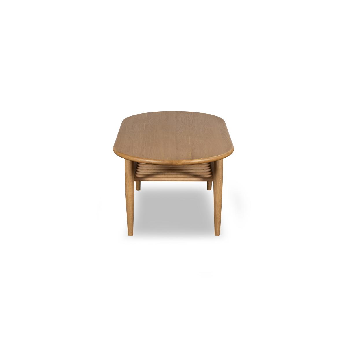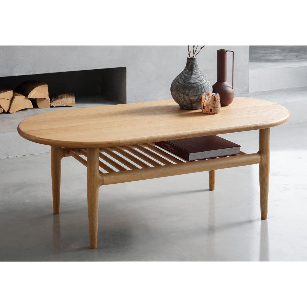 If you’re drawn to mid-century style, you’ll delight in the dining room furniture of the G Plan Winchester range. With a light oak finish, characteristically smooth curves, understated details and an emphasis on the natural beauty of wood, the collection is everything we love about G Plan – the master crafter of mid-century style – paired with authentic retro design. Comprising a well-rounded collection of dining sets, storage furniture and occasional tables, the range also offers two different extending dining table shapes, traditional rectangular and sociable round, which converts to a pleasing oval shape when you’re entertaining guests. The G Plan Winchester look is also available as bedroom furniture. Beautifully smooth curves, a fashionable pale oak finish and a wealth of well-crafted details? The G Plan Winchester coffee table is a mid-century-inspired original that’s made for modern homes. Why you'll love it On-trend mid-century style with a stylish paler oak finish from G Plan. This coffee table is a fabulous choice for modern, minimal and Scandi interiors. Smooth curved silhouette highlights the beautiful oak veneer woodgrain. Handy lower shelf composed of elegant spindles. This coffee table is part of the G Plan Winchester range. What you need to know Made with oak veneer and rubberwood. Oak and oak veneer surfaces will show variation in colour. Knots, filled knots and other markings are to be expected. Avoid placing in direct sunlight or close to a heat source. We recommend using placemats and coasters at all times. Love the look? Be sure to browse the G Plan Winchester bedroom furniture range. Item code: WINCCTBLLO-001