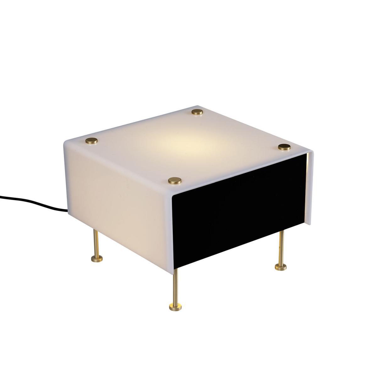 Vintage icon. Sammode Studio is reissuing a selection of lights designed in the 1950s by an iconic figure of post-war French design: Pierre Guariche (1926 – 1995). These strikingly modern lamps are pure of shape and very innovative for the post-war period. The original models of Pierre Guariche's lamps are now reaching new heights in auction rooms. Faithful to the original design and incorporating contemporary technologies, these lights, like all Sammode lights, display an exceptional quality of workmanship and French manufacture. Sammode Studio revisits the avant-garde spirit of one of the key lighting designers of the 1950s. Very prolific, in the 1950s, Pierre Guariche designed a multitude of lighting models corresponding to different uses. His lights offer great user comfort and optimal light quality. There’s no apparent light source, thus avoiding glare. Pierre Guariche didn’t study the possibility of expressing a style, but the best way of lighting a room. The technological ambition of Sammode Studio provides each part of the collection with advanced technical devices (swivel arm, cantilever, swivel or tilting jib, articulated spherical arm or counterweight sphere, etc. ). Designed in 1959, the G60 table lamp consists of a translucent PMMA cover and black metal flanks. The brushed brass feet pass through the structure. This table lamp also acts as a console, a shelf or a bedside table. Its pure, precise lines are reinvented in this faithful, modern reissue that combines wonderfully with contemporary decor.