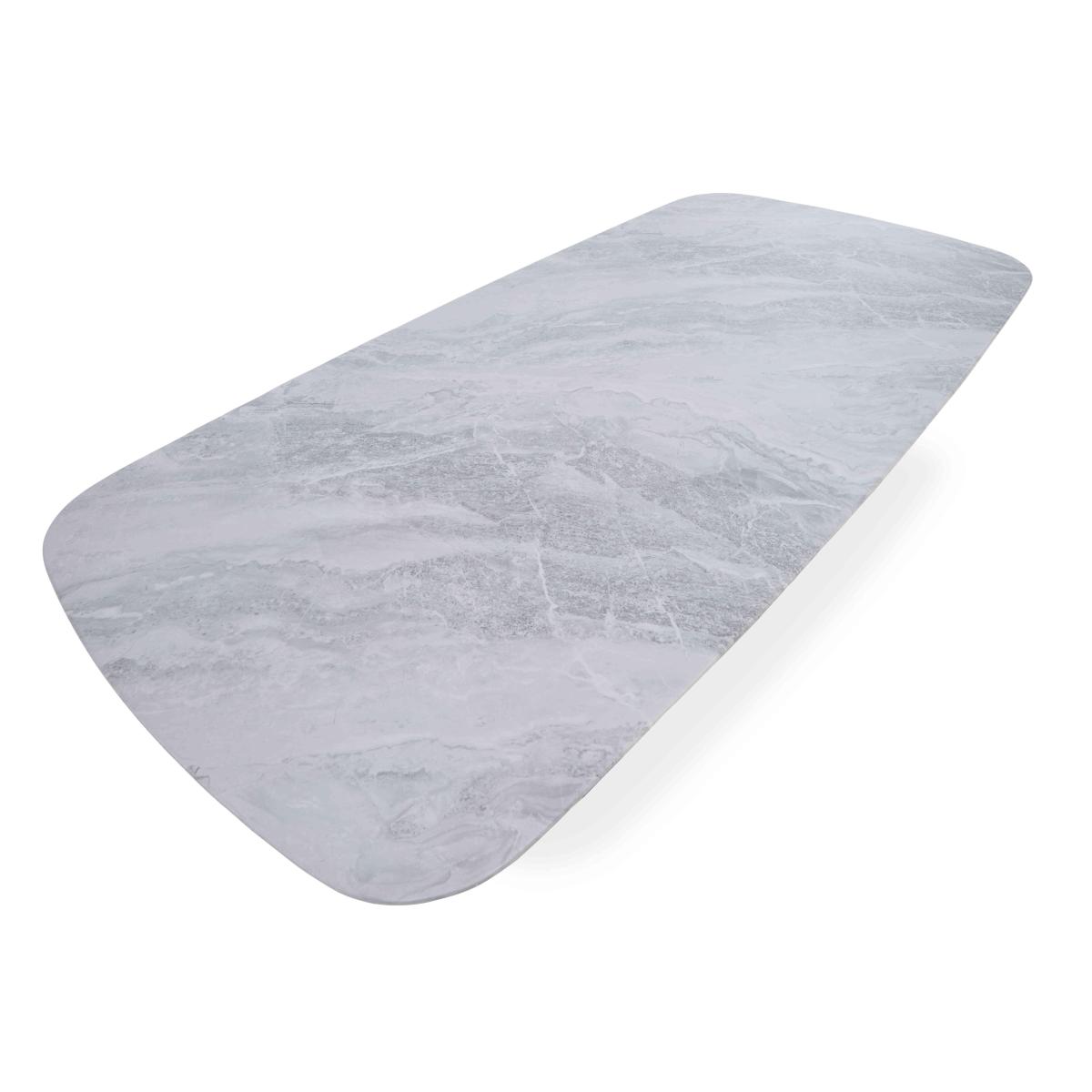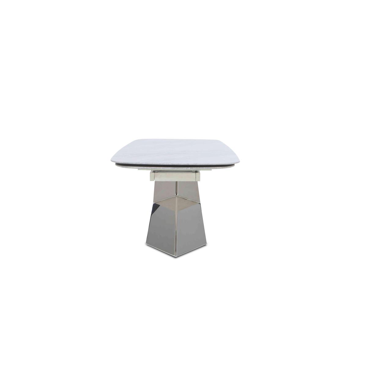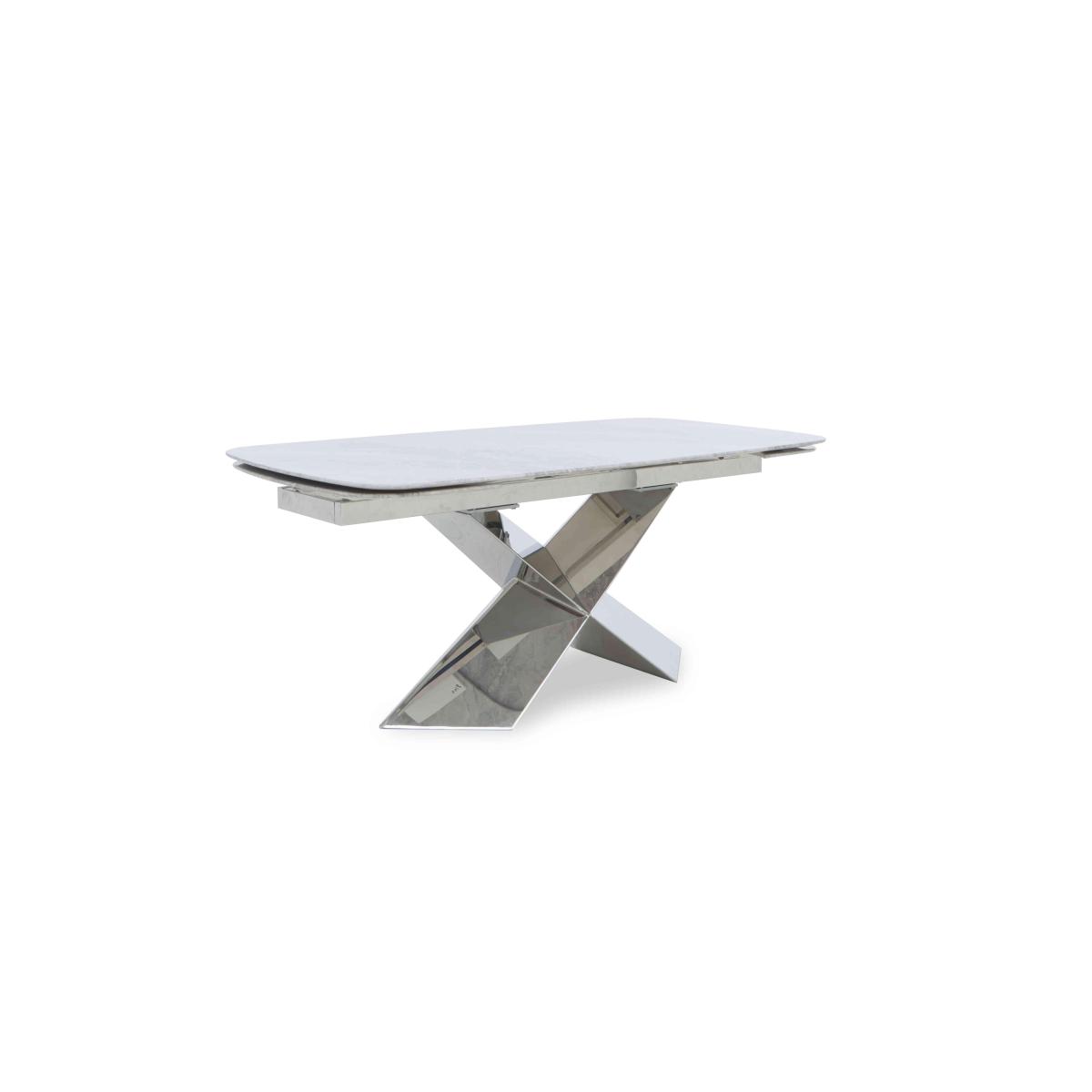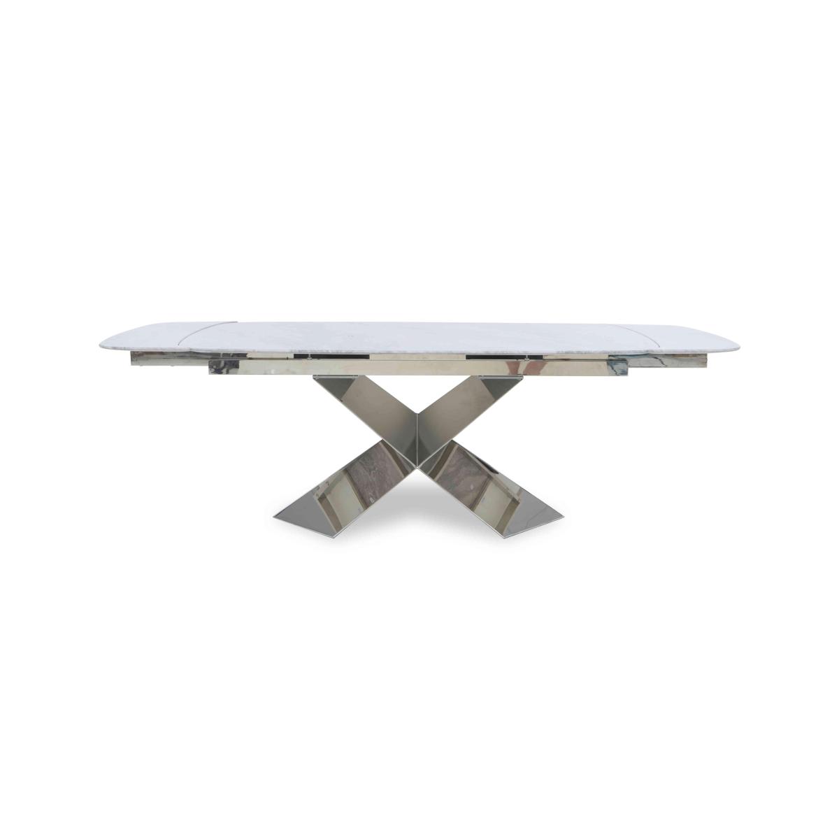 Showstopping dining room style has a new name – Gabana. Combining real marble with a high-gloss veneer finish and polished stainless steel, the collection’s aesthetic is both elegant and striking. And the details are equally impressive. The dining table’s extension leaves will always seamlessly match the marble patterning of the table top. The dining chairs are upholstered in the softest of velvets. And the tables’ X-shaped stainless steel bases are like nothing you've seen before. As well as two sizes of extending dining table, the Gabana range includes dining chairs, occasional tables, a sideboard and a wide choice of dining sets. Gabana is exclusively available at Furniture Village. If you’re looking for an extending dining table that really brings the wow factor, our Gabana table is it. From its real marble and high-gloss veneer top to its polished stainless steel base, nothing comes close. In two sizes. Why you'll love it This gorgeous extending dining table is simply stunning. The last word in showstopping style. Space-saving extending dining table. Beautiful real marble top with a high-gloss veneer finish. A special process ensures that the surface is perfectly patterned. Extension leaves perfectly match the table top for a flawless finish. Polished stainless steel frame and X-shaped base is so striking. In 2 sizes. A Furniture Village exclusive. This extending dining table is part of the Gabana range. What you need to know Small dining table seats 6, and 8 when extended. Large dining table seats 8, and 10 when extended. As a soft stone, marble can be susceptible to chips, stains, cracks, scratches and discolouration, so it’s important to care for it properly. Spillages need to be removed immediately. To clean, wipe gently with a damp cloth using warm water, then buff dry. We recommend that you use coasters and placemats to protect against heat and moisture. Do not use knives to cut food on a marble table top, use as a work top, place heavy weights on the table or use acidic or abrasive cleaners. You should never sit or stand on a marble surface. For more advice on caring for your marble furniture, see our Dining care guide. Browse the Gabana range for dining sets, chairs, living room tables and a sideboard.