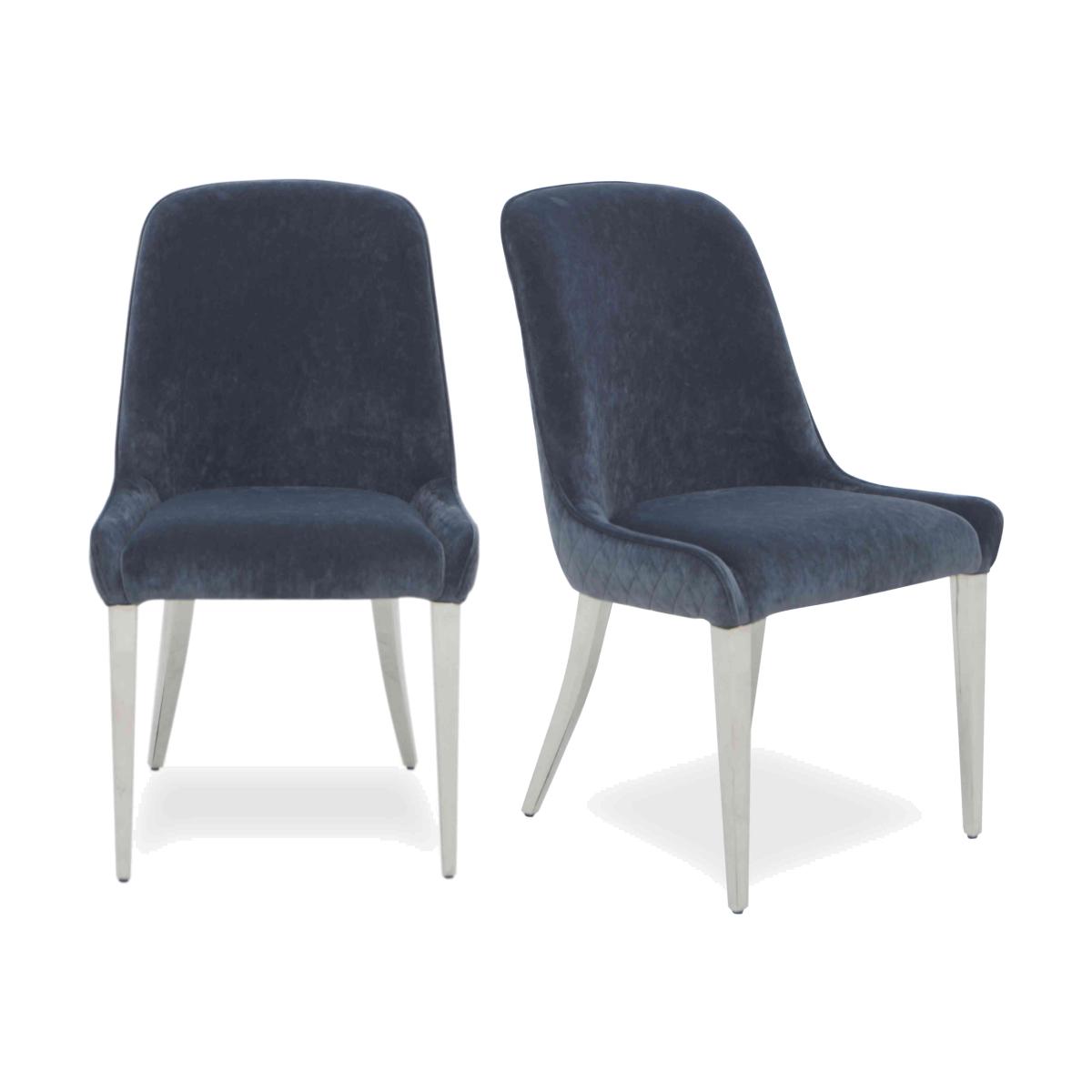Showstopping dining room style has a new name – Gabana. Combining real marble with a high-gloss veneer finish and polished stainless steel, the collection’s aesthetic is both elegant and striking. And the details are equally impressive. The dining table’s extension leaves will always seamlessly match the marble patterning of the table top. The dining chairs are upholstered in the softest of velvets. And the tables’ X-shaped stainless steel bases are like nothing you've seen before. As well as two sizes of extending dining table, the Gabana range includes dining chairs, occasional tables, a sideboard and a wide choice of dining sets. Gabana is exclusively available at Furniture Village. With beautiful curves, polished stainless steel legs and soft velvet upholstery, this pair of dining chairs makes any dining room more elegant. Why you'll love it This pair of velvet dining chairs look and feel so luxurious. The last word in showstopping style. Elegantly curved high backs and polished stainless steel legs. Beautifully upholstered in velvet with stitching detail and piping. In a choice of colours. Also available in sets of 4 and 6 dining chairs. A Furniture Village exclusive. This pair of velvet dining chairs is part of the Gabana range. What you need to know Foam cushioning. Stainless steel legs. Velvet upholstery will show pile flattening and shading over time. Perfect with our stunning Gabana extending dining table. Browse the Gabana range for dining tables, dining sets, living room tables and a sideboard.