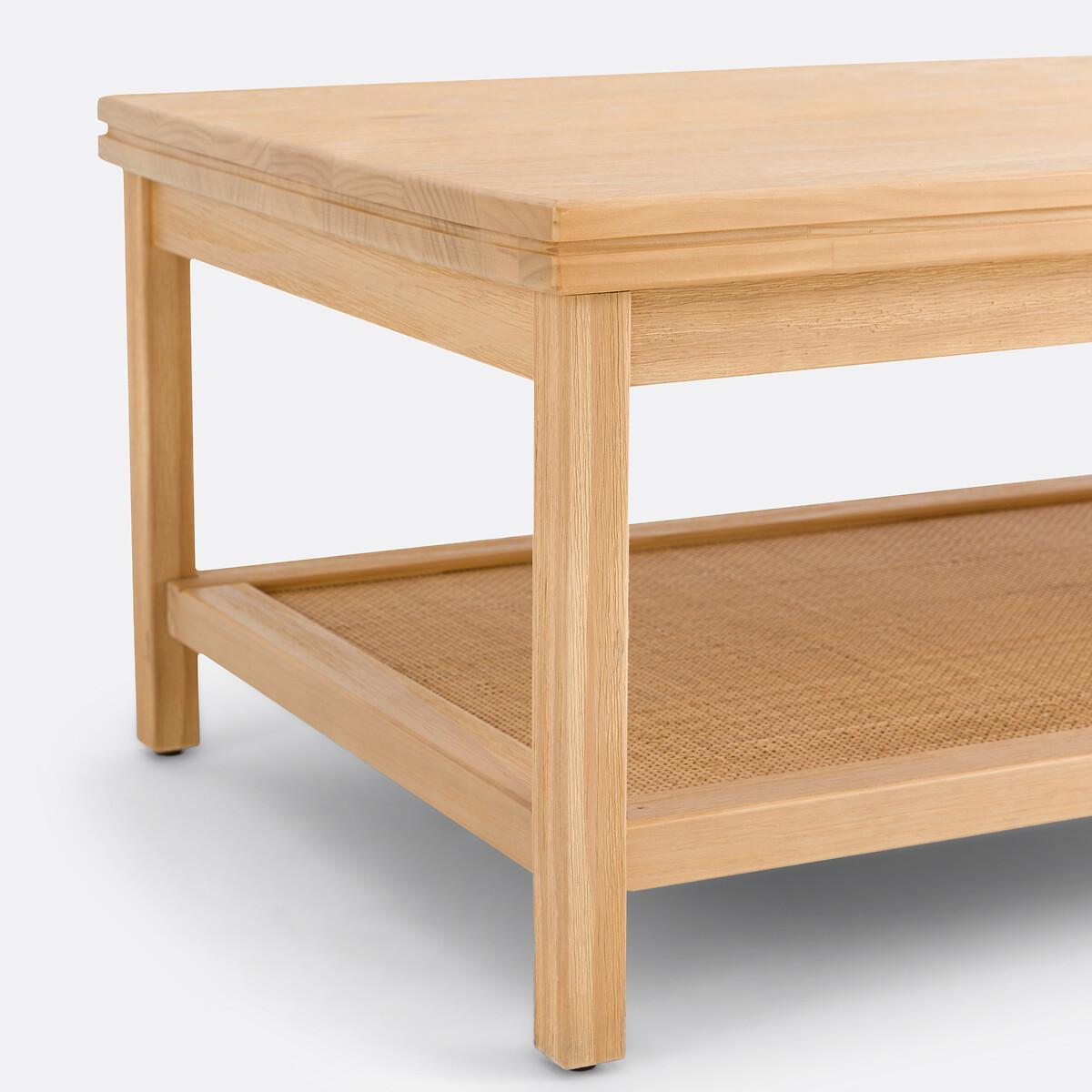 Scandinavian design, mixed with a vintage feel. The Gabin range combines lightly brushed solid pine with chic, on-trend caning. Designed by La Redoute Interiors. Product Details • In lightly brushed solid pine, FSC® certified, oak stained finish, nitrocellulose varnish • 1 lower shelf in cane veneer • Polypropylene glidesDimensions. Overall • Length: 120cm • Height: 40cm • Depth: 60cm. Usable space • Height between the 2 tiers : 20cm • Cane shelf: L107 x D47cm • Height of legs : 8cmDelivery:. This product is sold ready to assemble. It will be delivered to your door. Note! Please check that all access points are large enough to accommodate your delivery (doors, stairs, lifts). • WOOD FROM MORE SUSTAINABLY MANAGED FORESTS AND CONTROLLED SOURCES. FSC® Mix wood contains at least 70% FSC® certified and/or recycled wood, the remainder being FSC® controlled wood. Dimensions and weight of parcel1 parcel • L130.5 x H18 x D70cm. 21kg.
