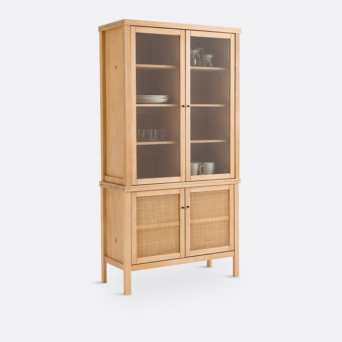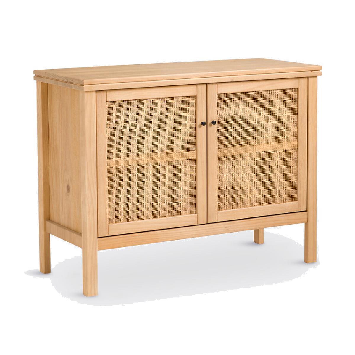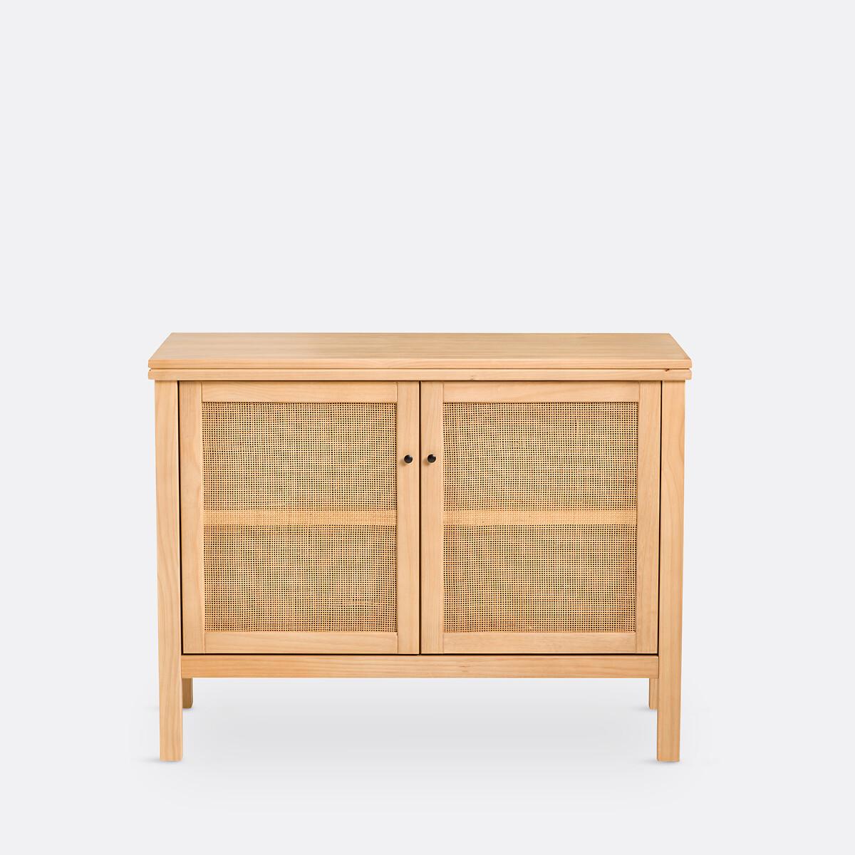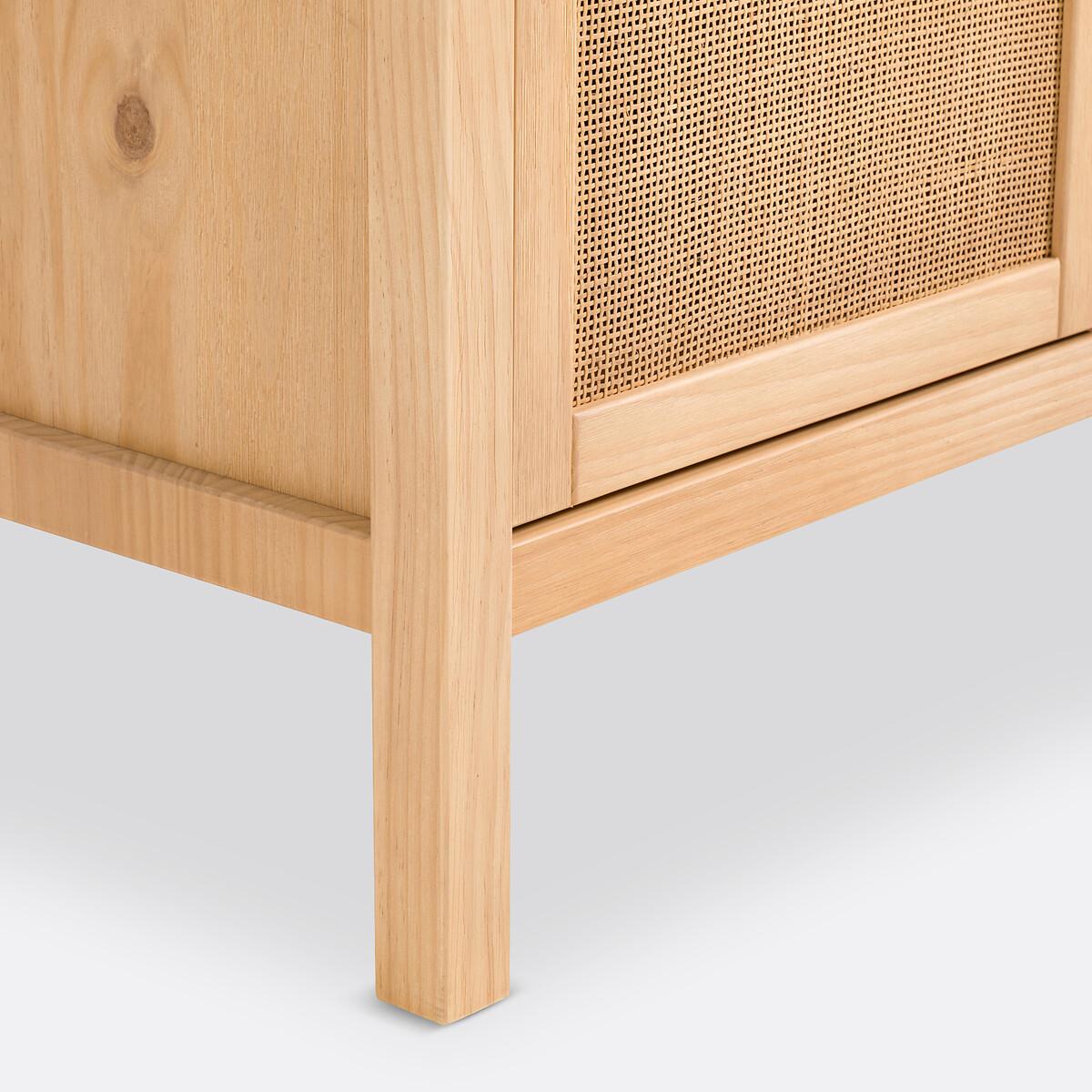 . Lightly brushed solid pine + caning = successful take on a 2-door sideboard; a piece of furniture with character! Dishes, papers, linens? Designed by La Redoute Interiors. Product Details • In lightly brushed solid pine, oak stained finish, nitrocellulose varnish • 2 rattan doors • 1 vertical divider • 2 removable and adjustable shelves in 3 positions • 4 compartments • Aged metal handles • Furniture base in MDF with wood decorDimensions. Overall • Width: 104.5cm • Height: 80cm • Depth: 45cm. Usable space • Compartments (useful size, excluding shelf): L45 x H54 x D39.4cm • Feet height, 17cmDelivery:. Assembly required. Available for home delivery. Note! Please check that all access points are large enough to accommodate your delivery (doors, stairs, lifts). • WOOD FROM SUSTAINABLY MANAGED FORESTS. FSC® certified wood comes from forests that are environmentally, socially and economically well managed. Dimensions and weight of parcel1 parcel • L55.5 x H116 x D25.8cm. 28kg