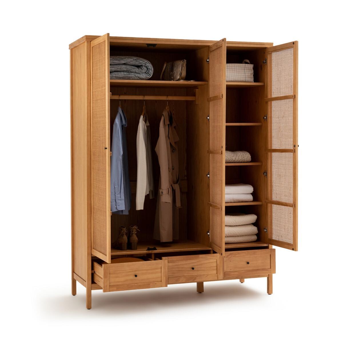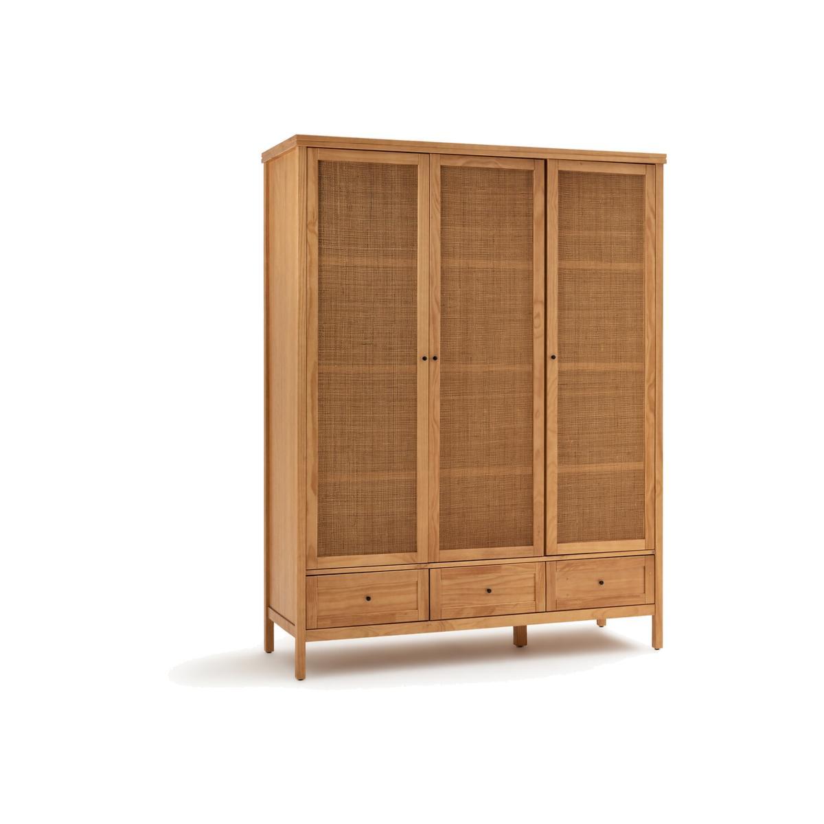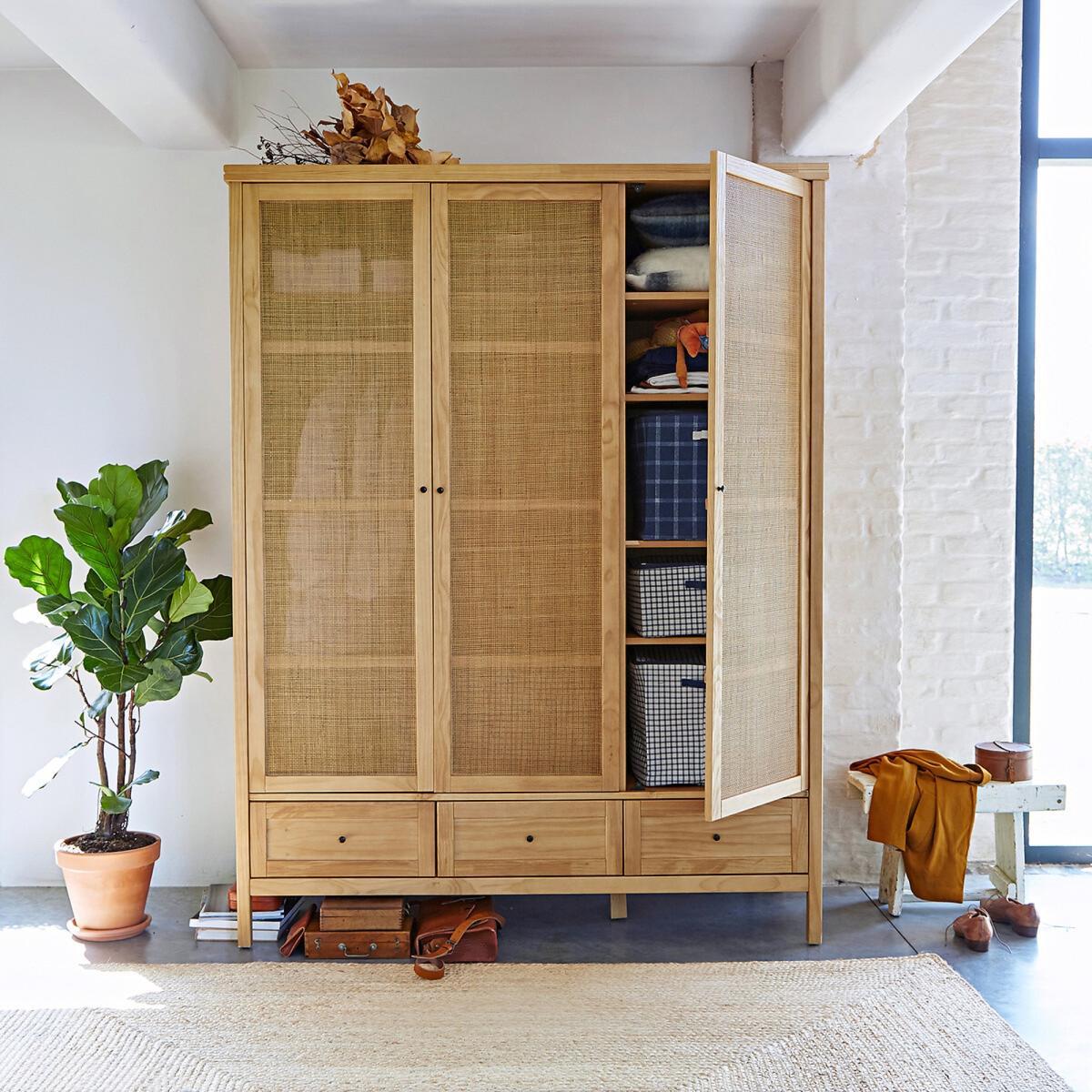 Gabin Solid Pine & Rattan Triple Wardrobe
