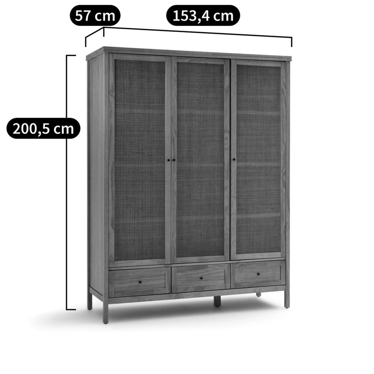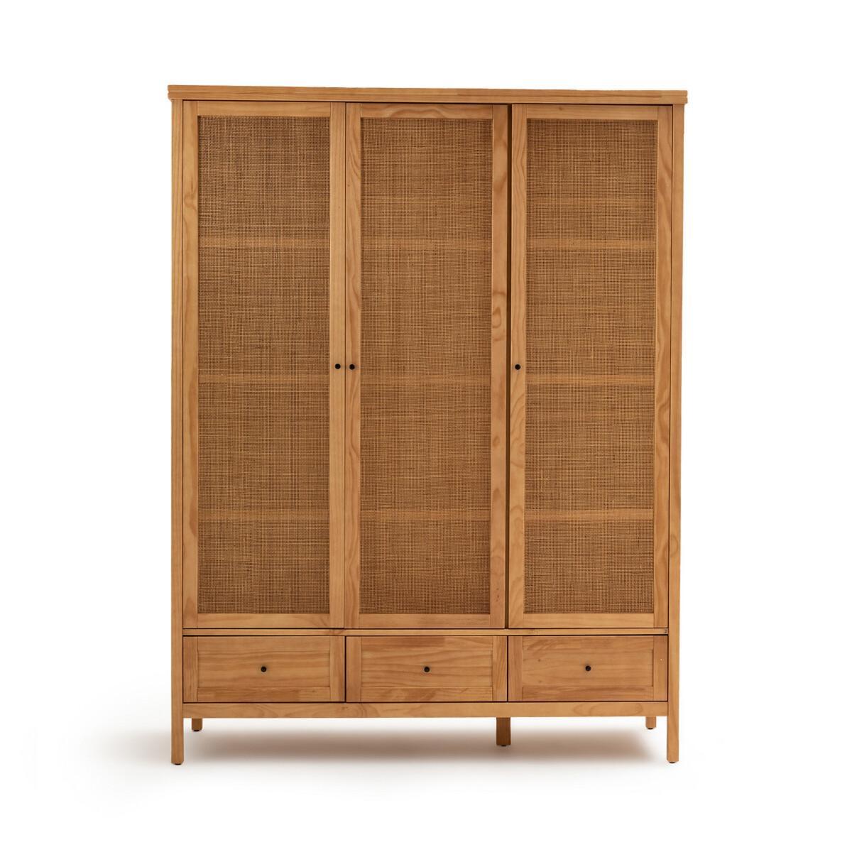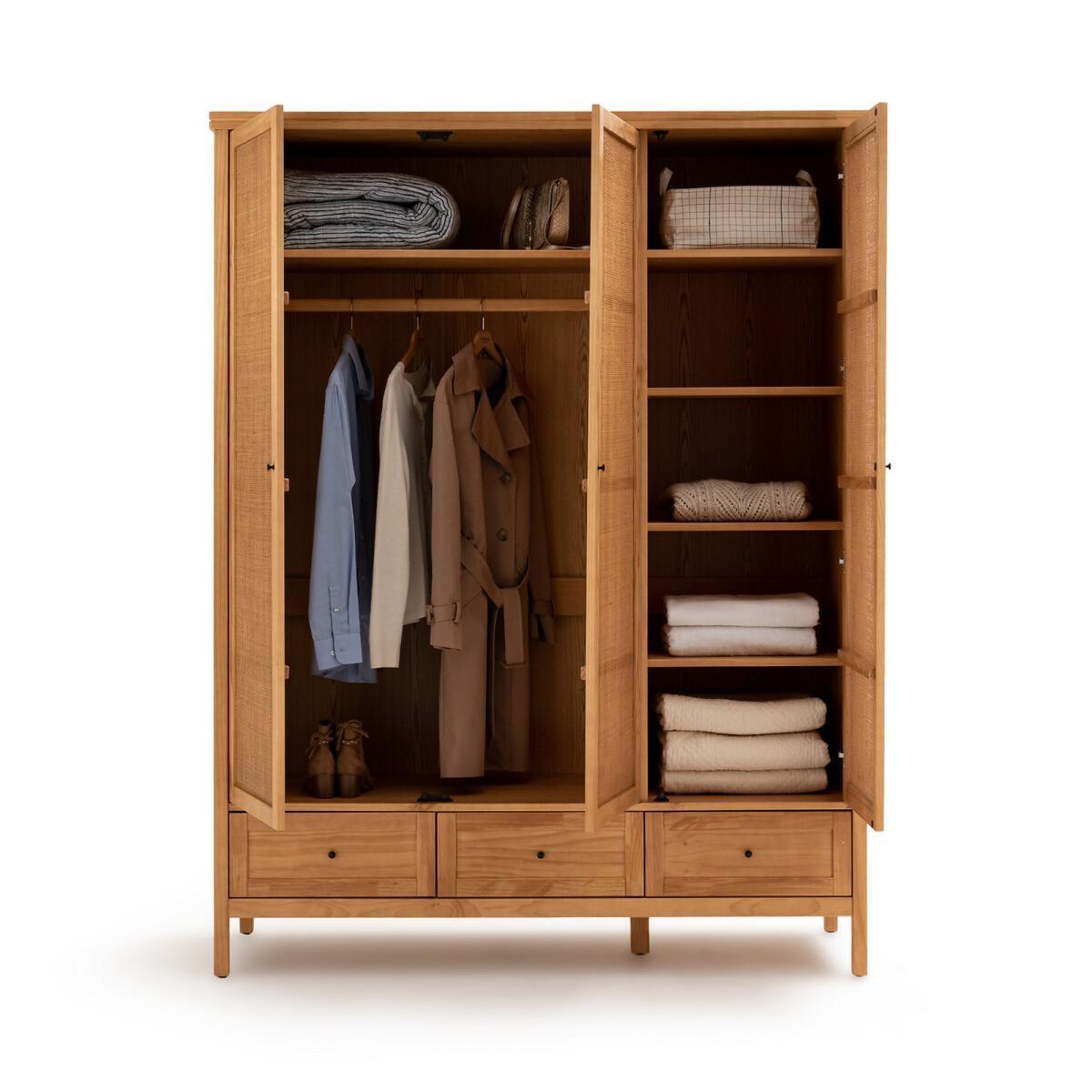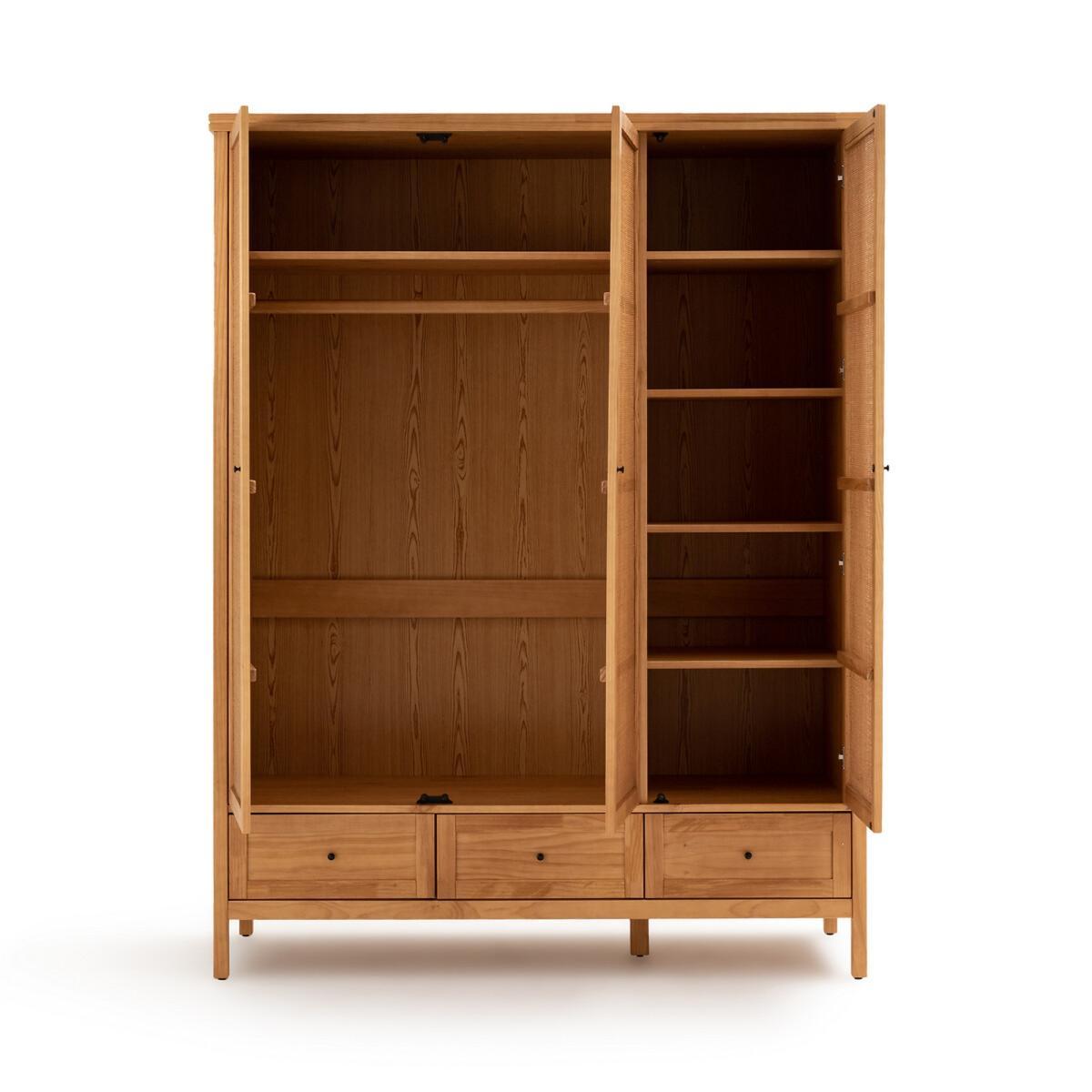 Gabin Solid Pine & Rattan Triple Wardrobe