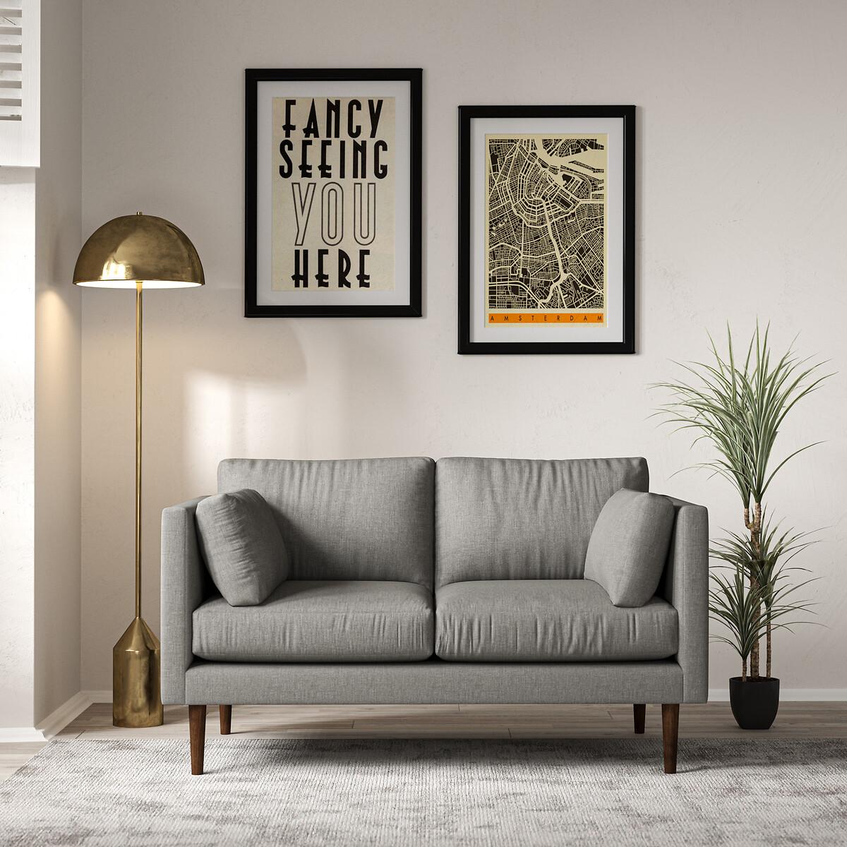 Minimalist design meets maximum comfort in the Gabriela. Beautiful in its simplicity, clean lines create a stylish square silhouette. Super-slim arms maximise seat space, supported by high sleek tapered legs. Relax amongst luxurious feather wrapped cushions knowing you've got Mid-century style sorted. Choose from our soft brushed fabric for ultimate cosiness or velvet for luxe living. Gabriela is also available as a 3 seater sofa, or why not try the matching armchair or snuggle chair? Product details• Soft Brushed - A cosy and practical flat woven fabric featuring a subtle brushed handle for a superbly snuggly seat. Check it's right for you - order a FREE swatch above.• Created with medium density foam fillings for a sofa with a level of comfort suitable for most. • Luxury seating cushions made from a blend of foam, feather and fibres offer the best of both words. A foam core with a feather wrap gives the cushion increased resilience and support without compromising on comfort, whilst fibre fillings add softness and body. Feather fillings allow air to circulate better, whilst being great at retaining heat in colder months. • Fibre backs provide extra softness and give you that "sink in" feeling.• Just flip to freshen up - the back cushions are fully finished both sides and reversible so it's easy to keep your sofa looking its best. Seat cushions are not reversible but are removable. • Both seat and back covers are removable (zip fastening)• FSC® solid beech hardwood frame - made of wood from responsibly managed forests that provide environmental, social and economic benefits.• Tapered feet crafted entirely from solid wood ensure durability and stability.• Removable feet.• Lovingly handmade in the UK.All our made to order sofas are carefully manufactured in the UK.Each hardwood frame is dowelled, glued, and screwed before being paired with the finest fabrics and fillings. And it doesn't stop there - for customer peace of mind and safety, all frames and fabrics are rigorously examined, inspected, and tested to the highest standards. All filling material(s) and covering fabric(s) meet the requirements for resistance to cigarette and match ignition in the 1988 safety regulations. This sofa comes with a 3 year manufacturer warranty from date of delivery (subject to terms and conditions)Product composition• Fabric - Soft Brushed (100% polyester)• Seat fillings - foam/fibre/feather• Back Fillings - Fibre• Frame - Beech Hardwood (FSC), OSB (UK origin, FSC)• Feet - Solid Wood. Product Dimensions Overall width: 133 cm. Overall depth: 93 cm. Overall height: 82 cm. Seat depth: 60 cm. Seat width between the arms: 120 cm. Back height (from base): 62 cm. Back height (from seat): 42 cm Clearance to floor (leg height): 20 cm. Please remember to measure your available space before ordering to be sure your sofa will fit. Don't forget to measure accessways and corners, and consider any obstacles. Package DimensionsL13. 4 cm x W94 cm x H91 cm, Weight 49 kg. This product will be dispatched by one of our trusted suppliers. You’ll be contacted by their selected courier about your delivery. Your product will be delivered to your room of choice. Feet may be assembled on arrival. BELFI01