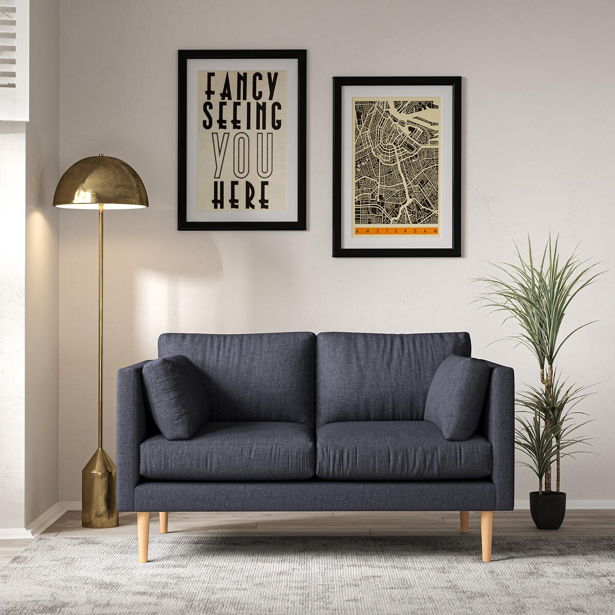 Minimalist design meets maximum comfort in the Gabriela. Beautiful in its simplicity, clean lines create a stylish square silhouette. Super-slim arms maximise seat space, supported by high sleek tapered legs. Relax amongst luxurious feather wrapped cushions knowing you've got Mid-century style sorted. Choose from our soft brushed fabric for ultimate cosiness or velvet for luxe living. Gabriela is also available as a 3 seater sofa, or why not try the matching armchair or snuggle chair? Product details• Soft Brushed - A cosy and practical flat woven fabric featuring a subtle brushed handle for a superbly snuggly seat. Check it's right for you - order a FREE swatch above.• Created with medium density foam fillings for a sofa with a level of comfort suitable for most. • Luxury seating cushions made from a blend of foam, feather and fibres offer the best of both words. A foam core with a feather wrap gives the cushion increased resilience and support without compromising on comfort, whilst fibre fillings add softness and body. Feather fillings allow air to circulate better, whilst being great at retaining heat in colder months. • Fibre backs provide extra softness and give you that "sink in" feeling.• Just flip to freshen up - the back cushions are fully finished both sides and reversible so it's easy to keep your sofa looking its best. Seat cushions are not reversible but are removable. • Both seat and back covers are removable (zip fastening)• FSC® solid beech hardwood frame - made of wood from responsibly managed forests that provide environmental, social and economic benefits.• Tapered feet crafted entirely from solid wood ensure durability and stability.• Removable feet.• Lovingly handmade in the UK.All our made to order sofas are carefully manufactured in the UK.Each hardwood frame is dowelled, glued, and screwed before being paired with the finest fabrics and fillings. And it doesn't stop there - for customer peace of mind and safety, all frames and fabrics are rigorously examined, inspected, and tested to the highest standards. All filling material(s) and covering fabric(s) meet the requirements for resistance to cigarette and match ignition in the 1988 safety regulations. This sofa comes with a 3 year manufacturer warranty from date of delivery (subject to terms and conditions)Product composition• Fabric - Soft Brushed (100% polyester)• Seat fillings - foam/fibre/feather• Back Fillings - Fibre• Frame - Beech Hardwood (FSC), OSB (UK origin, FSC)• Feet - Solid Wood. Product Dimensions Overall width: 146 cm. Overall depth: 93 cm. Overall height: 82 cm. Seat depth: 60 cm. Seat width between the arms: 133 cm. Back height (from base): 62 cm. Back height (from seat): 42 cm Clearance to floor (leg height): 20 cm. Please remember to measure your available space before ordering to be sure your sofa will fit. Don't forget to measure accessways and corners, and consider any obstacles. Package DimensionsL13. 4 cm x W94 cm x H91 cm, Weight 49 kg. This product will be dispatched by one of our trusted suppliers. You’ll be contacted by their selected courier about your delivery. Your product will be delivered to your room of choice. Feet may be assembled on arrival. BELFI01
