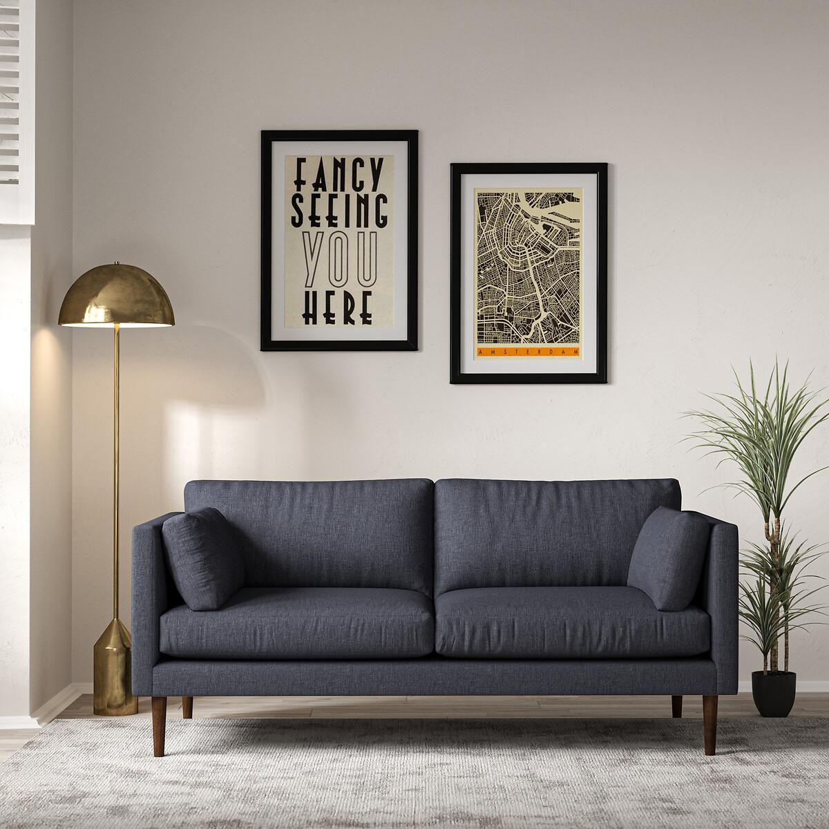 Minimalist design meets maximum comfort in the Gabriela. Beautiful in its simplicity, clean lines create a stylish square silhouette. Super-slim arms maximise seat space, supported by high sleek tapered legs. Relax amongst luxurious feather wrapped cushions knowing you've got Mid-century style sorted. Choose from our soft brushed fabric for ultimate cosiness or velvet for luxe living. Gabriela is also available as a 2 seater sofa, or why not try the matching armchair or snuggle chair? Product details• Soft Brushed - A cosy and practical flat woven fabric featuring a subtle brushed handle for a superbly snuggly seat. Check it's right for you - order a FREE swatch above.• Created with medium density foam fillings for a sofa with a level of comfort suitable for most. • Luxury seating cushions made from a blend of foam, feather and fibres offer the best of both words. A foam core with a feather wrap gives the cushion increased resilience and support without compromising on comfort, whilst fibre fillings add softness and body. Feather fillings allow air to circulate better, whilst being great at retaining heat in colder months. • Fibre backs provide extra softness and give you that "sink in" feeling.• Just flip to freshen up - the back cushions are fully finished both sides and reversible so it's easy to keep your sofa looking its best. Seat cushions are not reversible but are removable. • Both seat and back covers are removable (zip fastening)• FSC® solid beech hardwood frame - made of wood from responsibly managed forests that provide environmental, social and economic benefits.• Tapered feet crafted entirely from solid wood ensure durability and stability.• Removable feet.• Lovingly handmade in the UK.All our made to order sofas are carefully manufactured in the UK.Each hardwood frame is dowelled, glued, and screwed before being paired with the finest fabrics and fillings. And it doesn't stop there - for customer peace of mind and safety, all frames and fabrics are rigorously examined, inspected, and tested to the highest standards. All filling material(s) and covering fabric(s) meet the requirements for resistance to cigarette and match ignition in the 1988 safety regulations. This sofa comes with a 3 year manufacturer warranty from date of delivery (subject to terms and conditions)Product composition• Fabric - Soft Brushed (100% polyester)• Seat fillings - foam/fibre/feather• Back Fillings - Fibre• Frame - Beech Hardwood (FSC), OSB (UK origin, FSC)• Feet - Solid Wood. Product Dimensions Overall width: 146 cm. Overall depth: 93 cm. Overall height: 82 cm. Seat depth: 60 cm. Seat width between the arms: 133 cm. Back height (from base): 62 cm. Back height (from seat): 42 cm Clearance to floor (leg height): 20 cm. Please remember to measure your available space before ordering to be sure your sofa will fit. Don't forget to measure accessways and corners, and consider any obstacles. Package DimensionsL18. 5 cm x W94 cm x H91 cm, Weight 55 kg. This product will be dispatched by one of our trusted suppliers. You’ll be contacted by their selected courier about your delivery. Your product will be delivered to your room of choice. Feet may be assembled on arrival. BELFI01