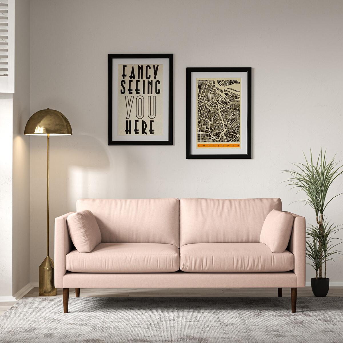 Minimalist design meets maximum comfort in the Gabriela. Beautiful in its simplicity, clean lines create a stylish square silhouette. Super-slim arms maximise seat space, supported by high sleek tapered legs. Relax amongst luxurious feather wrapped cushions knowing you've got Mid-century style sorted. Choose from our soft brushed fabric for ultimate cosiness or velvet for luxe living. Gabriela is also available as a 2 seater sofa, or why not try the matching armchair or snuggle chair? Product details• Soft Brushed - A cosy and practical flat woven fabric featuring a subtle brushed handle for a superbly snuggly seat. Check it's right for you - order a FREE swatch above.• Created with medium density foam fillings for a sofa with a level of comfort suitable for most. • Luxury seating cushions made from a blend of foam, feather and fibres offer the best of both words. A foam core with a feather wrap gives the cushion increased resilience and support without compromising on comfort, whilst fibre fillings add softness and body. Feather fillings allow air to circulate better, whilst being great at retaining heat in colder months. • Fibre backs provide extra softness and give you that "sink in" feeling.• Just flip to freshen up - the back cushions are fully finished both sides and reversible so it's easy to keep your sofa looking its best. Seat cushions are not reversible but are removable. • Both seat and back covers are removable (zip fastening)• FSC® solid beech hardwood frame - made of wood from responsibly managed forests that provide environmental, social and economic benefits.• Tapered feet crafted entirely from solid wood ensure durability and stability.• Removable feet.• Lovingly handmade in the UK.All our made to order sofas are carefully manufactured in the UK.Each hardwood frame is dowelled, glued, and screwed before being paired with the finest fabrics and fillings. And it doesn't stop there - for customer peace of mind and safety, all frames and fabrics are rigorously examined, inspected, and tested to the highest standards. All filling material(s) and covering fabric(s) meet the requirements for resistance to cigarette and match ignition in the 1988 safety regulations. This sofa comes with a 3 year manufacturer warranty from date of delivery (subject to terms and conditions)Product composition• Fabric - Soft Brushed (100% polyester)• Seat fillings - foam/fibre/feather• Back Fillings - Fibre• Frame - Beech Hardwood (FSC), OSB (UK origin, FSC)• Feet - Solid Wood. Product Dimensions Overall width: 146 cm. Overall depth: 93 cm. Overall height: 82 cm. Seat depth: 60 cm. Seat width between the arms: 133 cm. Back height (from base): 62 cm. Back height (from seat): 42 cm Clearance to floor (leg height): 20 cm. Please remember to measure your available space before ordering to be sure your sofa will fit. Don't forget to measure accessways and corners, and consider any obstacles. Package DimensionsL18. 5 cm x W94 cm x H91 cm, Weight 55 kg. This product will be dispatched by one of our trusted suppliers. You’ll be contacted by their selected courier about your delivery. Your product will be delivered to your room of choice. Feet may be assembled on arrival. BELFI01