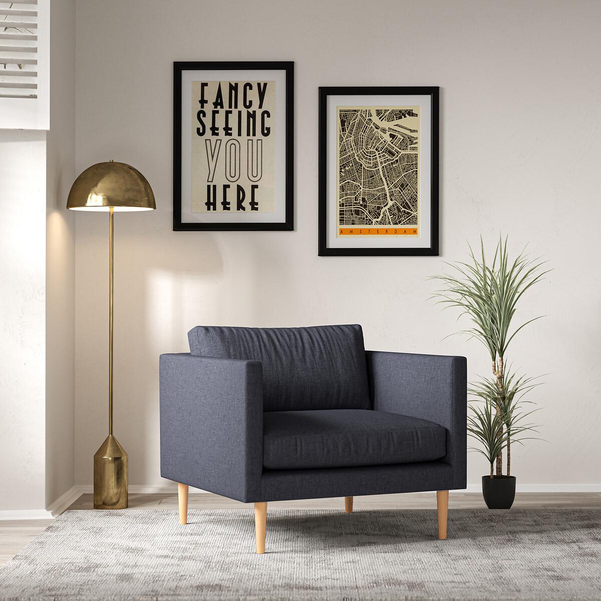 Minimalist design meets maximum comfort in the Gabriela. Beautiful in its simplicity, clean lines create a stylish square silhouette. Super-slim arms maximise seat space, supported by high sleek tapered legs. Relax amongst luxurious feather wrapped cushions knowing you've got Mid-century style sorted. Choose from our soft brushed fabric for ultimate cosiness or velvet for luxe living. Space to spare? Gabriela is also available as a snuggle chair, a 2 seater and a 3 seater sofa. Product details• Soft Brushed - A cosy and practical flat woven fabric featuring a subtle brushed handle for a superbly snuggly seat. Check it's right for you - order a FREE swatch above.• Created with medium density foam fillings for a sofa with a level of comfort suitable for most. • Luxury seating cushions made from a blend of foam, feather and fibres offer the best of both words. A foam core with a feather wrap gives the cushion increased resilience and support without compromising on comfort, whilst fibre fillings add softness and body. Feather fillings allow air to circulate better, whilst being great at retaining heat in colder months. • Fibre backs provide extra softness and give you that "sink in" feeling.• Just flip to freshen up - the back cushions are fully finished both sides and reversible so it's easy to keep your sofa looking its best. Seat cushions are not reversible but are removable. • Both seat and back covers are removable (zip fastening)• FSC® solid beech hardwood frame - made of wood from responsibly managed forests that provide environmental, social and economic benefits.• Tapered feet crafted entirely from solid wood ensure durability and stability.• Removable feet.• Lovingly handmade in the UK.All our made to order sofas are carefully manufactured in the UK.Each hardwood frame is dowelled, glued, and screwed before being paired with the finest fabrics and fillings. And it doesn't stop there - for customer peace of mind and safety, all frames and fabrics are rigorously examined, inspected, and tested to the highest standards. All filling material(s) and covering fabric(s) meet the requirements for resistance to cigarette and match ignition in the 1988 safety regulations. This sofa comes with a 3 year manufacturer warranty from date of delivery (subject to terms and conditions)Product composition• Fabric - Soft Brushed (100% polyester)• Seat fillings - foam/fibre/feather• Back Fillings - Fibre• Frame - Beech Hardwood (FSC), OSB (UK origin, FSC)• Feet - Solid Wood. Product Dimensions Overall width: 98 cm. Overall depth: 93 cm. Overall height: 82 cm. Seat depth: 60 cm. Seat width between the arms: 85 cm. Back height (from base): 62 cm. Back height (from seat): 42 cm Clearance to floor (leg height): 20 cm. Please remember to measure your available space before ordering to be sure your sofa will fit. Don't forget to measure accessways and corners, and consider any obstacles. Package DimensionsL9. 4 cm x W67 cm x H91 cm, Weight 37.5 kg. This product will be dispatched by one of our trusted suppliers. You’ll be contacted by their selected courier about your delivery. Your product will be delivered to your room of choice. Feet may be assembled on arrival. BELFI01