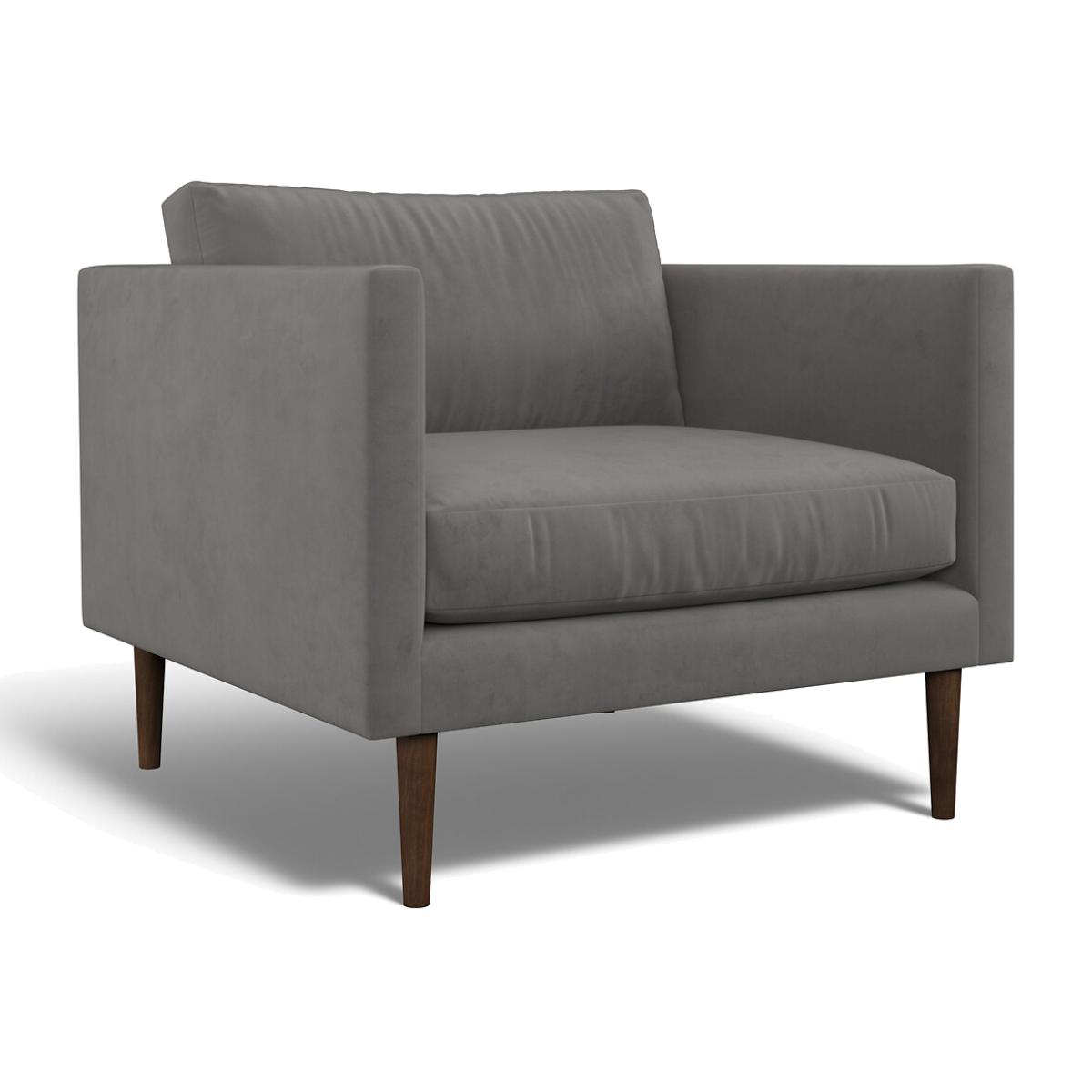 Minimalist design meets maximum comfort in the Gabriela. Beautiful in its simplicity, clean lines create a stylish square silhouette. Super-slim arms maximise seat space, supported by high sleek tapered legs. Relax amongst luxurious feather wrapped cushions knowing you've got Mid-century style sorted. Choose from our soft brushed fabric for ultimate cosiness or velvet for luxe living. Space to spare? Gabriela is also available as a snuggle chair, a 2 seater and a 3 seater sofa. Product details• Velvet - An elegant velvet with a dense and matte finish, perfect for those wanting a rich and luxurious look. A flat finish pile makes it difficult for the material to snag – ideal if you live with pets and sure to prove durable for years to come. Check it's right for you - order a FREE swatch above.• Created with medium density foam fillings for a sofa with a level of comfort suitable for most. • Luxury seating cushions made from a blend of foam, feather and fibres offer the best of both words. A foam core with a feather wrap gives the cushion increased resilience and support without compromising on comfort, whilst fibre fillings add softness and body. Feather fillings allow air to circulate better, whilst being great at retaining heat in colder months. • Fibre backs provide extra softness and give you that "sink in" feeling.• Just flip to freshen up - the back cushions are fully finished both sides and reversible so it's easy to keep your sofa looking its best. Seat cushions are not reversible but are removable. • Both seat and back covers are removable (zip fastening)• FSC® solid beech hardwood frame - made of wood from responsibly managed forests that provide environmental, social and economic benefits.• Tapered feet crafted entirely from solid wood ensure durability and stability.• Removable feet.• Lovingly handmade in the UK.All our made to order sofas are carefully manufactured in the UK.Each hardwood frame is dowelled, glued, and screwed before being paired with the finest fabrics and fillings. And it doesn't stop there - for customer peace of mind and safety, all frames and fabrics are rigorously examined, inspected, and tested to the highest standards. All filling material(s) and covering fabric(s) meet the requirements for resistance to cigarette and match ignition in the 1988 safety regulations. This sofa comes with a 3 year manufacturer warranty from date of delivery (subject to terms and conditions)Product composition• Fabric - Velvet (100% polyester)• Seat fillings - foam/fibre/feather• Back Fillings - Fibre• Frame - Beech Hardwood (FSC), OSB (UK origin, FSC)• Feet - Solid Wood. Product Dimensions Overall width: 98 cm. Overall depth: 93 cm. Overall height: 82 cm. Seat depth: 60 cm. Seat width between the arms: 85 cm. Back height (from base): 62 cm. Back height (from seat): 42 cm Clearance to floor (leg height): 20 cm. Please remember to measure your available space before ordering to be sure your sofa will fit. Don't forget to measure accessways and corners, and consider any obstacles. Package DimensionsL9. 4 cm x W67 cm x H91 cm, Weight 37.5 kg. This product will be dispatched by one of our trusted suppliers. You’ll be contacted by their selected courier about your delivery. Your product will be delivered to your room of choice. Feet may be assembled on arrival. BELFI01