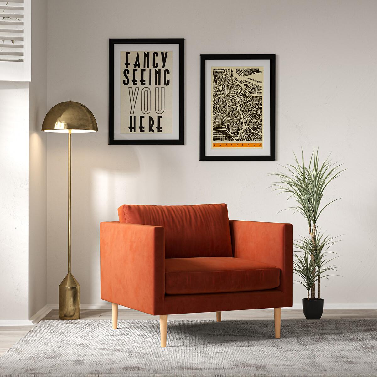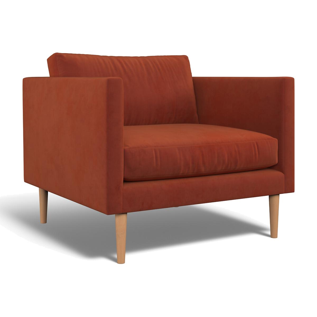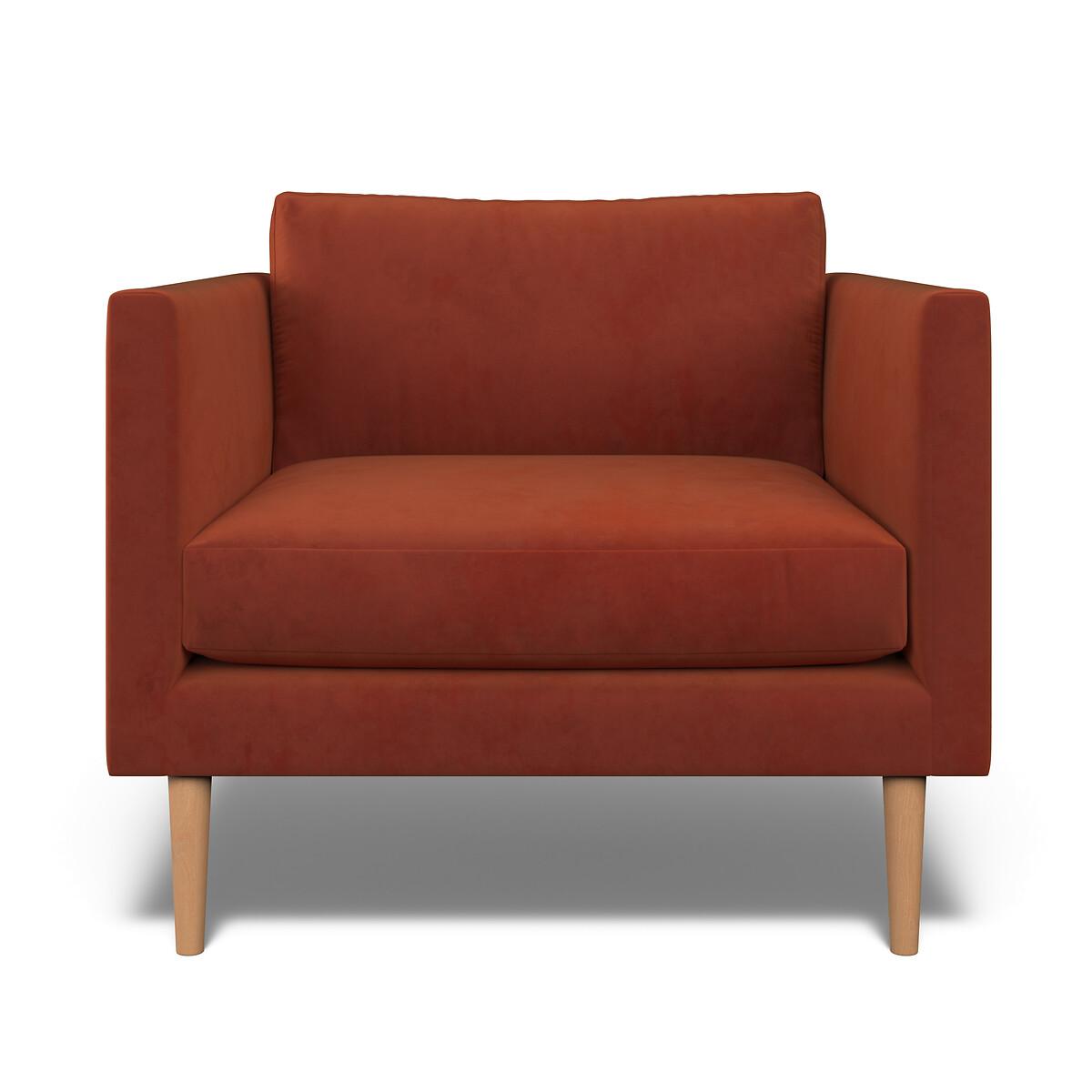 Minimalist design meets maximum comfort in the Gabriela. Beautiful in its simplicity, clean lines create a stylish square silhouette. Super-slim arms maximise seat space, supported by high sleek tapered legs. Relax amongst luxurious feather wrapped cushions knowing you've got Mid-century style sorted. Choose from our soft brushed fabric for ultimate cosiness or velvet for luxe living. Space to spare? Gabriela is also available as a snuggle chair, a 2 seater and a 3 seater sofa. Product details• Velvet - An elegant velvet with a dense and matte finish, perfect for those wanting a rich and luxurious look. A flat finish pile makes it difficult for the material to snag – ideal if you live with pets and sure to prove durable for years to come. Check it's right for you - order a FREE swatch above.• Created with medium density foam fillings for a sofa with a level of comfort suitable for most. • Luxury seating cushions made from a blend of foam, feather and fibres offer the best of both words. A foam core with a feather wrap gives the cushion increased resilience and support without compromising on comfort, whilst fibre fillings add softness and body. Feather fillings allow air to circulate better, whilst being great at retaining heat in colder months. • Fibre backs provide extra softness and give you that "sink in" feeling.• Just flip to freshen up - the back cushions are fully finished both sides and reversible so it's easy to keep your sofa looking its best. Seat cushions are not reversible but are removable. • Both seat and back covers are removable (zip fastening)• FSC® solid beech hardwood frame - made of wood from responsibly managed forests that provide environmental, social and economic benefits.• Tapered feet crafted entirely from solid wood ensure durability and stability.• Removable feet.• Lovingly handmade in the UK.All our made to order sofas are carefully manufactured in the UK.Each hardwood frame is dowelled, glued, and screwed before being paired with the finest fabrics and fillings. And it doesn't stop there - for customer peace of mind and safety, all frames and fabrics are rigorously examined, inspected, and tested to the highest standards. All filling material(s) and covering fabric(s) meet the requirements for resistance to cigarette and match ignition in the 1988 safety regulations. This sofa comes with a 3 year manufacturer warranty from date of delivery (subject to terms and conditions)Product composition• Fabric - Velvet (100% polyester)• Seat fillings - foam/fibre/feather• Back Fillings - Fibre• Frame - Beech Hardwood (FSC), OSB (UK origin, FSC)• Feet - Solid Wood. Product Dimensions Overall width: 98 cm. Overall depth: 93 cm. Overall height: 82 cm. Seat depth: 60 cm. Seat width between the arms: 85 cm. Back height (from base): 62 cm. Back height (from seat): 42 cm Clearance to floor (leg height): 20 cm. Please remember to measure your available space before ordering to be sure your sofa will fit. Don't forget to measure accessways and corners, and consider any obstacles. Package DimensionsL9. 4 cm x W67 cm x H91 cm, Weight 37.5 kg. This product will be dispatched by one of our trusted suppliers. You’ll be contacted by their selected courier about your delivery. Your product will be delivered to your room of choice. Feet may be assembled on arrival. BELFI01