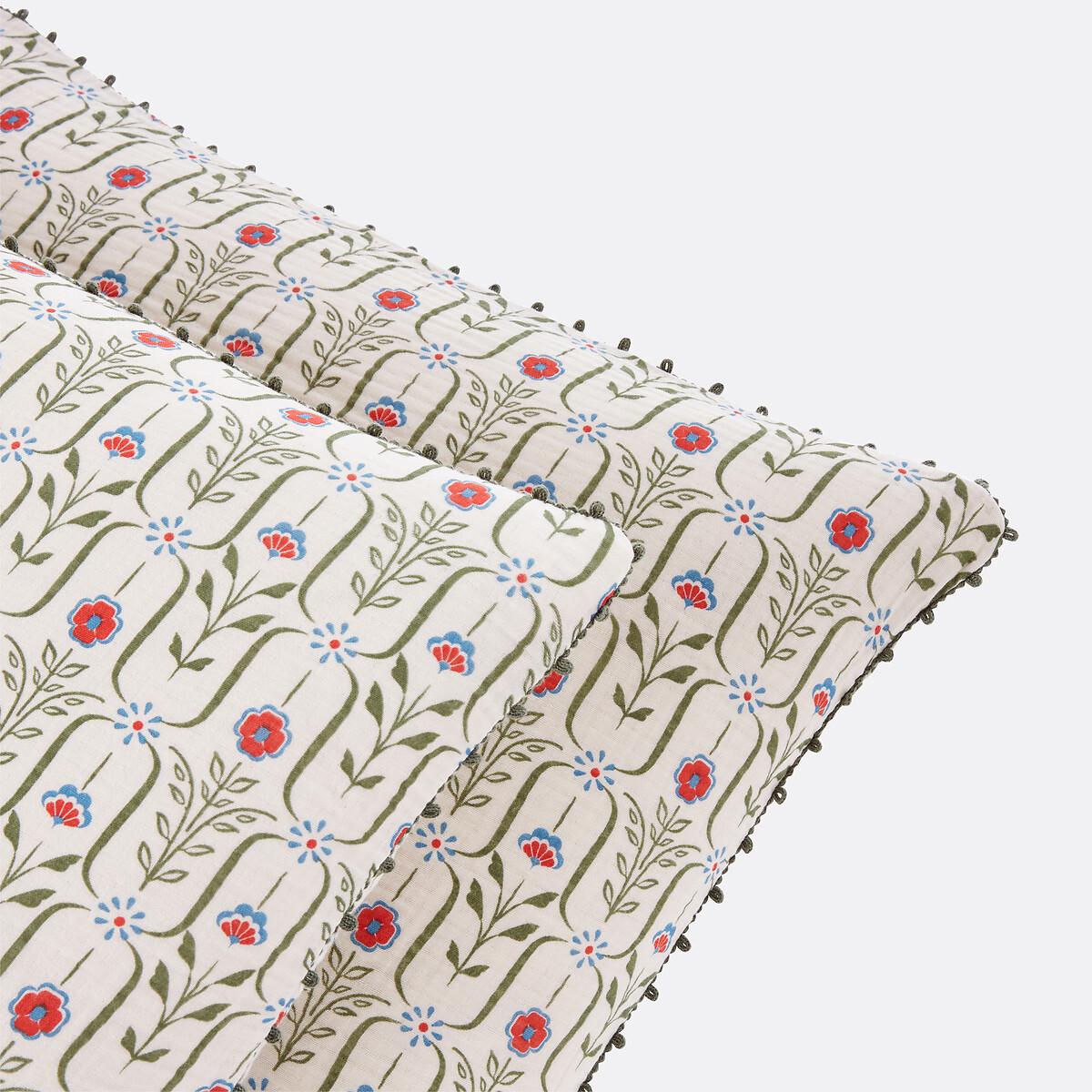 The Gabriella bed linen is one of the Signatures of La Redoute Intérieurs. A selection of exclusive creations, designed by our in-house design studio. Inspiring, easy to live with, trendy... these products have become our customers' favourites. and no doubt yours!. An internal design by Juliette Pagnoux :"The coming together of varied influences, the Gabriella print combines bouquets inspired by Indian block prints, a structure reminiscent of the work of decorated paper makers and folk-inspired details. This blend creates a design that is both structured and ornamental, with bold, assertive colours that give it just the right amount of modernity. Printed on cotton muslin, the material gives it an even more cheerful and lively dimension. "Cotton muslin is light, supple and super soft. Naturally textured, they do not require ironing and become more beautiful over time. Product Details • 100% cotton • Cotton muslin • Floral print on both sides • Crochet bias finishes on the edge. Match this item with the rest of the bedding in the range for a stylish bedroom. And you can mix and match it with different colours and styles from our other bedding ranges when you want to change things up and create your own unique look. Care Advice • Machine washable at 60°C • By washing your laundry at 40°C instead of 60°C, you limit energy consumption • Product will regain its texture after tumble drying • The cotton muslin may show slight marks due to packaging creases. We recommend that you wash the product as soon as you receive it, and then tumble dry it to restore its look and the beautiful waffle effect. Dimensions • 50 x 70cm: Rectangular pillowcase • 63 x 63cm: Square pillowcase • 65 x 100cm: Rectangular pillowcase • OEKO-TEX® Standard 100. Standard 100 certification by OEKO-TEX® tests textile products for harmful substances via an independent, international label.