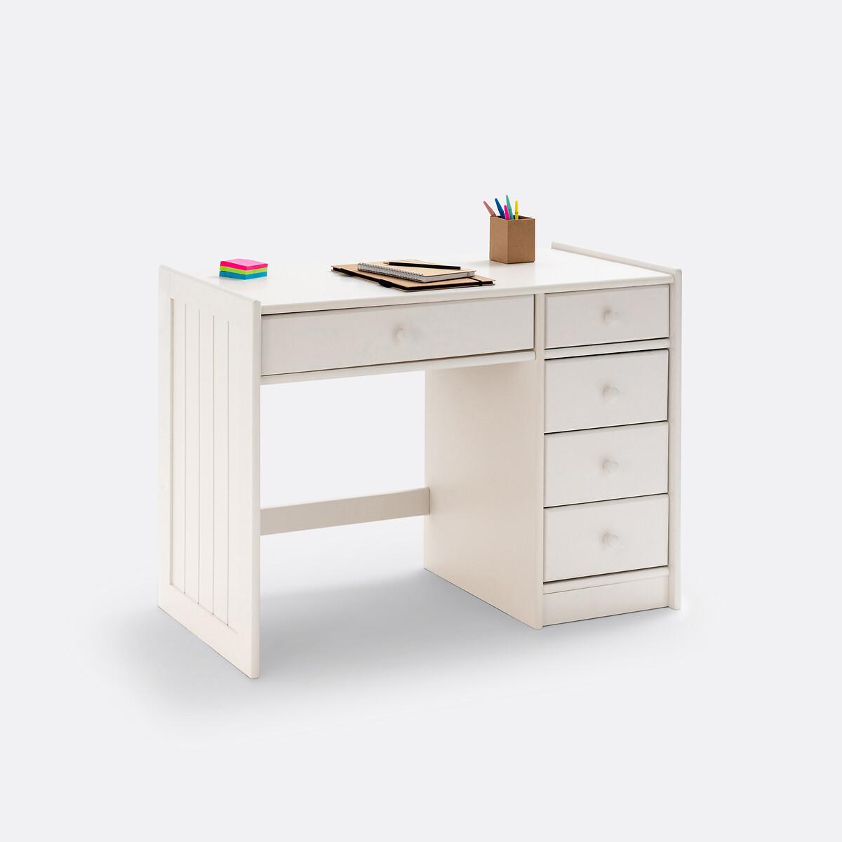 The Gaby solid pine desk is contemporary and functional, working well in any interior. Product Details • In raw solid pine to paint • Water-based varnish (or paint) finish • MDF drawer base • Solid pine handles • FSC® Mixed certified wood • 1 large drawer under the desk top • 4 drawers. Dimensions • Width: 106cm • Height: 76cm • Depth: 48.5cm • Internal dimensions of large drawer :L60.5 x H8 x D35cm • Internal dimensions of small drawer : L27.5 x H8 x D35cmDelivery:. Assembly required. Available for home delivery. Note! Please check that all access points are large enough to accommodate your delivery (doors, stairs, lifts). • WOOD FROM SUSTAINABLY MANAGED FORESTS. FSC® certified wood comes from forests that are environmentally, socially and economically well managed. • WOOD FROM MORE SUSTAINABLY MANAGED FORESTS AND CONTROLLED SOURCES. FSC® Mix wood contains at least 70% FSC® certified and/or recycled wood, the remainder being FSC® controlled wood. Parcel Dimensions1 parcel • L113.4 x H16.2 x D55.3cm • 30kg