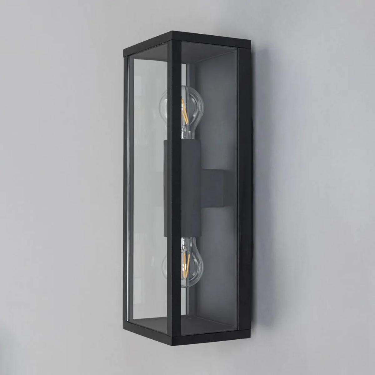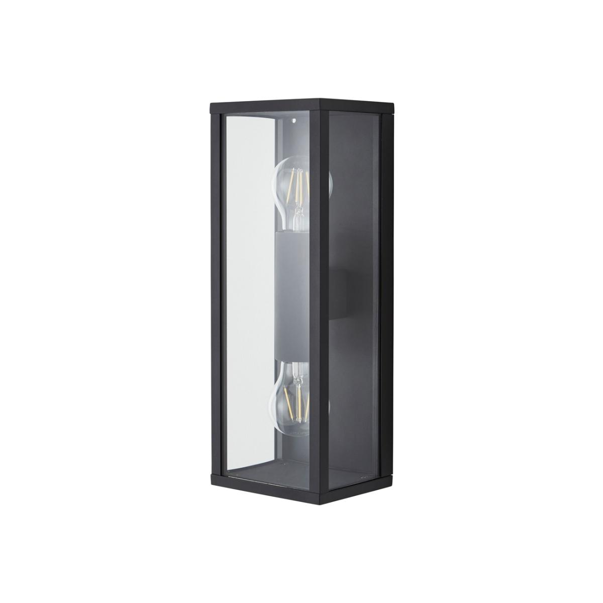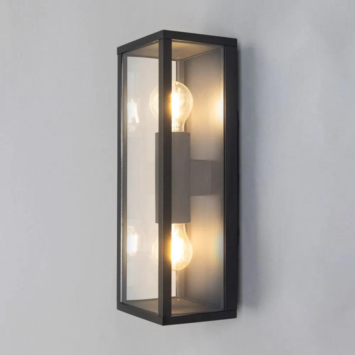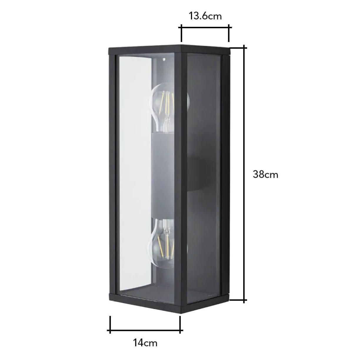 Sophisticated lighting styles for the exterior of your house with the Gael Glass Panel Outdoor Wall Light. This wall light features a glass panel box lantern design, looking ideal when paired with separately sold vintage filament lightbulbs, and is IP44 rated to ensure water resistance against outdoor weather conditions. It also comes in a sleek black finish, providing a modern minimalist aesthetic to your entryway.