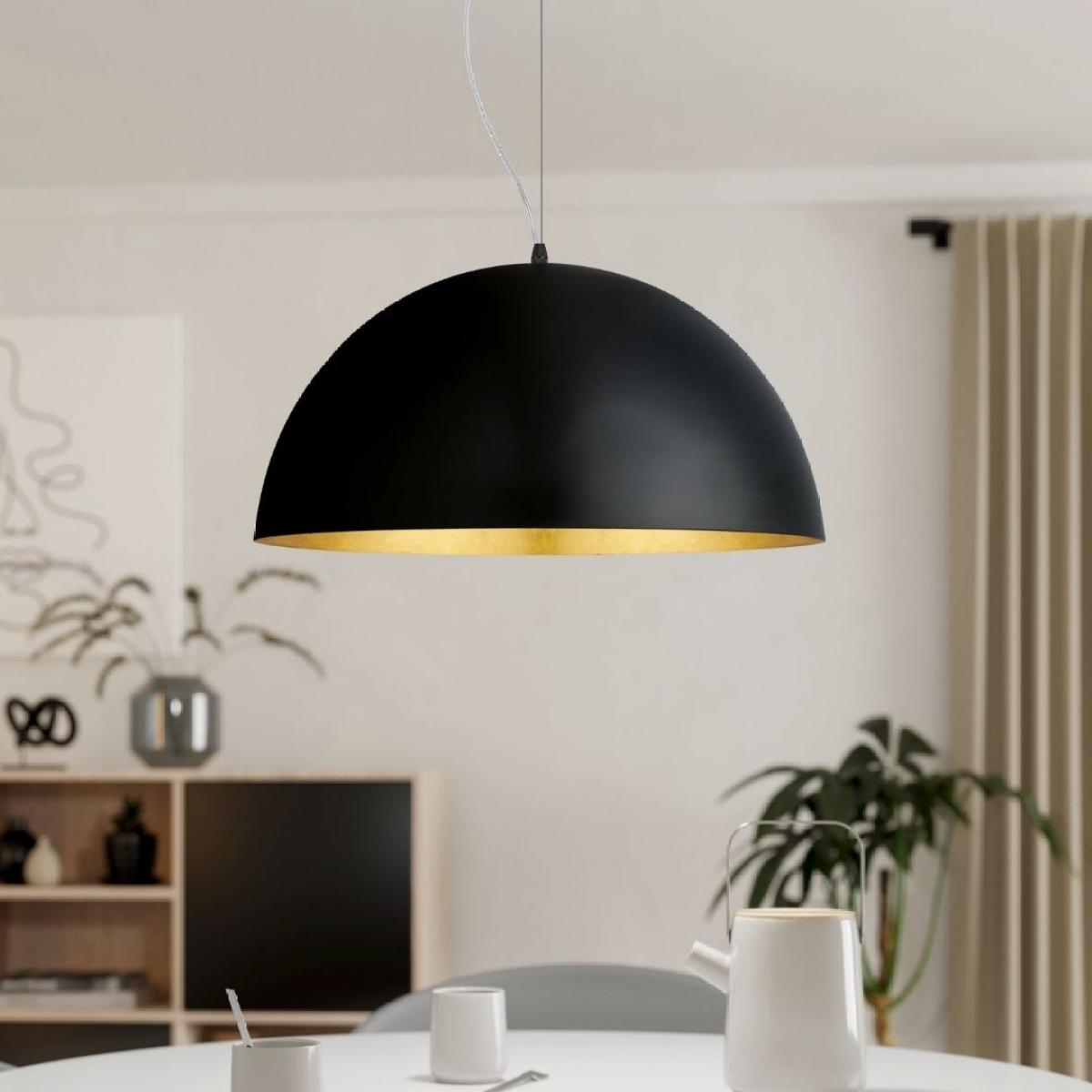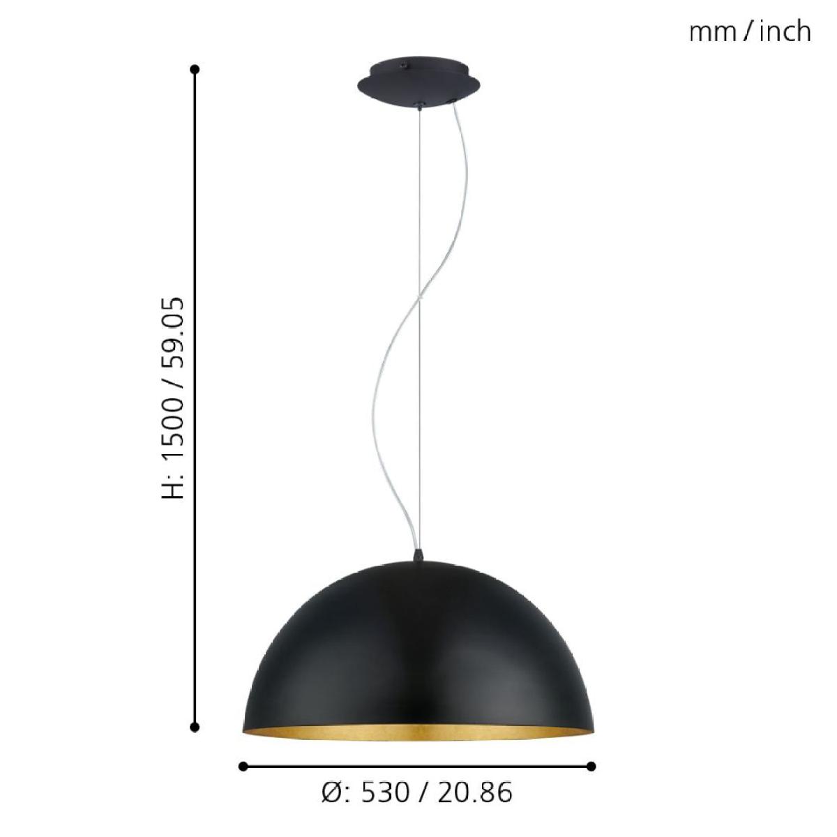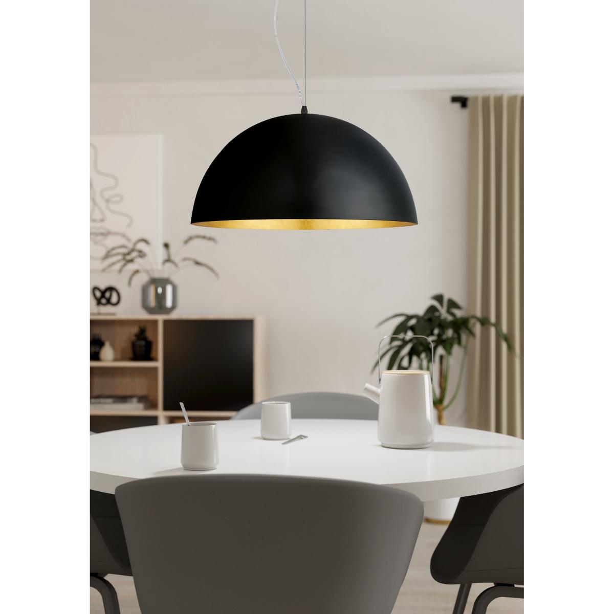 The Gaetano 1 pendant light has a round lampshade made from black steel with a gold leaf-style finish. This pendant light complements a range of interiors and will provide stylish lighting in any home, perfect for the living room or above the dining room table. The lightbulb is not included. The product has an E27 lamp holder and requires 1x E27 lightbulb. The Gaetano 1 pendant light has a round lampshade made from black steel with a gold leaf-style finish. This pendant light complements a range of interiors and will provide stylish lighting in any home, perfect for the living room or above the dining room table. The lightbulb is not included. The product has an E27 lamp holder and requires 1x E27 lightbulb.