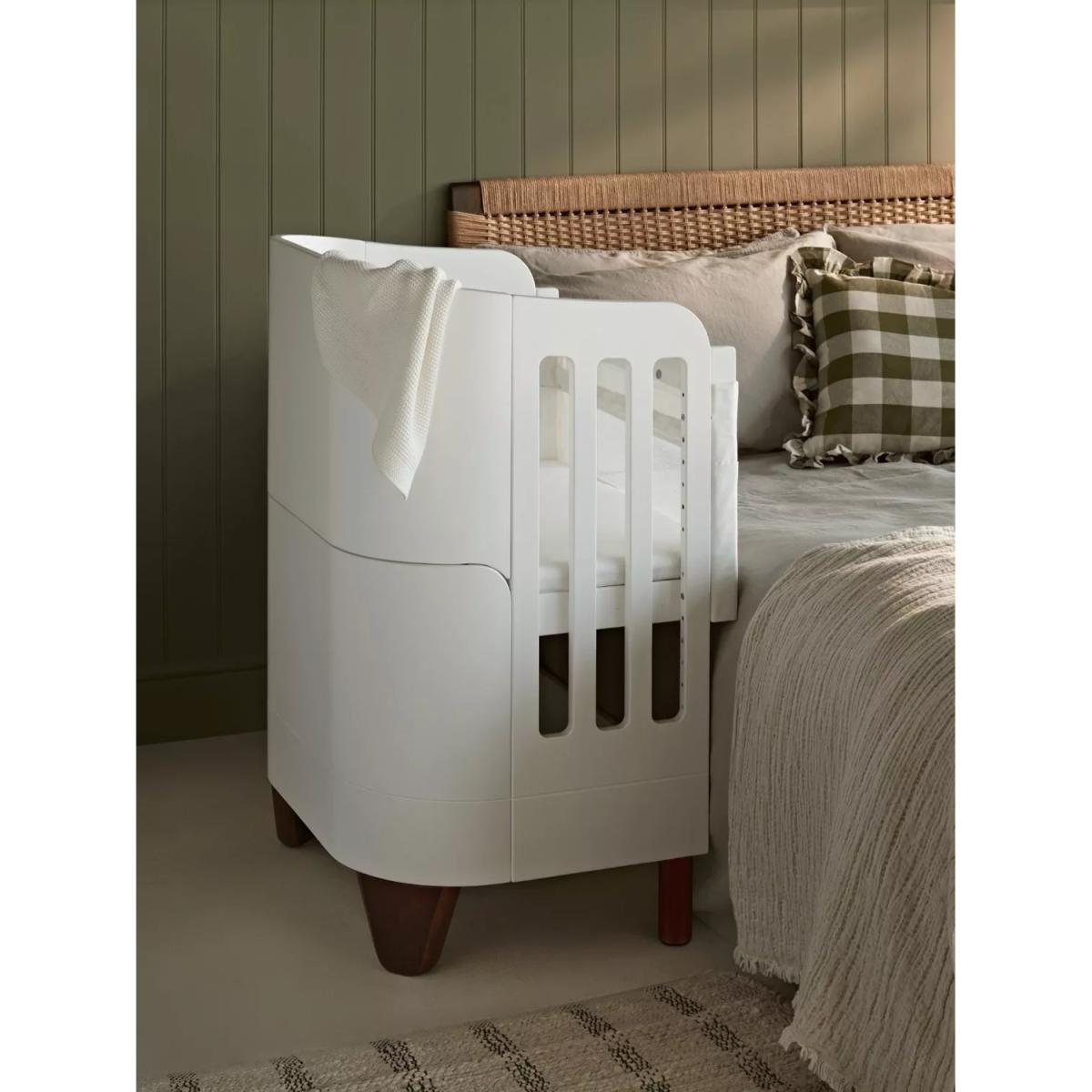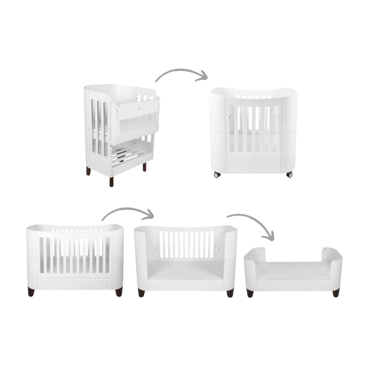 The all-in-one sleep solution from newborn to 5 years. Begin with the safety-certified Serena Bedside Crib, keeping your baby close for night-time feeds and cuddles. As they grow, convert it into a mobile Mini Cot for extended in-room sleeping. When it's time for the nursery, expand it into a full-size Cotbed, then transition smoothly to a Toddler Bed and, finally, a cosy First Bed. A true 0-5 years solution containing all parts and components required for each stage. The Serena Collection is handcrafted from birch wood is 100% composite-free and comes in 100% plastic-free packaging. Bedside Crib Suitable from birth up to 6 months, the Serena Bedside Crib offers a safe and secure sleep space for your newborn. With 6 different height adjustments, you can ensure your baby is fully visible 'next-to-me' as you sleep. Fully breathable and ventilated with slatted sides and base, your baby will be safe and secure in their own sleep space. The textile parts are made from 100% organic cotton. Mini Cot Handcrafted from 100% birch wood and composite-free, the uniquely designed contoured and compact mini cot is suitable from birth up to 2 years. It has lockable swivel wheels to move it from room to room. There are two possible mattress positions to adjust it for older/younger babies. Cotbed With a unique contoured design with soft flowing lines, this cotbed create a serene and cosy sleep space. It easily converts through 4 stages: newborn cot (0-6 months), cotbed (6 months to 3 years), toddler bed (3-4 years) and first bed (4-5 years). The mattress can be adjusted between two heights for younger/older babies. The Serena All in One Bundle is tested and fully certified to EN716 (Cot), EN1130 (Crib) & BS8509 (First bed), ASTM F406/ASTM F1821& AS/NZS2172. AS/NZS ISO 8124 part 3: 2021 & Amd.1:2023 (Toxicity) AS/NZS 4266.1: 2017 (Formaldehyde free) AS/NZS 2172:2013 Children’s household cots ASTM F1821-19e2 (toddler & first bed)