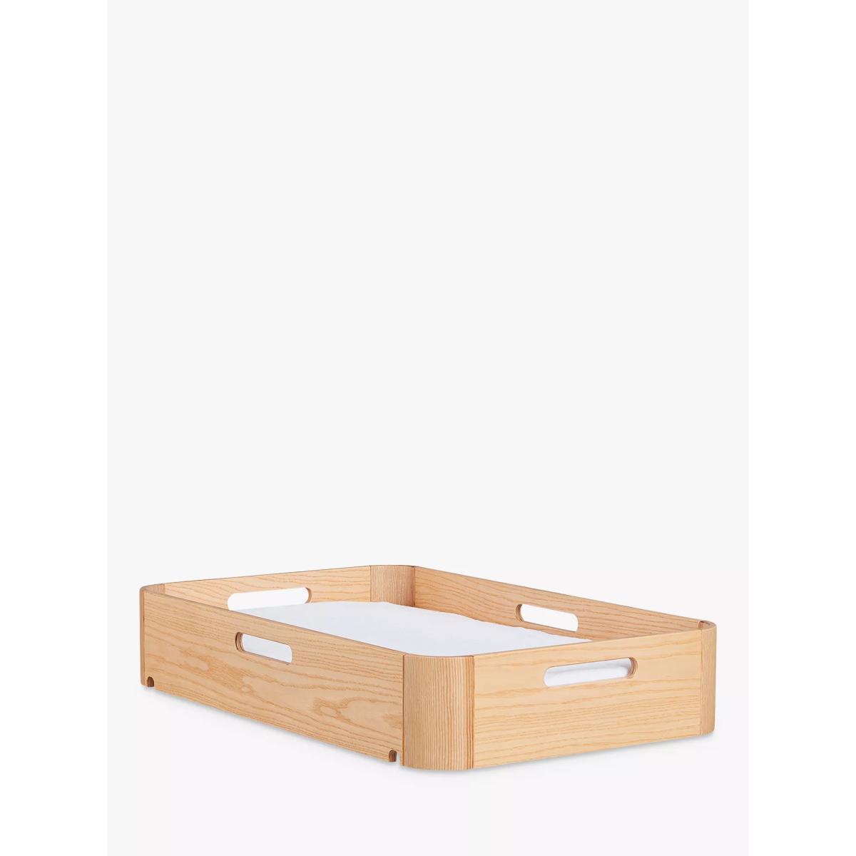 With a deep 8cm rim, your baby will be safe and secure when using this Hera Cot Top Changer. It is designed to sit on top of your Gaia Baby dresser (sold separately)but alternatively, it also fits snugly across your Hera cot (sold separately). It can be also be stowed away on its' Shaker style Hanging Rail (sold separately). Key Features: Made from sustainably sourced natural ash wood Generous 75cm (length) x 46cm (width) changing area provides comfort for longer babies Designed with grooves to fit snugly on the Hera Cot or Dresser Deep rim for extra security 100% recyclable and biodegradable