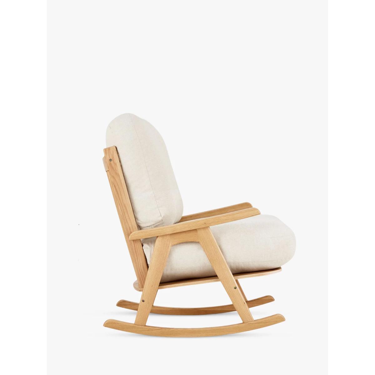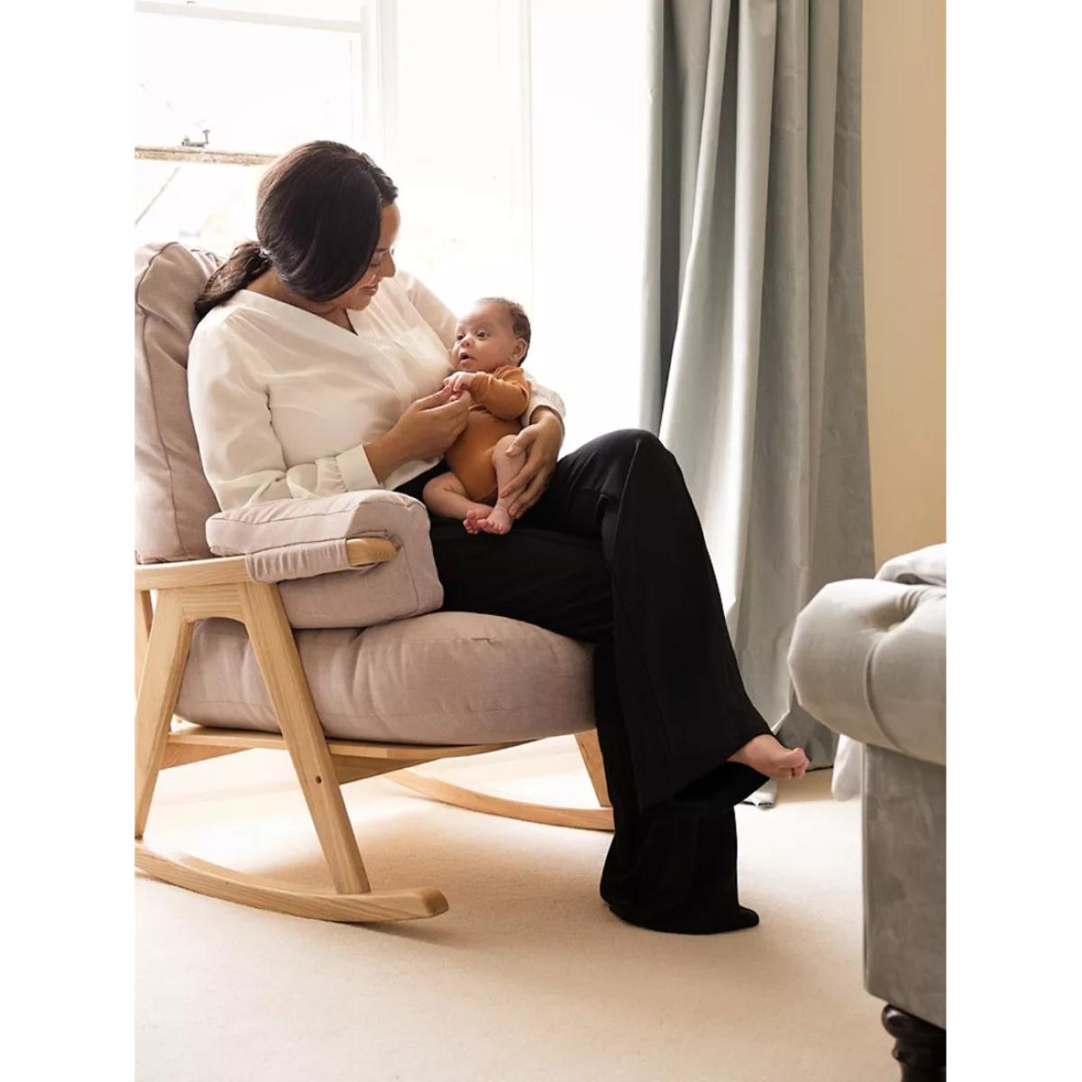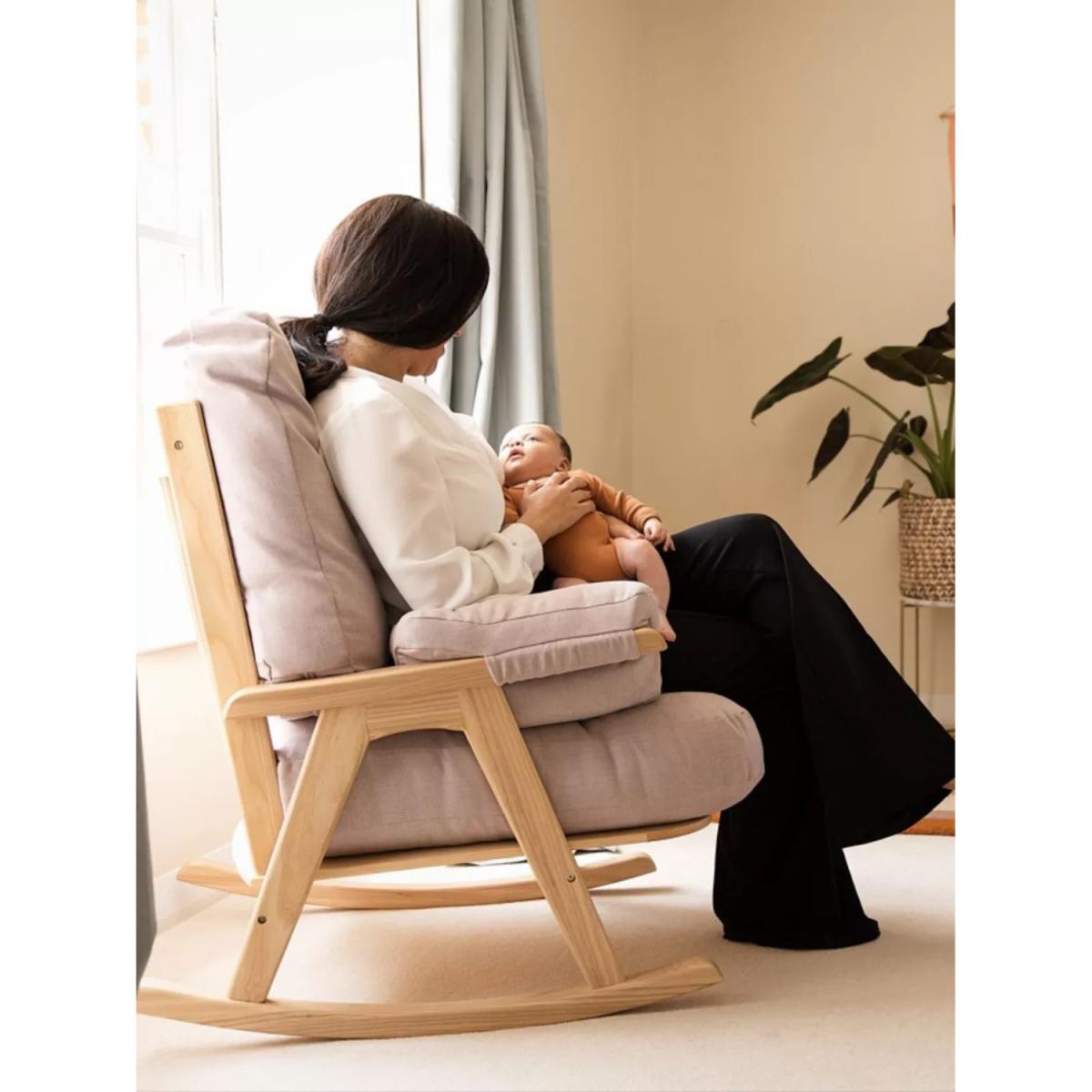 Iconic mid-century styling with laid-back, contemporary comfort:Meet the Hera Rocking & Nursing Chair. Echoing the A-frame accents of the Hera collection, this 100% real wood rocking chair will perfectly complement your Nursery or Living space. It is ergonomically designed to give you and your baby a fully supported and cosy spot for feeding, soothing and bedtime stories. Keep your head and neck relaxed and feel fully supported whilst feeding your baby in the deep-down, sink-into, handmade cushions. Solid wood legs offer a gentle rocking motion whilst the plush armrests are thoughtfully positioned at an ergonomic height, offering you added comfort.