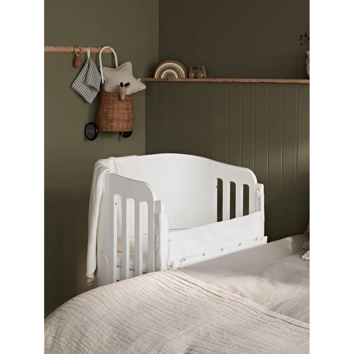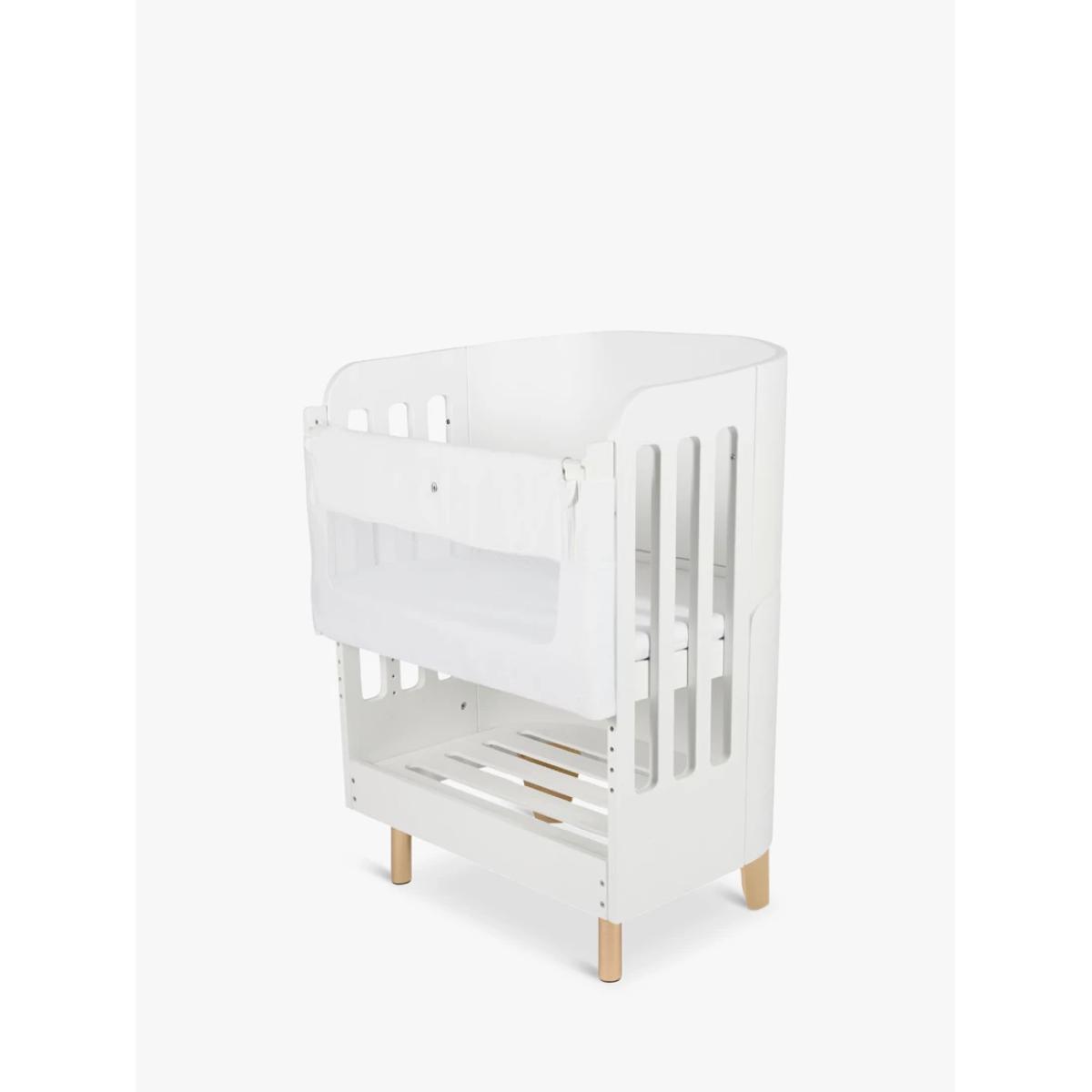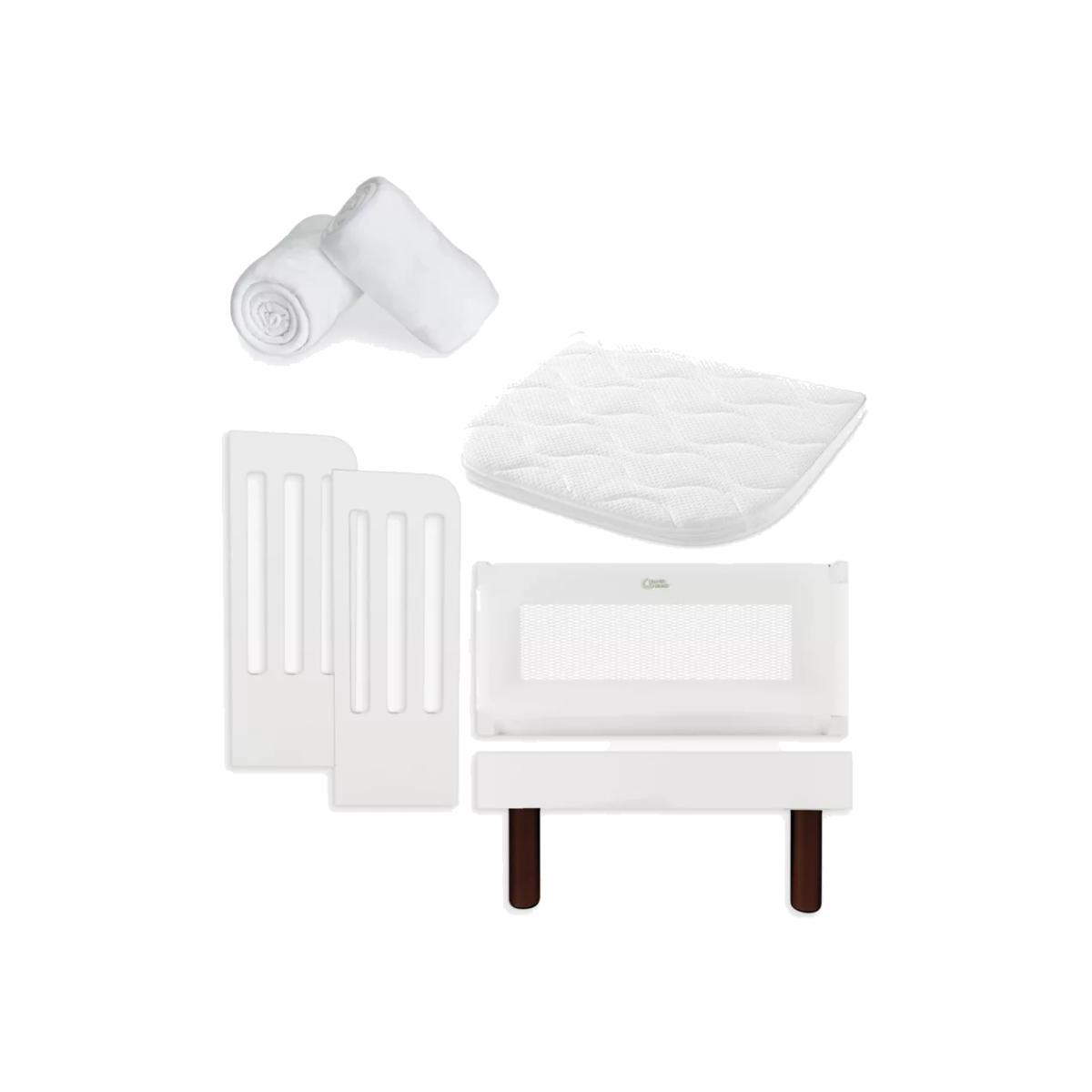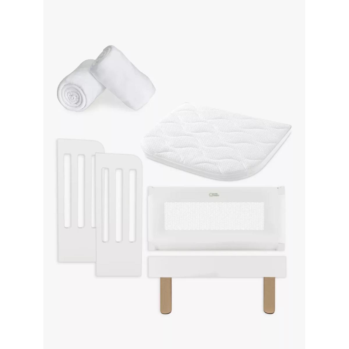 The Gaia Baby Bedside Crib "add-on" Bundle includes all parts required to set up your Serena Cot Bed or Mini-Cot as a fully safety certified next-to-me crib for your newborn baby. It comes with a bedside crib extension, a pack of 2 fitted sheets and the Serena Bedside Crib Mattress. Bedside Crib: Tested to the latest global standards, the Serena Bedside Crib offers a safe and secure sleep space for your newborn. With 6 different height adjustments, you can ensure your baby is fully visible 'next-to-me' as you sleep. Fully breathable and ventilated, your baby will be safe and secure in its own sleep space. Supplied with premium quality newborn-friendly mattress. Fully certified Bedside Crib suitable from birth up to 6 months. Fitted sheets: The bundle includes a pack of two fitted Sheets. Made from the softest, natural fabric, these GOTS-certified organic cotton sheets are fully breathable and will keep their original texture and weight even when washed at 60°. Suitable for babies with sensitive skin and allergies. Made in the UK to the highest standards from fully certified organic cotton sources. Made in the UK. Serena Bedside Crib Mattress: Includes Serena Bedside Crib mattress with 'Cool-Plus' technology. The Serena Bedside crib mattress has a fully breathable soft core encased in a luxurious ventilated polyester cover. The zippable cover can be removed and washed at 40 degrees for optimum hygiene. Features Adaptive technology - Treats the textile with a temperature-sensitive polymer and provides a dynamic response: the warmer it gets, the more Adaptive will evaporate moisture. More evaporation means a dryer and cooler sleeping environment. Made in the UK 6 possible mattress height adjustments from 66cm (max) to 48cm. Slatted sides & base ensure maximum ventilation. Surface sleeping area 66 x 53 cm. Made from 100% real wood. Composite-free and guaranteed low emissions. Textile parts made from 100% organic cotton. Ethically manufactured in CSO-certified family-run factories Meets safety regulation EN1130:2019. Note: Serena Cot Bed and Mini-Cot are sold separately.