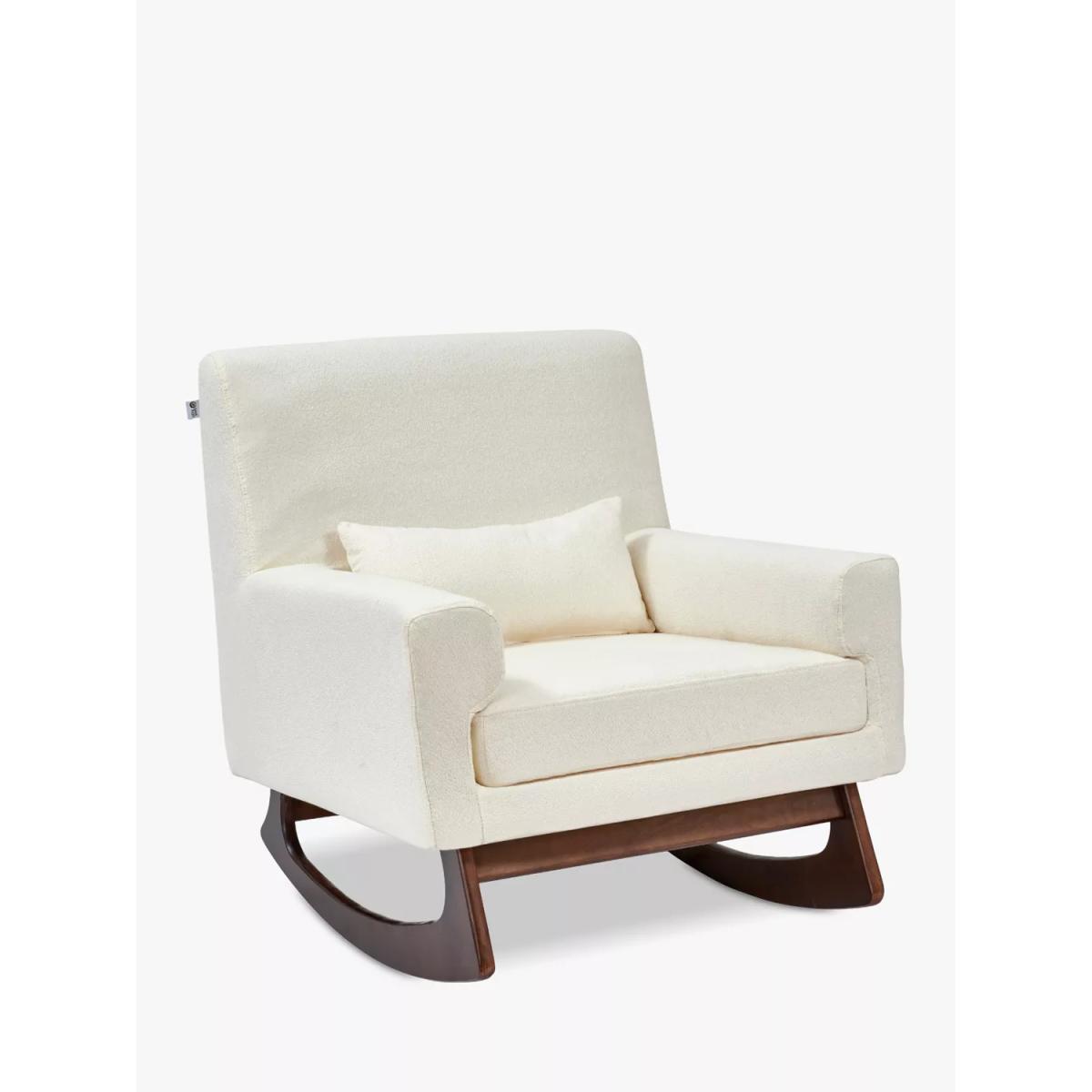 The Serena Bouclé collection features a soft, durable, textured fabric made with loops or curls of yarn. Visually interesting, this tactile textured fabric offers greater warmth and durability to withstand regular wear and tear. Added to the classic styling of the Serena Rocking chair, the Boucle fabric lends depth and interest and an ultra-fashionable decor statement in your nursery or living space. The collection features a range of colours and for the first time, it also allows you to customise the look with your choice of Oak or Walnut finish legs.